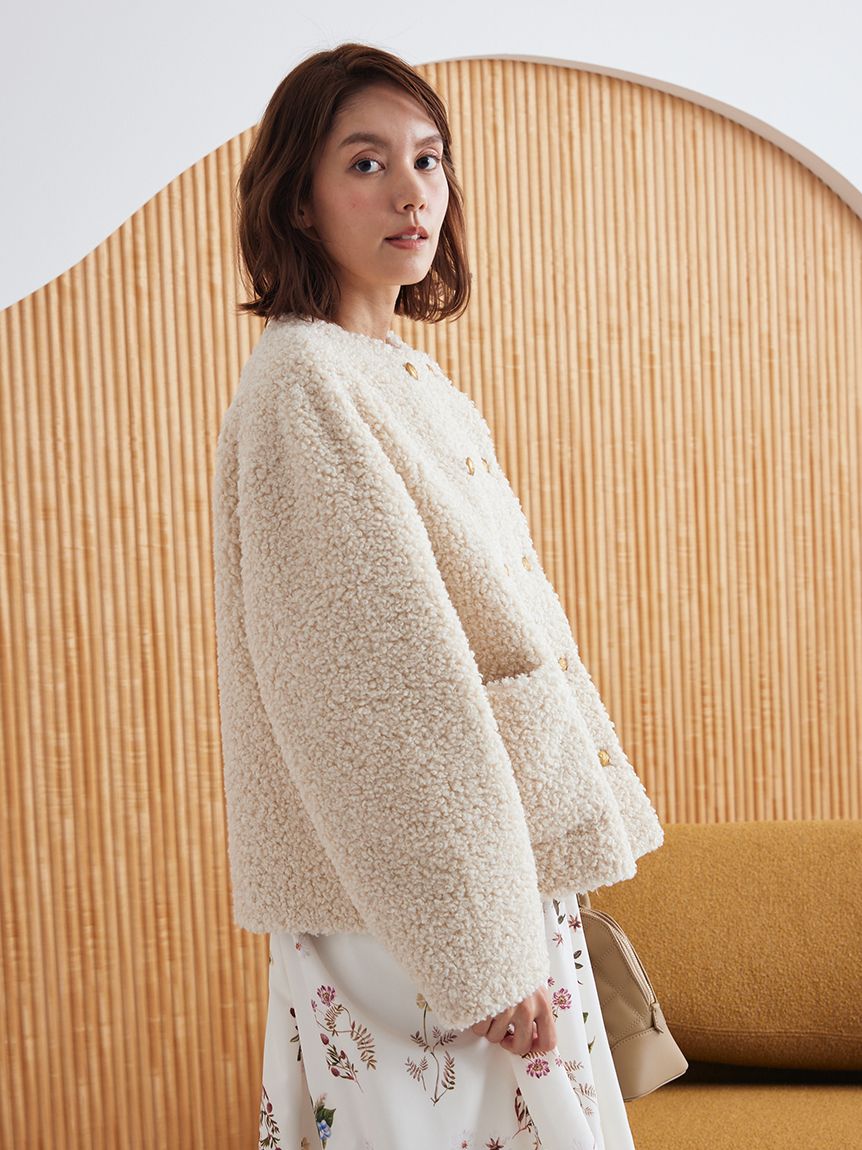 金釦蓬鬆毛絨短版外套 09WFJ255028