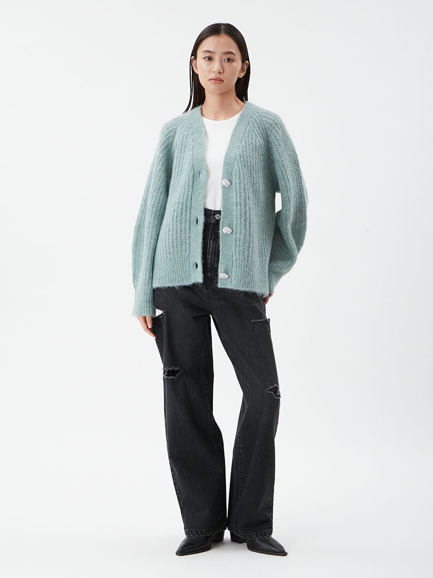 鏤空剪裁寬版丹寧褲 09WFP255062