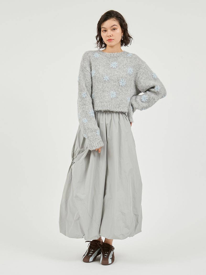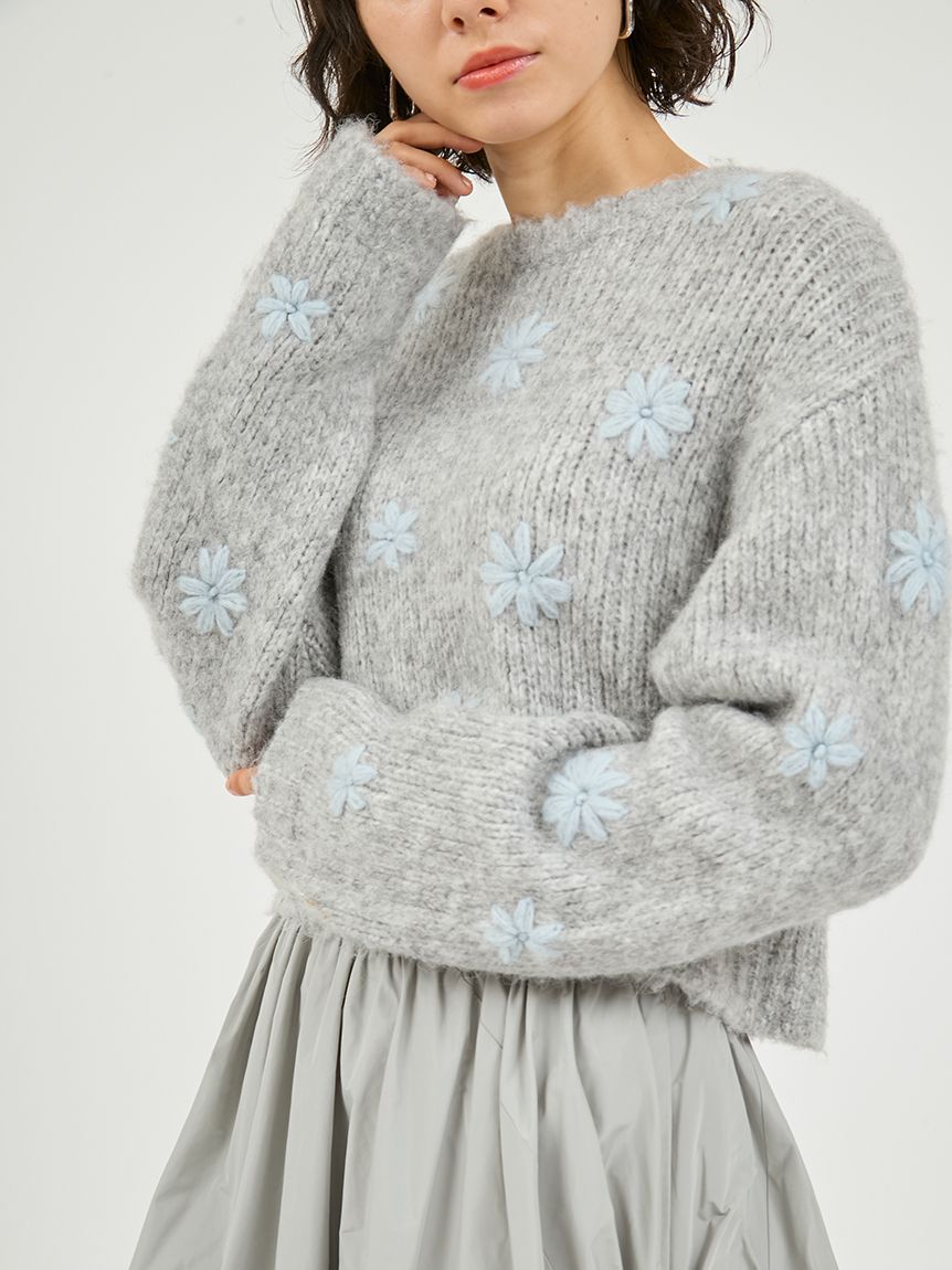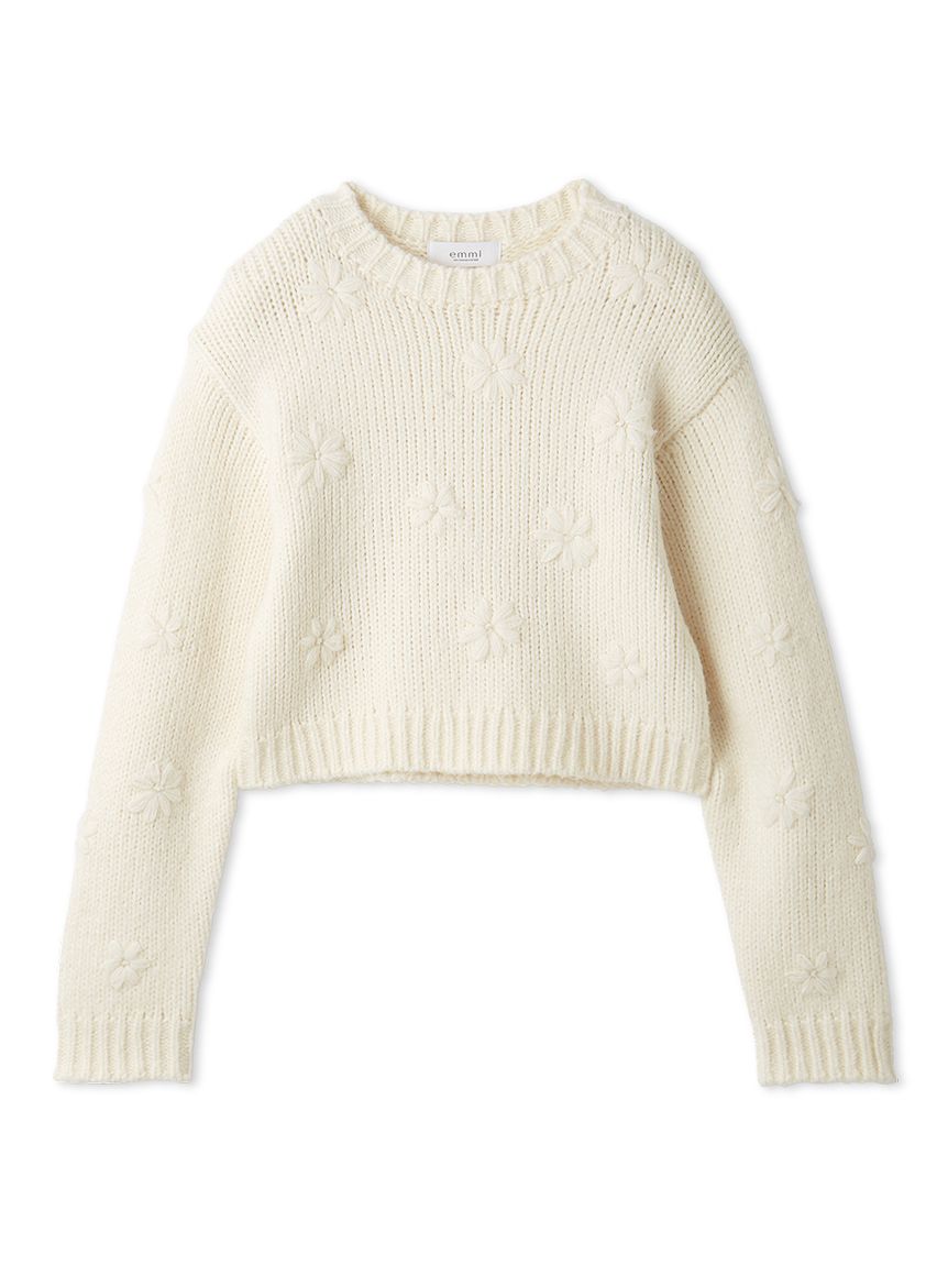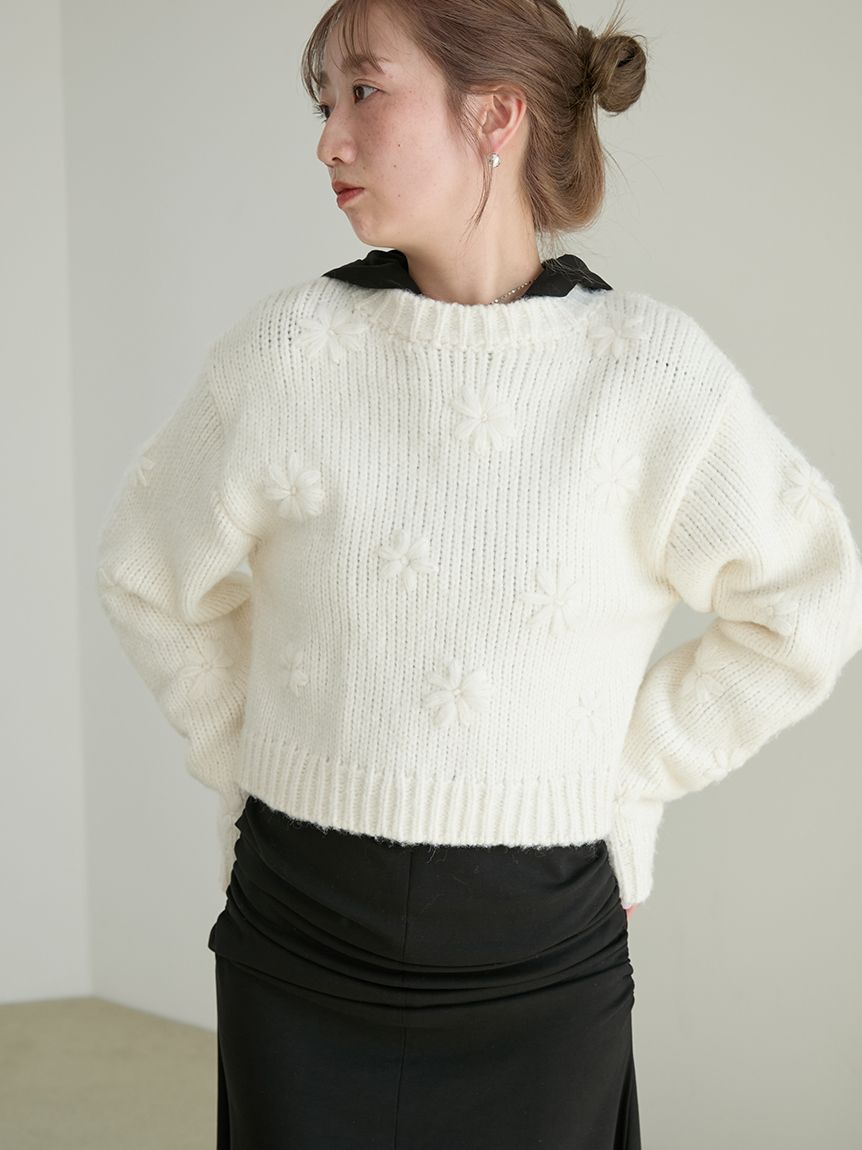 【柔軟粗針針織上衣,奢華點綴立體花朵刺繡】 【Design/Styling】 兼具手編般的溫暖與華麗感,單穿即可成為造型主角的上衣。 【Coordinate】 建議搭配寬褲或澎鬆裙等有層次感的下身單品,呈現比例分明的時尚造型。 ※由於光線原因,顏色可能與實際顏色有所不同。 或是裝置顯示器、環境光線等因素,商品與照片的顏色可能會略有不同。商品顏色請依商品單獨拍攝照片為主。 ☆禮盒提袋皆屬單獨販賣項目,故不提供包裝服務。若造成不便,敬請見諒。【點選此處加購禮物盒】☆由於7-11在貨物配送上有材積的限制,若訂購的內容有【符合】下列任一條件:1. 訂購 3 件單品以上2. 訂單包含大衣、毛衣、連身裙等單品建議您使用 宅配 寄送,以避免購買商品無法如預期出貨。