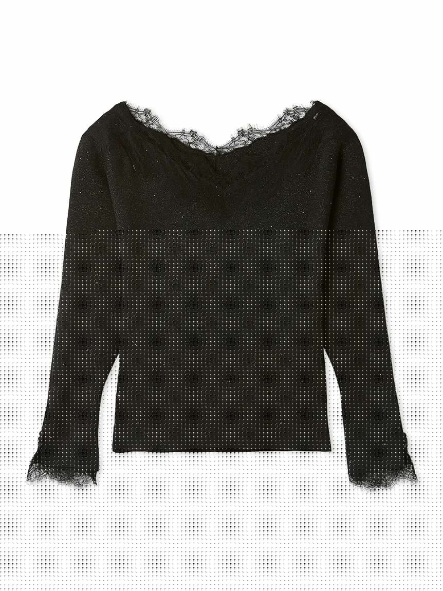 ITEM:蕾絲滾邊羅紋針織上衣 CWNT255077