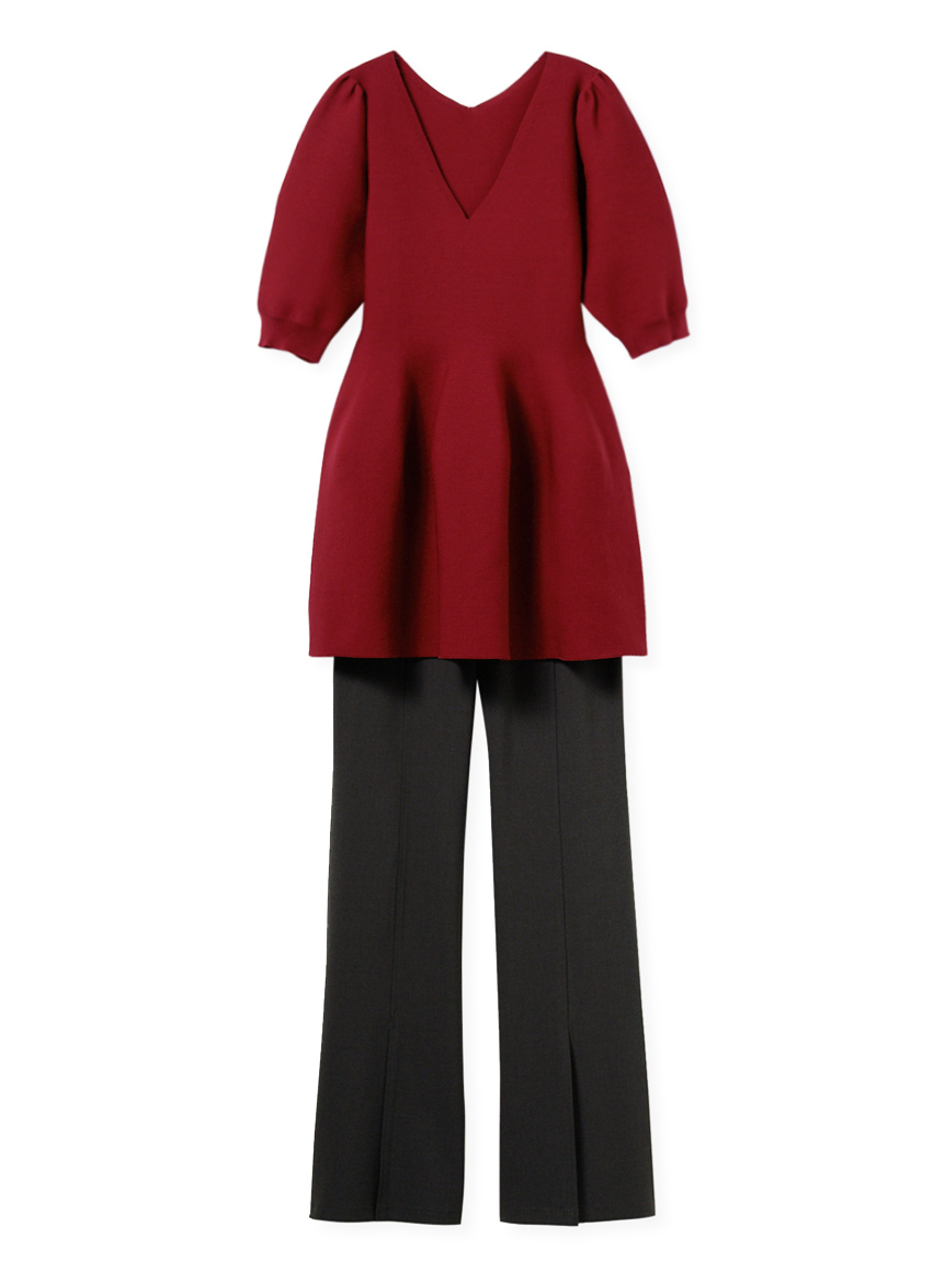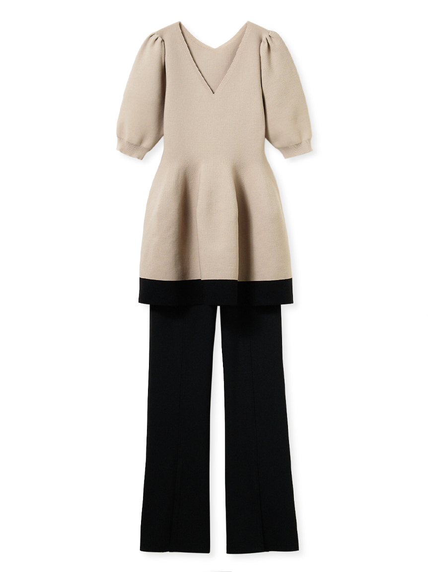 ITEM:花苞針織上衣&前開衩彈性長褲SET / 可機洗 FWNO254286