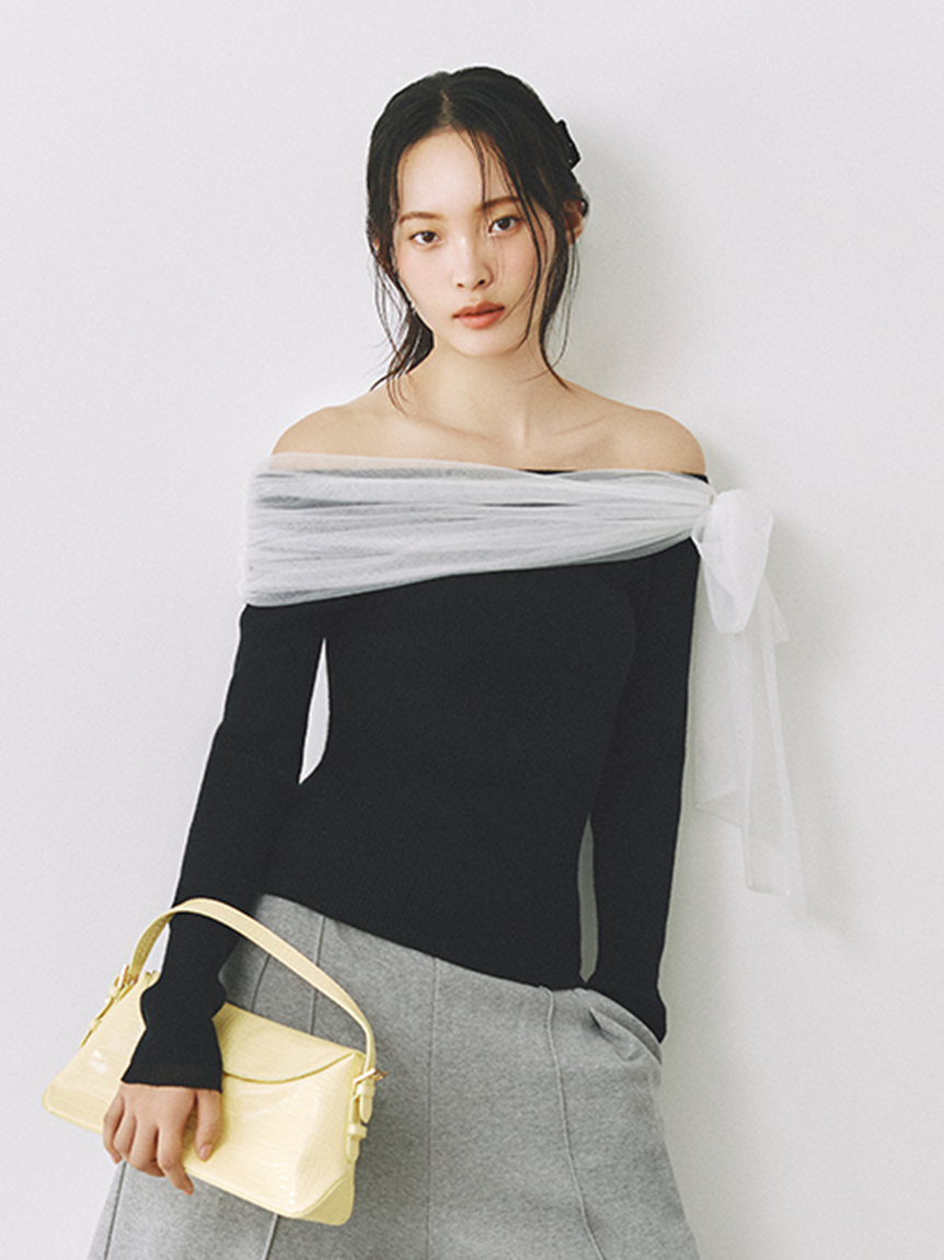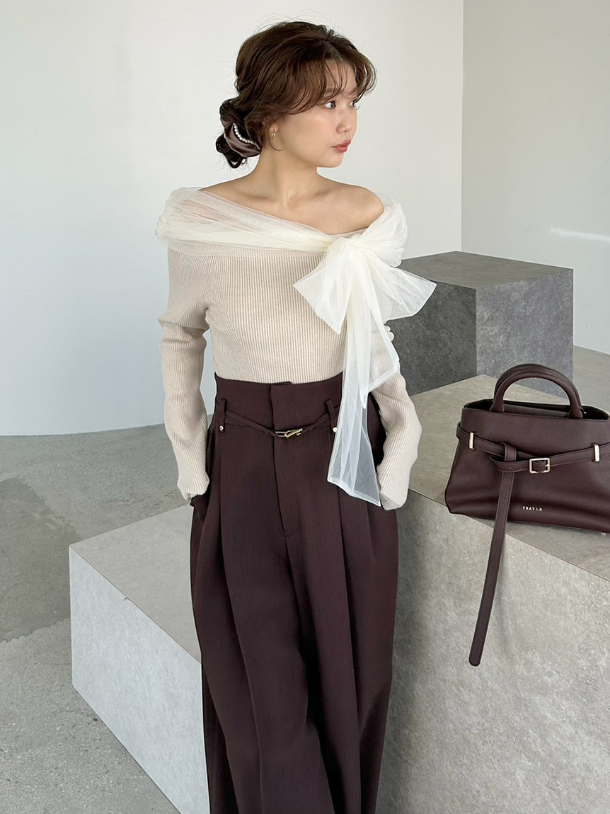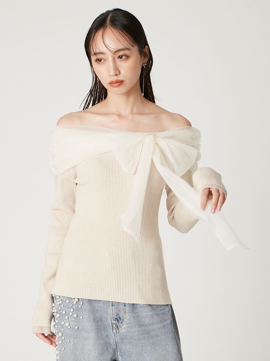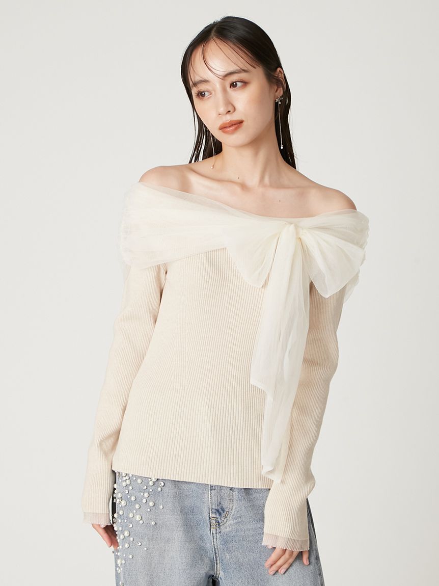 ITEM:3WAY蝴蝶結一字領針織上衣 FWNT255105
