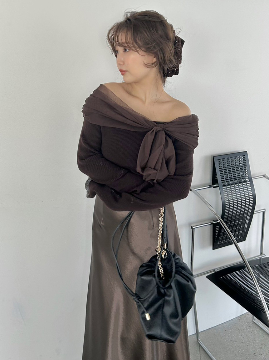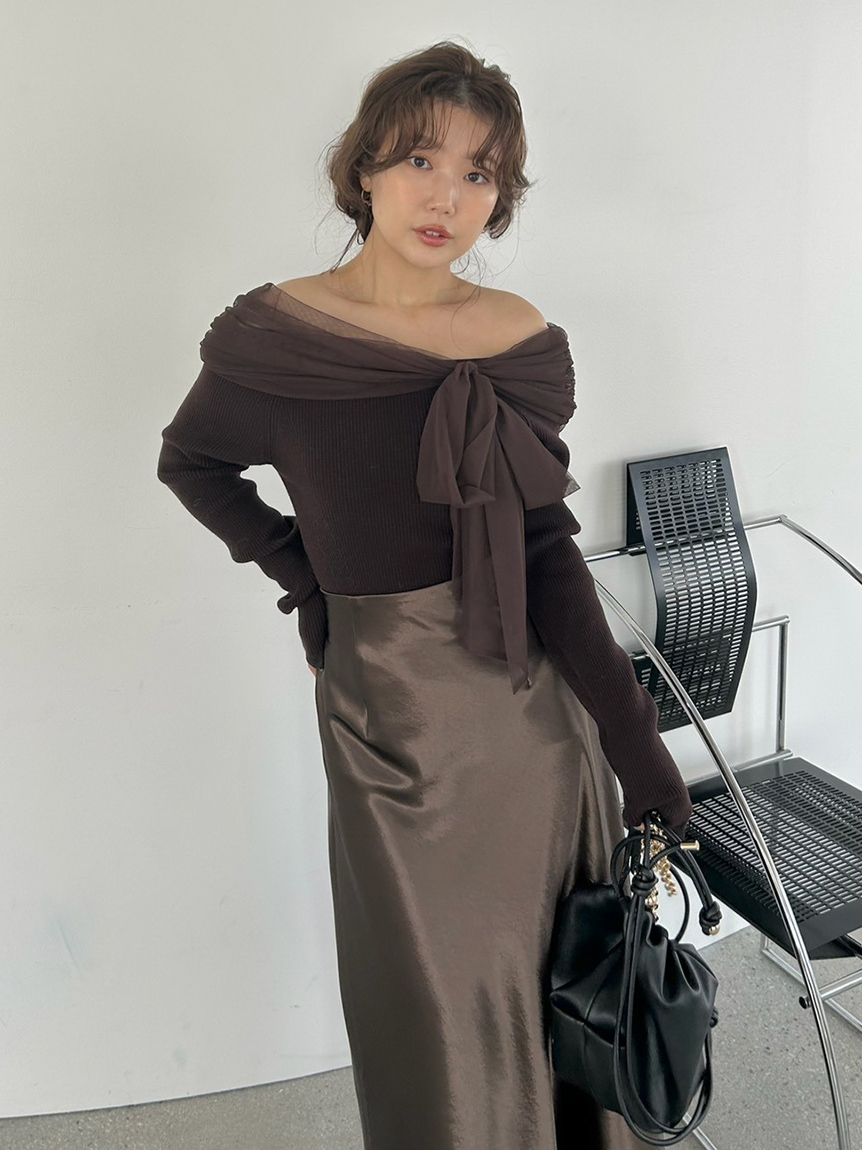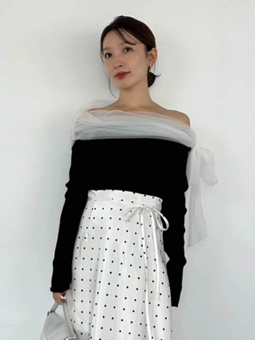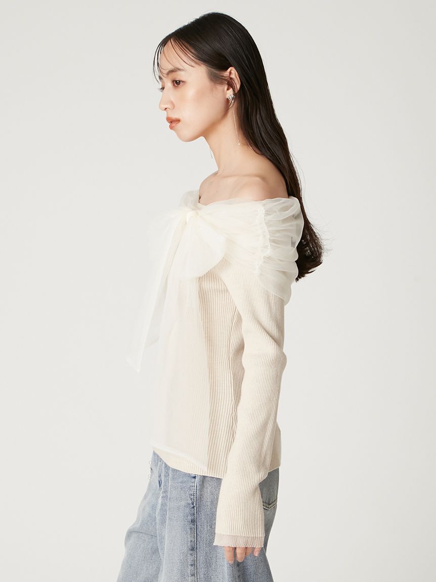 ITEM:3WAY蝴蝶結一字領針織上衣 FWNT255105