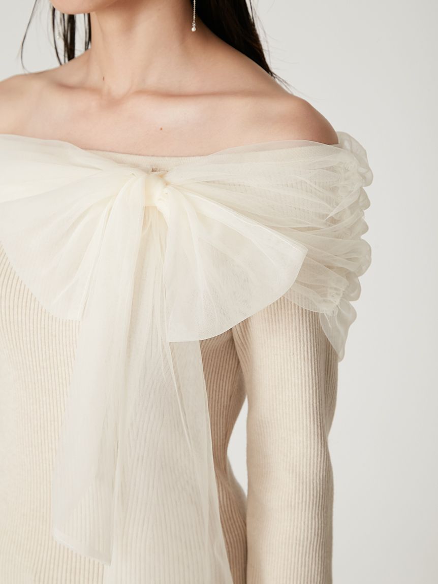 3WAY蝴蝶結一字領針織上衣 FWNT255105