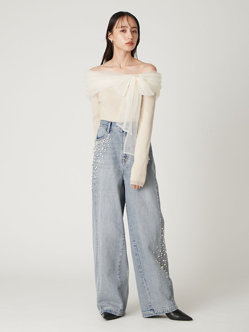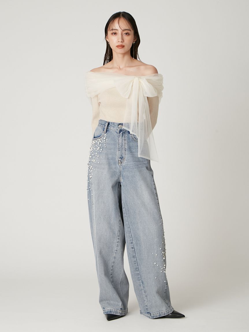 蝴蝶結緞帶直筒寬版牛仔褲 FWFP255067