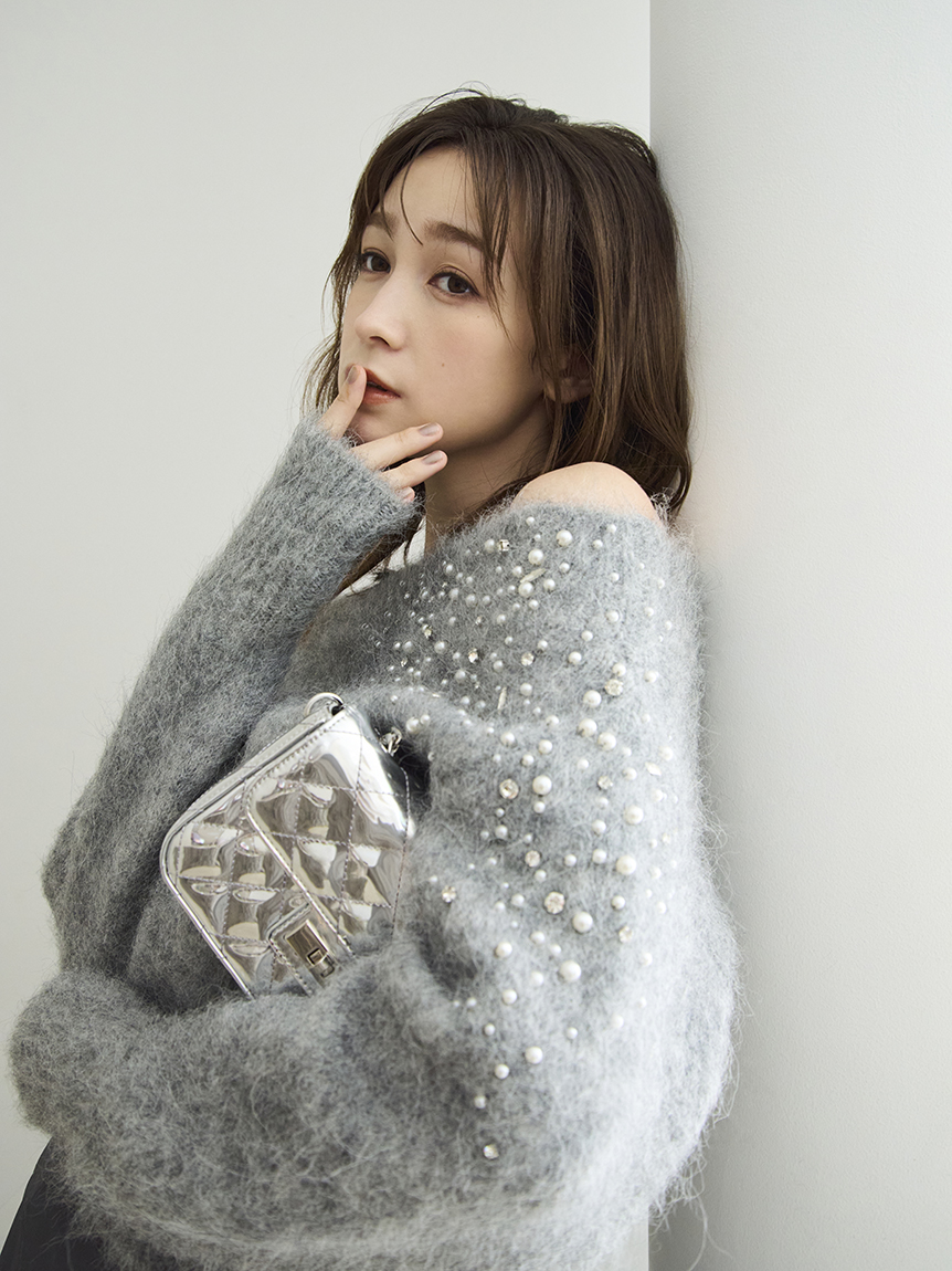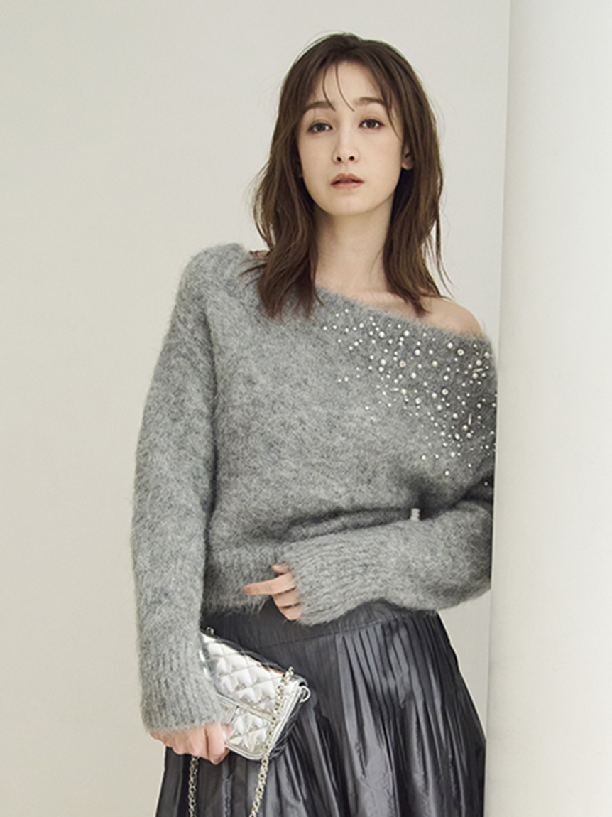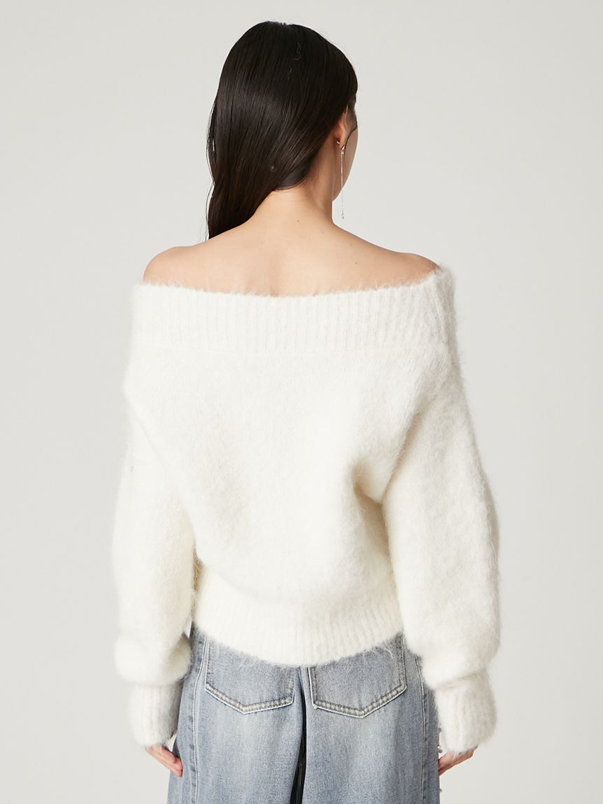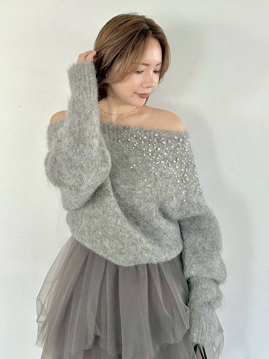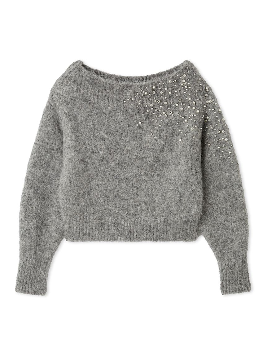 ITEM:羊駝毛絨感寶石裝飾露肩針織上衣 FWNT255107