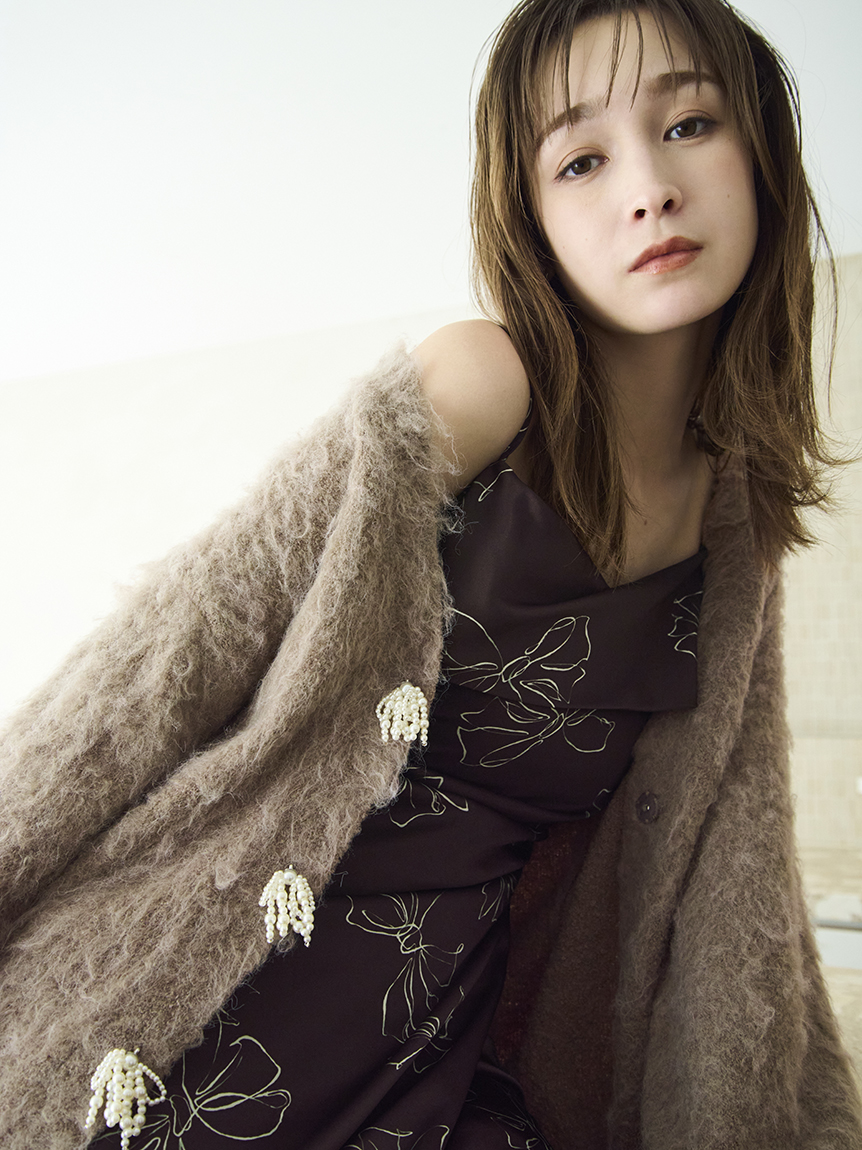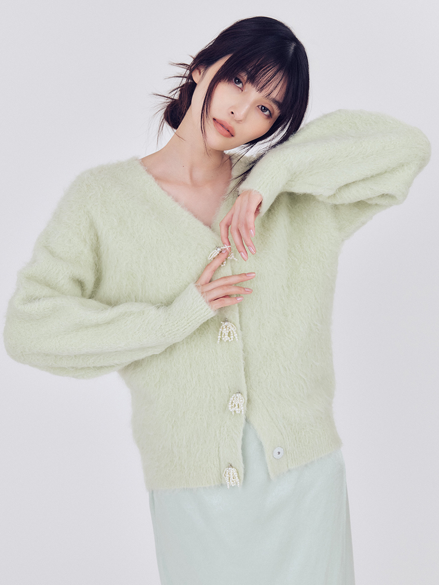 ITEM:珍珠蝴蝶結刷毛中長版V領外套 FWNT255118