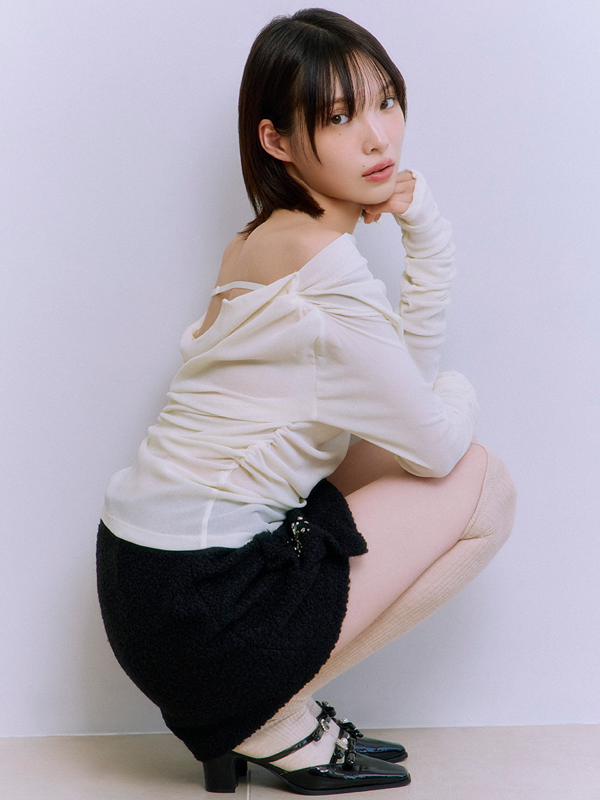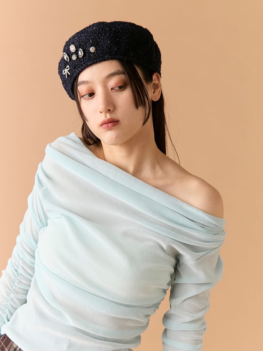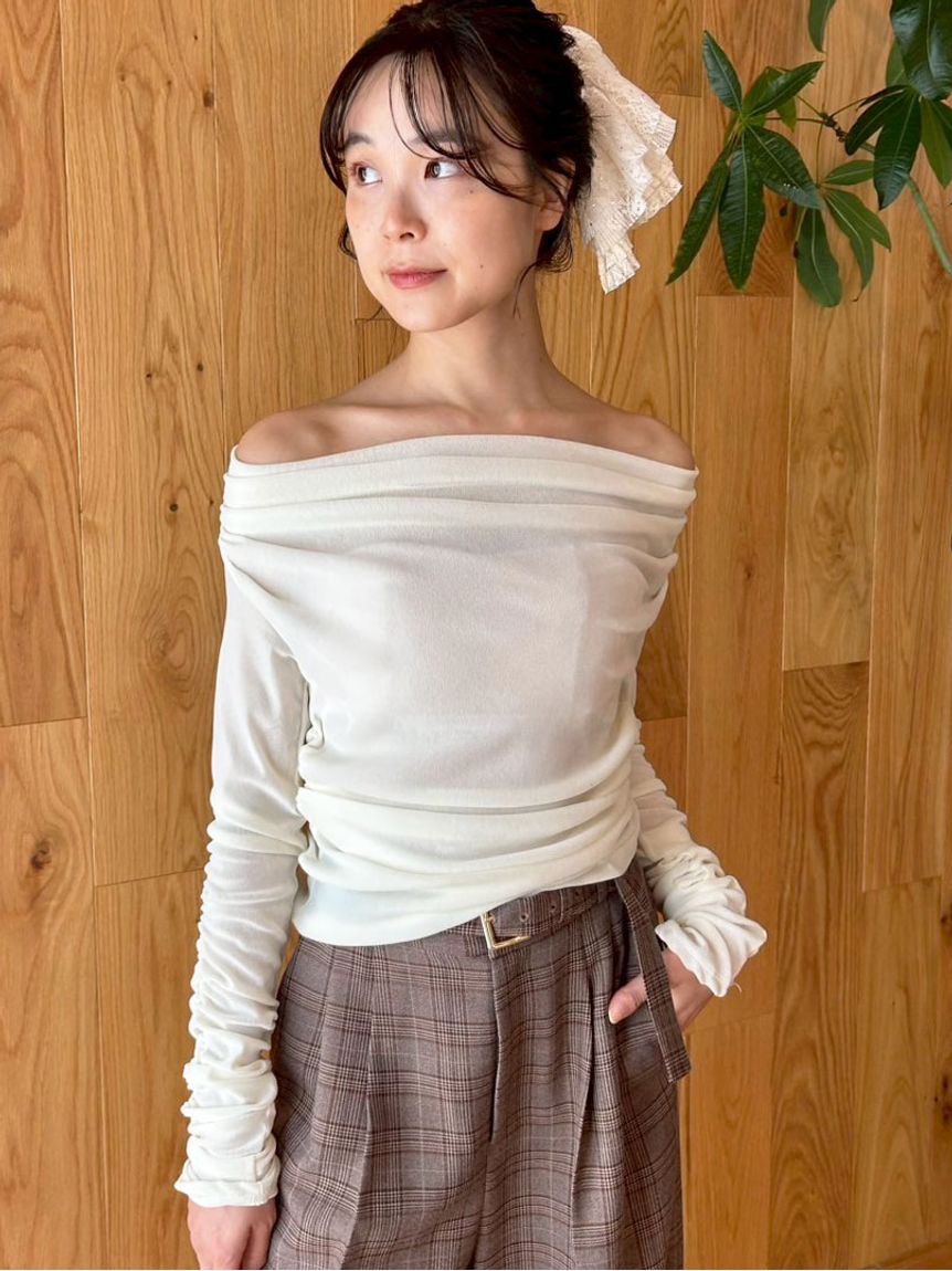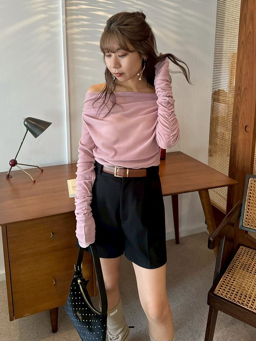 ITEM:植絨天鵝絨露肩上衣 LWCT255116