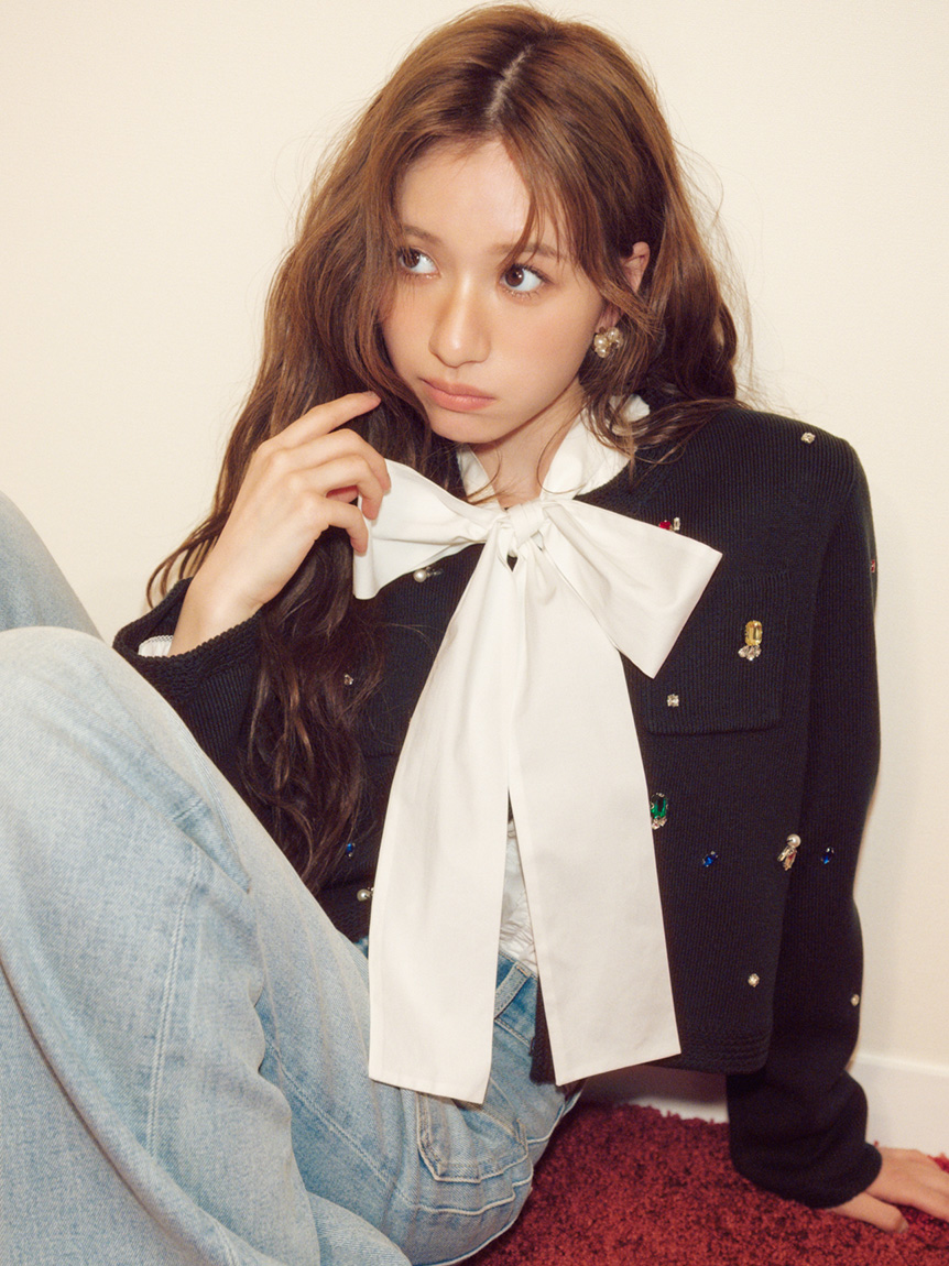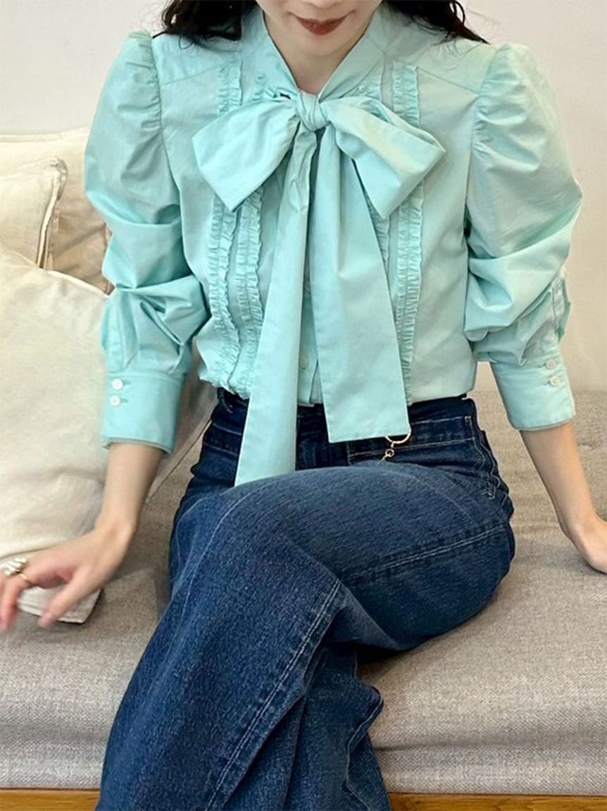 ITEM:蝴蝶結領荷葉邊蕾絲襯衫【Hearts2Hearts著用】LWFB255040