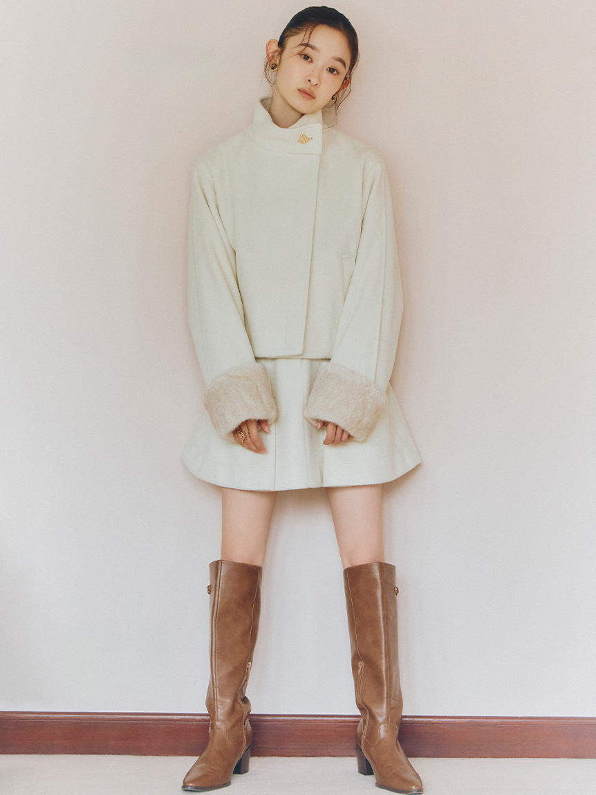 [IVR] 77%聚酯纖維、13%羊毛、10%壓克力纖維/ [MNT] 80%聚酯纖維、10%羊毛、8%壓克力纖維、2%尼龍/ [BLK] 100%聚酯纖維