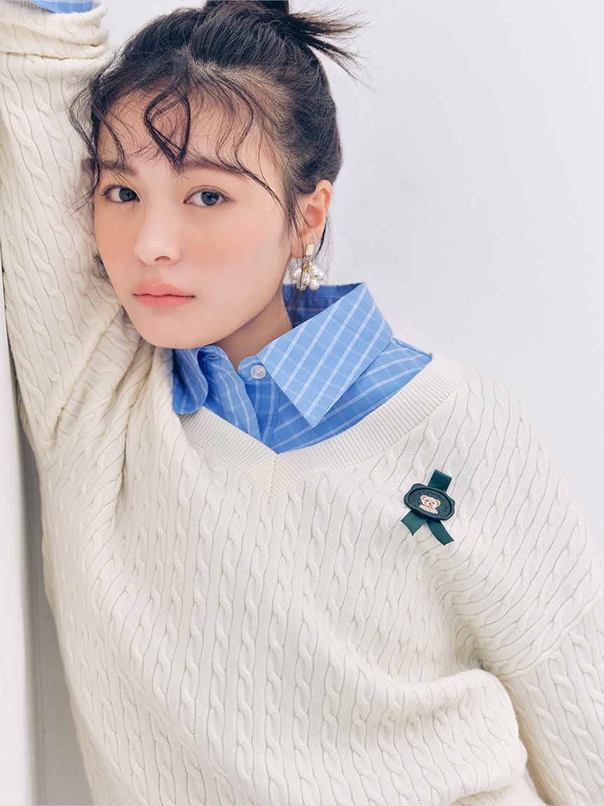 Lily Bear小熊印章造型麻花針織上衣 LWNT261095