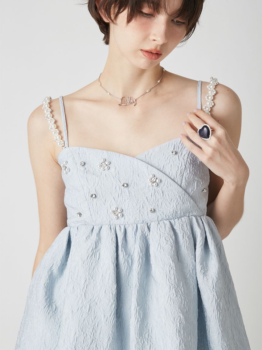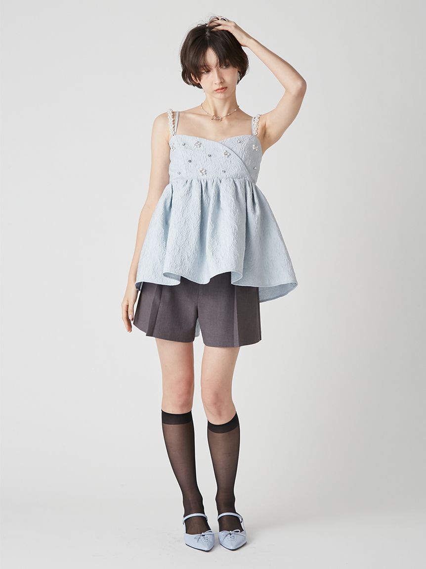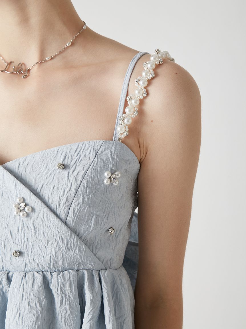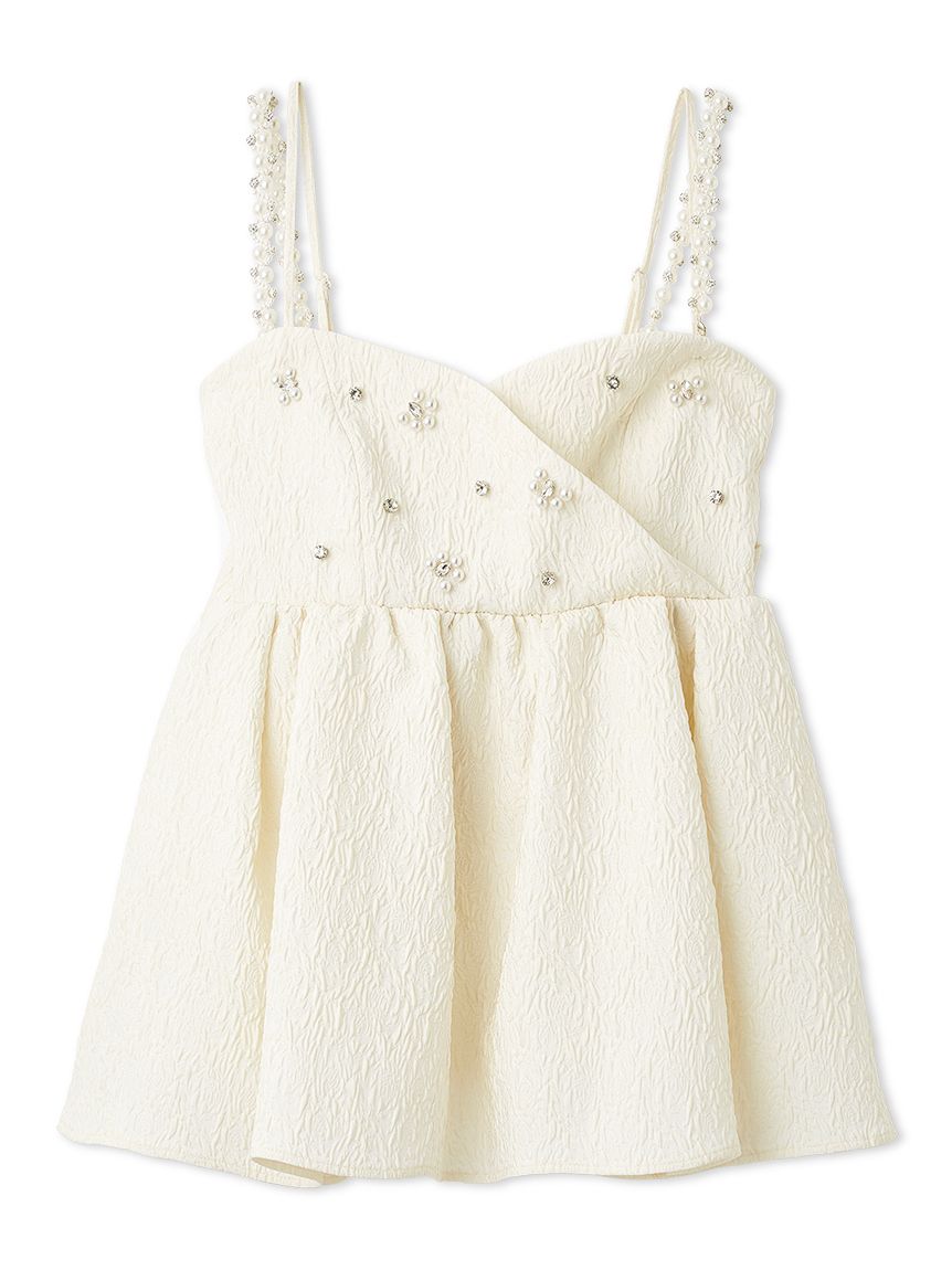 【玫瑰紋提花布料點綴的亮片肩帶上衣】 【Design/Styling】 這款荷葉邊上衣採用隱約浮現玫瑰紋路的蓬鬆提花布料,透過立體有層次的剪裁,打造出吸睛的造型。除了可拆卸的亮片肩帶外,胸前亦點綴著亮片與珍珠,讓臉部周圍更顯華麗迷人。 充滿淑女氣質的抹胸設計,搭配背部的彈性鬆緊帶,既能適度貼合身形,又兼顧舒適與美感。無論是特殊場合,還是日常穿搭,都能為整體造型增添一抹亮色。 透過大尺寸的後背蝴蝶結,連背影都無微不至地展現可愛魅力。 【Fabric】 採用富有蓬鬆感的玫瑰花紋提花布料,立體感豐富且充滿表情。質地輕盈卻不失優雅的厚度,能完美維持優美的輪廓線條。 ※由於光線原因,顏色可能與實際顏色有所不同。 或是裝置顯示器、環境光線等因素,商品與照片的顏色可能會略有不同。商品顏色請依商品單獨拍攝照片為主。 ☆禮盒提袋皆屬單獨販賣項目,故不提供包裝服務。若造成不便,敬請見諒。【點選此處加購禮物盒】☆由於7-11在貨物配送上有材積的限制,若訂購的內容有【符合】下列任一條件:1. 訂購 3 件單品以上2. 訂單包含大衣、毛衣、連身裙等單品建議您使用 宅配 寄送,以避免購買商品無法如預期出貨。 ☆提醒您,官網商品於七日鑑賞期內申請退貨前,請確認商品保持全新完整狀態。凡下水、剪吊牌、試穿痕跡(毛球、汙漬、妝粉、氣味殘留等)、人為加工,或配件、包裝(含包裝袋、衣架、鞋盒、贈品等)不完整者,恕不接受退貨。詳情請參考退換貨政策。