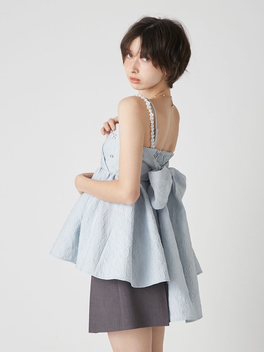 ITEM:[L.B CANDY STOCK]大蝴蝶結寶石傘襬上衣 LWFT261805