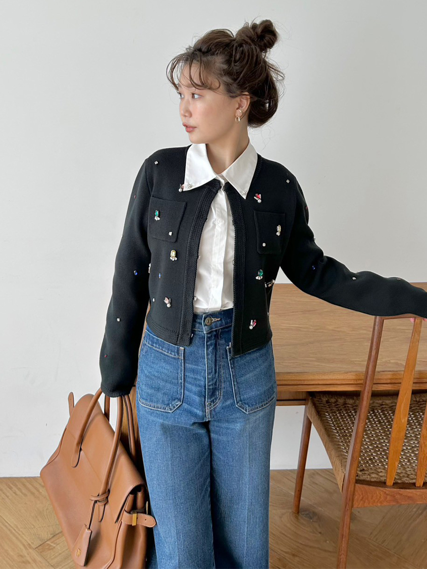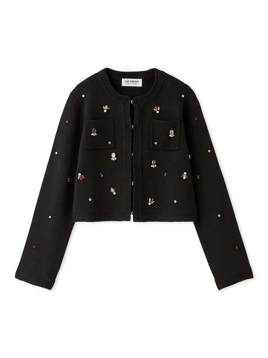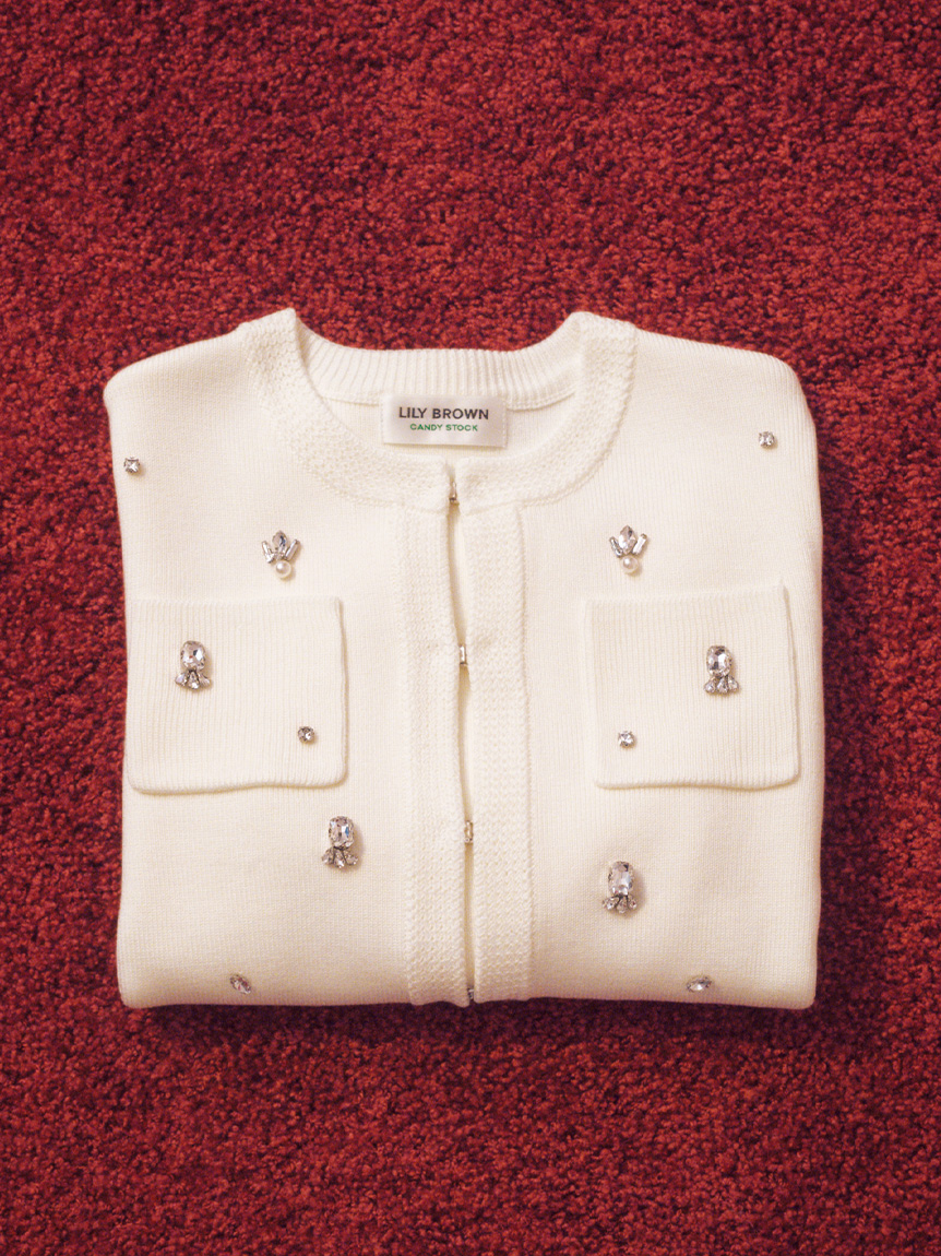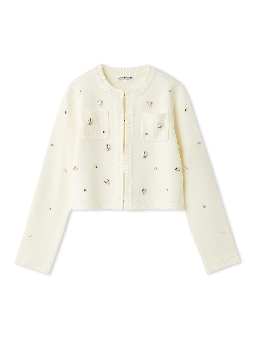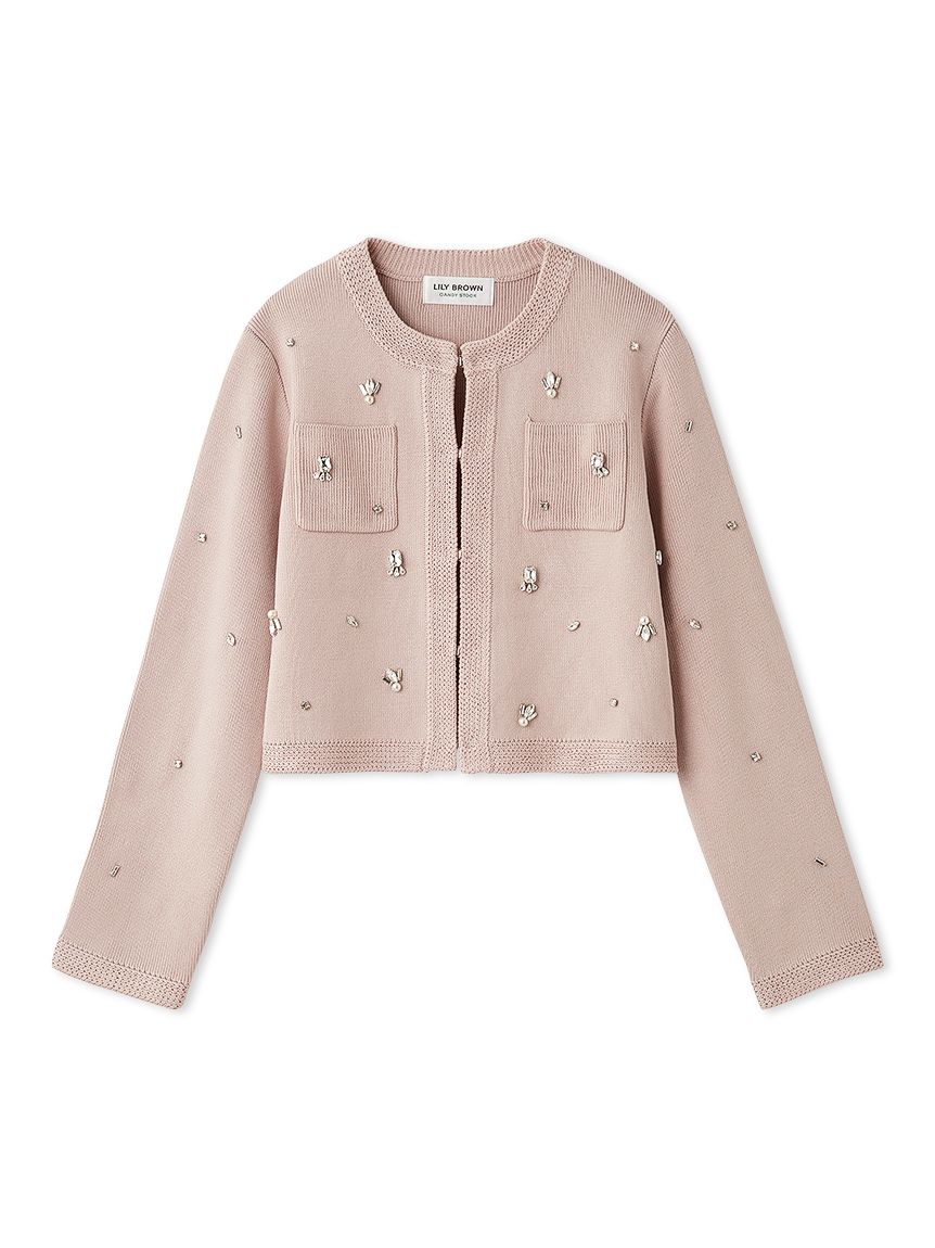 ITEM:[L.B CANDY STOCK]多層珠飾無領針織外套 LWNJ255813