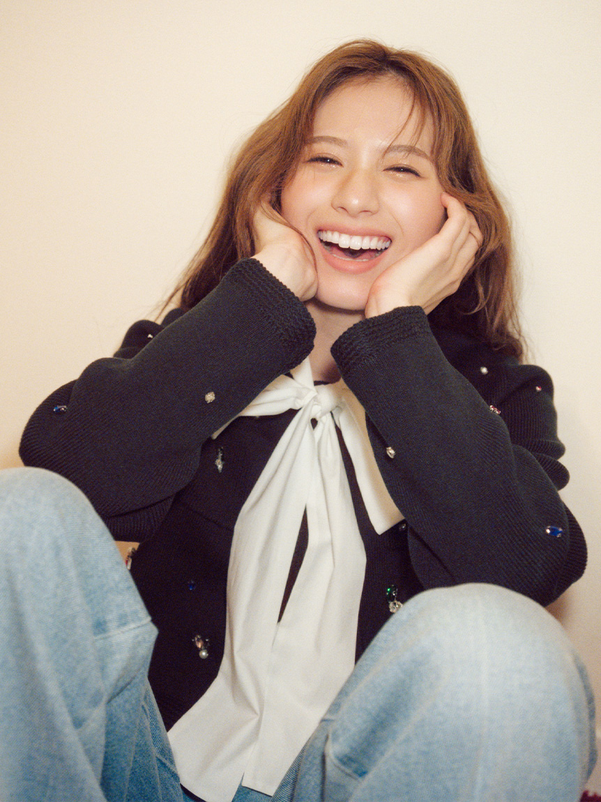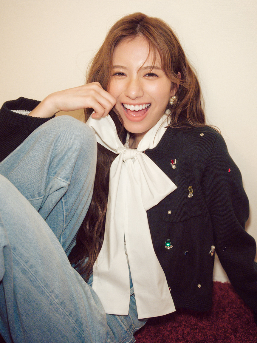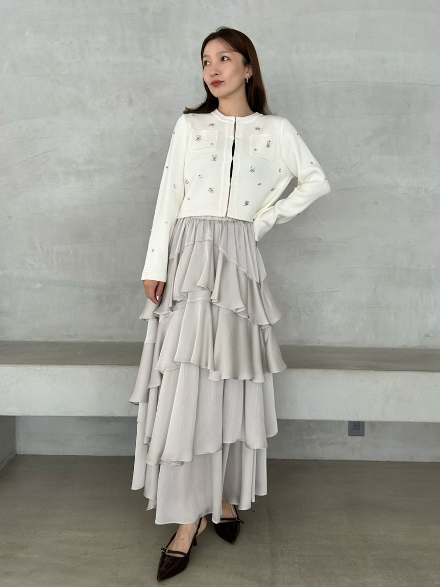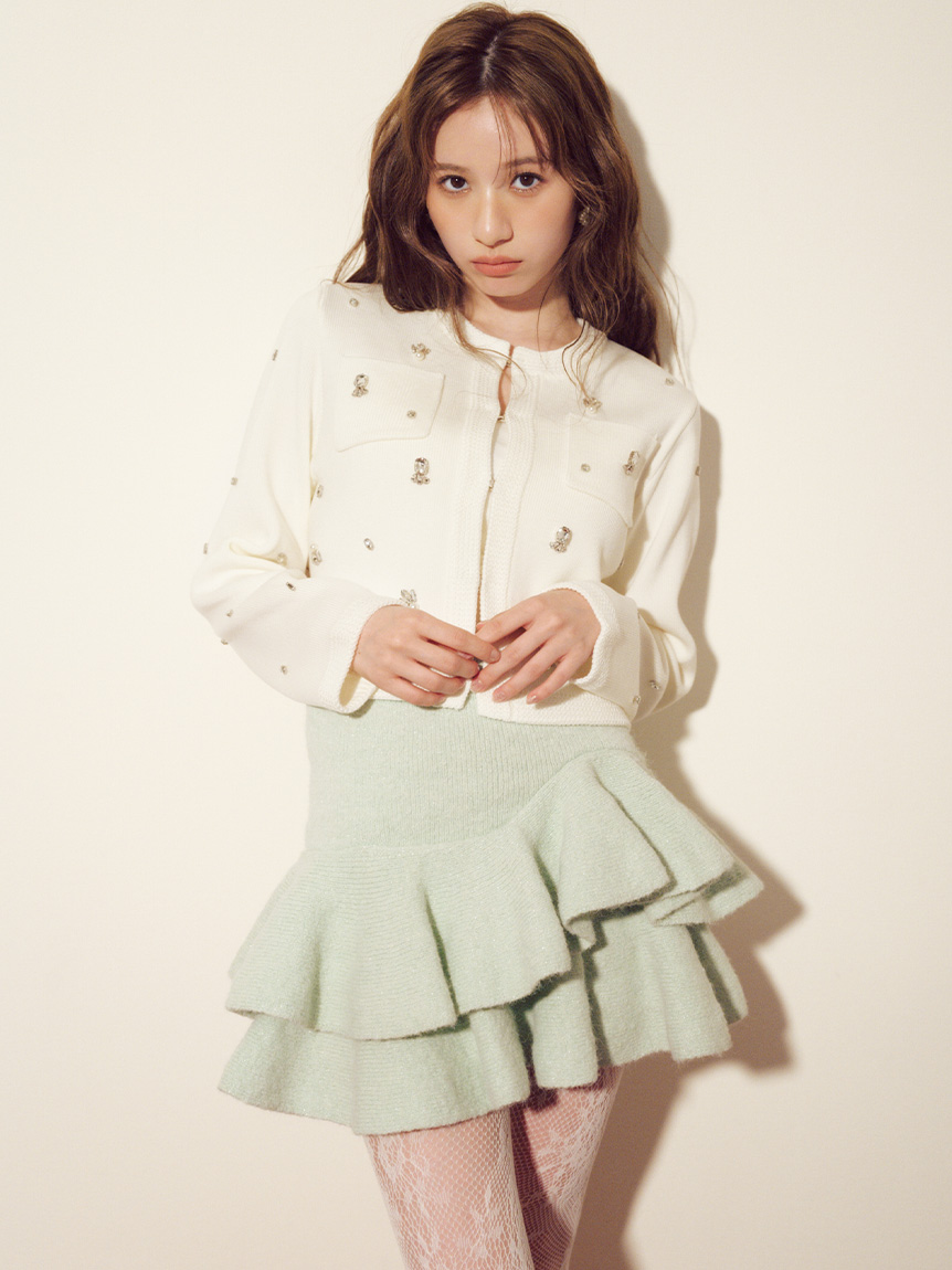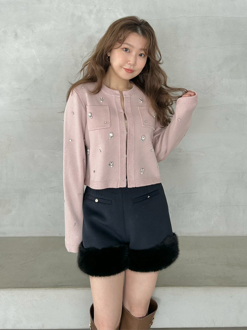 ITEM:[L.B CANDY STOCK]多層珠飾無領針織外套 LWNJ255813