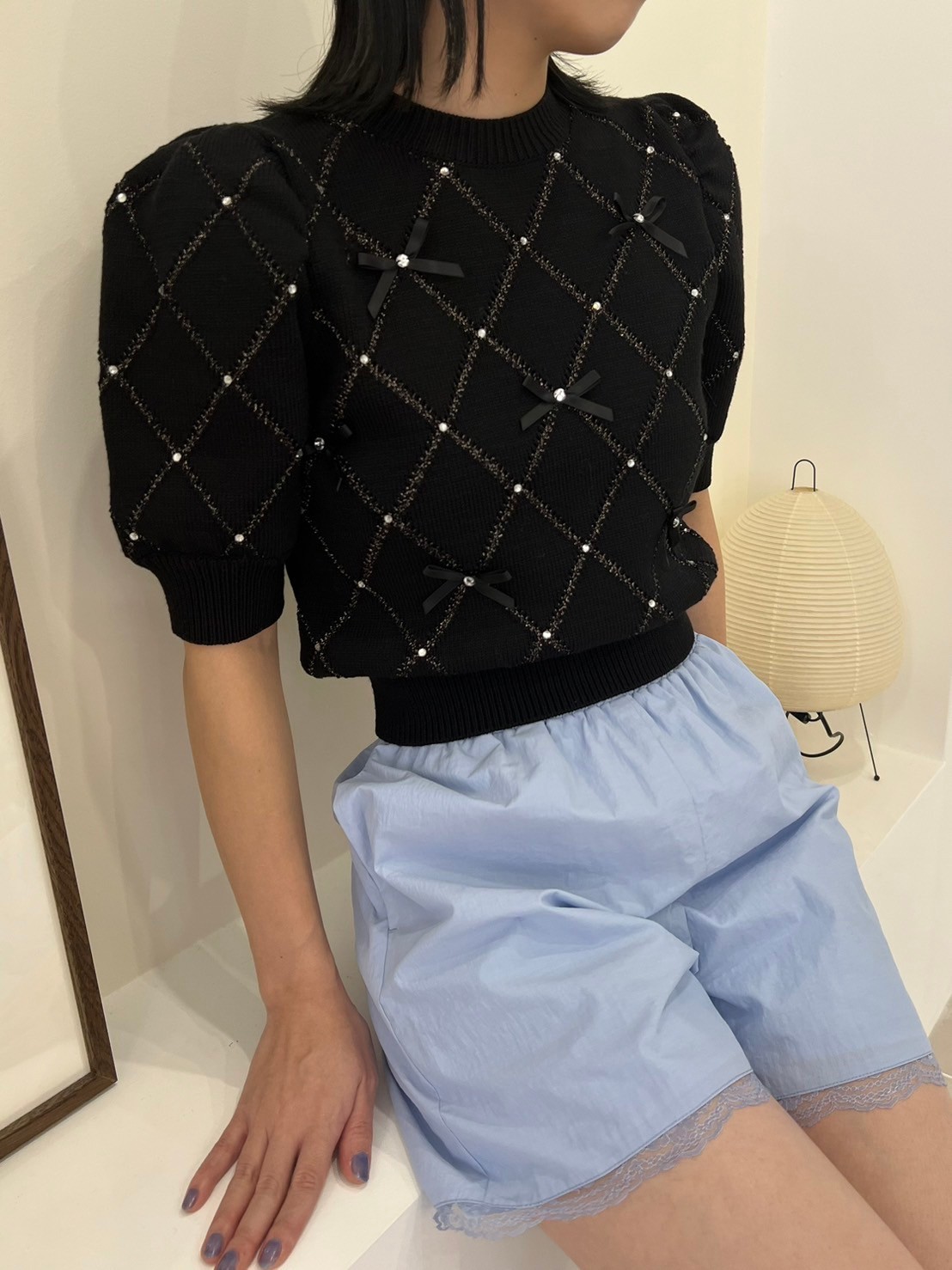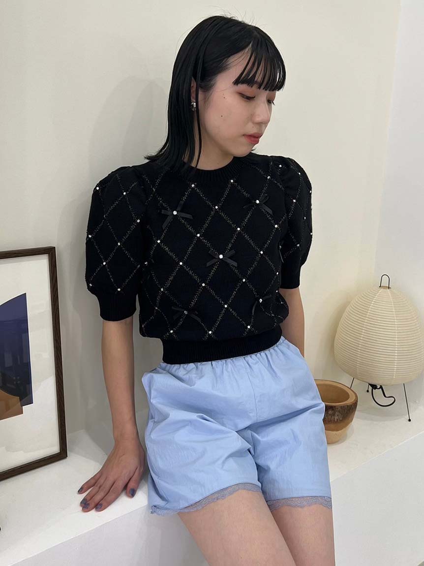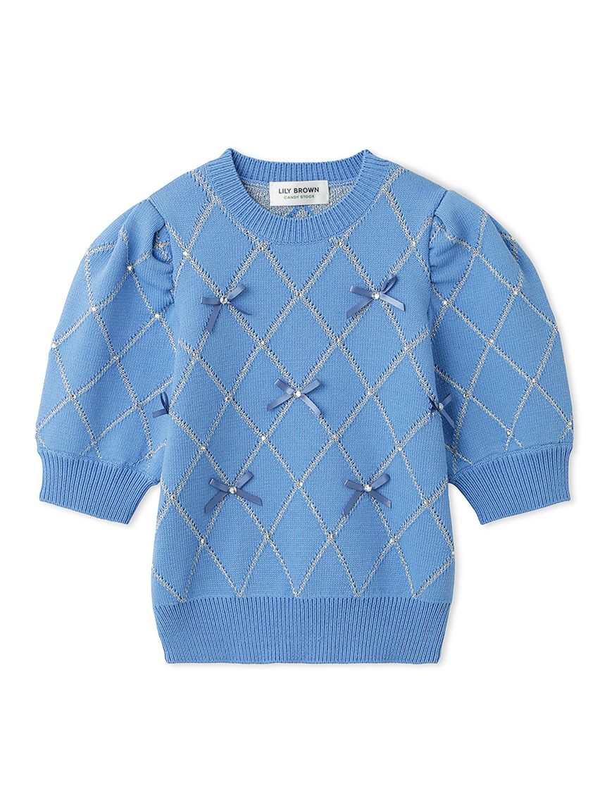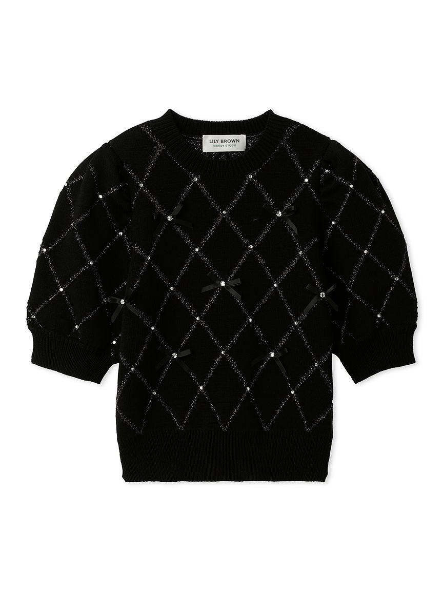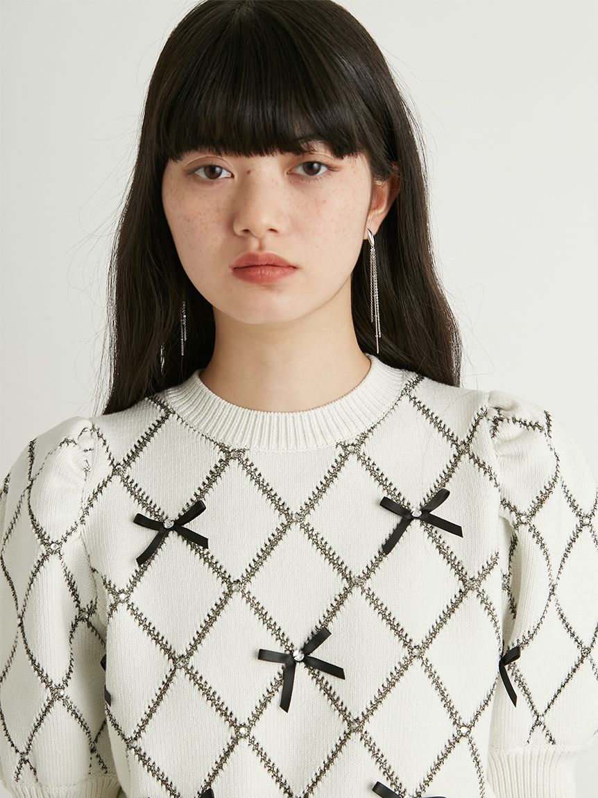 ITEM:[L.B CANDY STOCK]寶石裝飾蝴蝶結針織上衣 LWNT241804