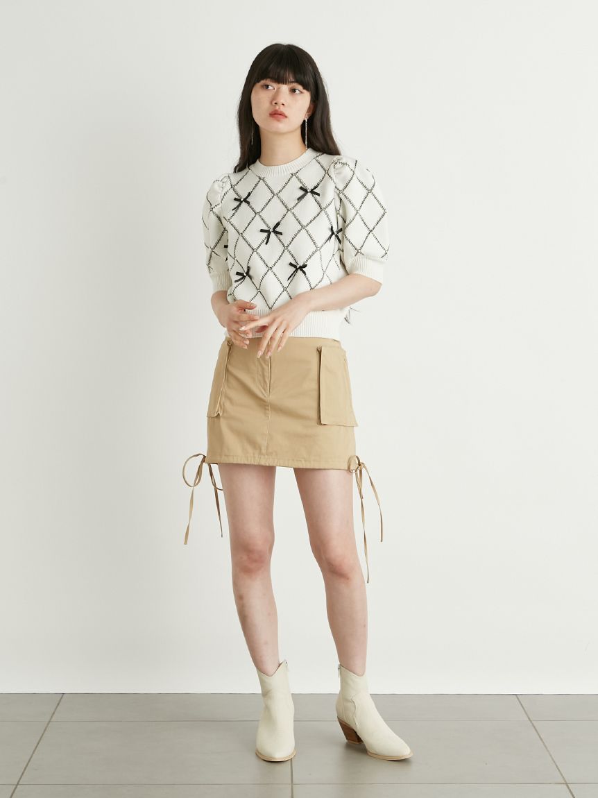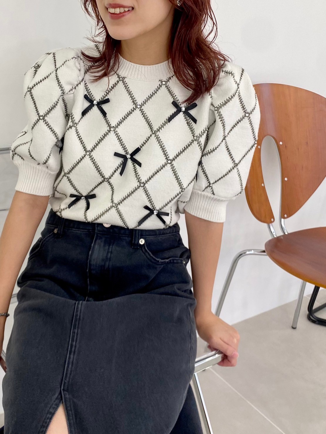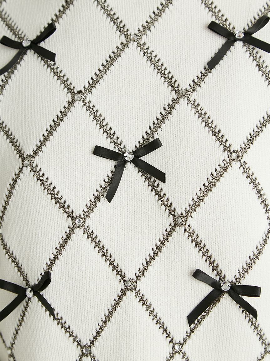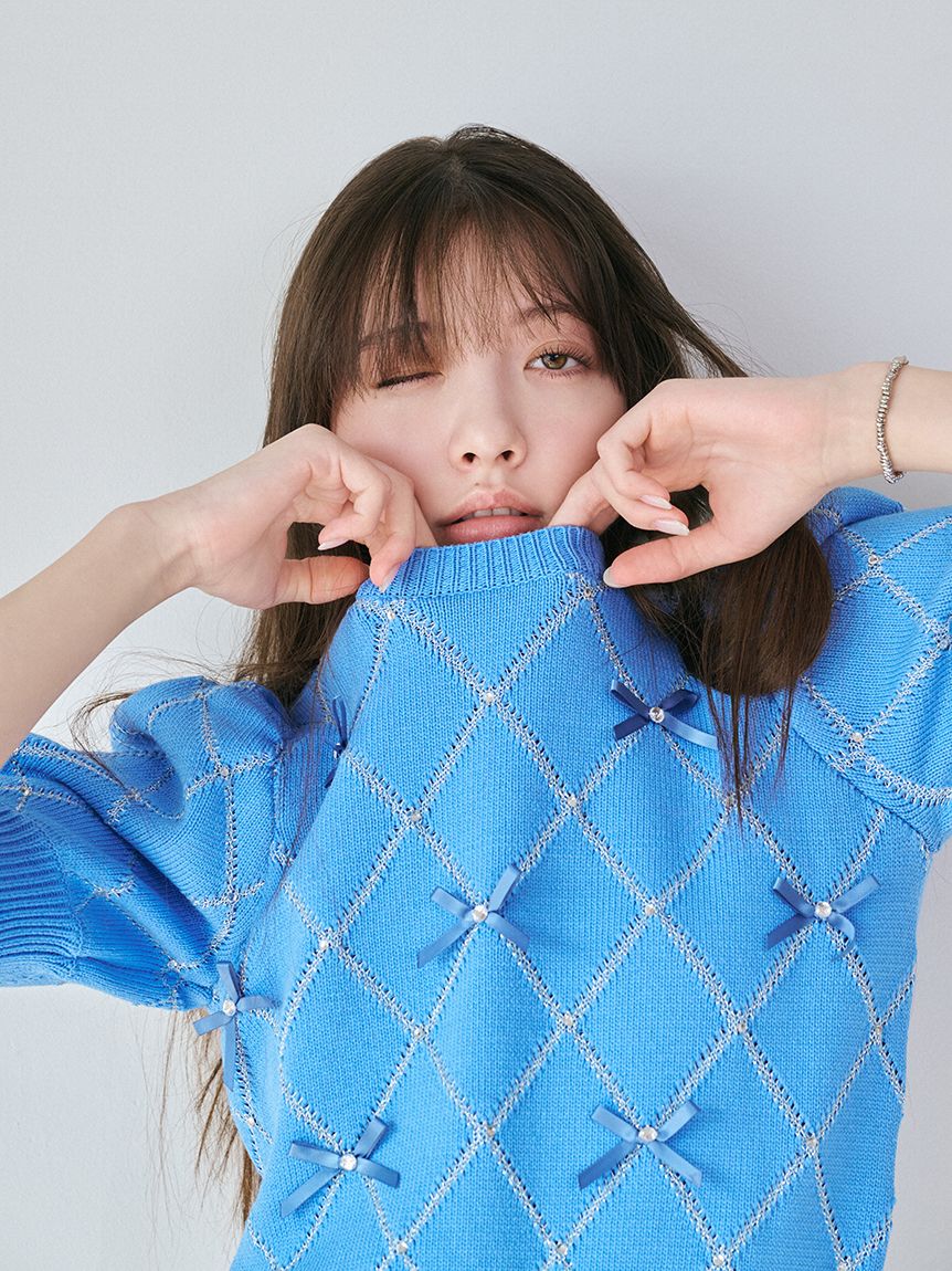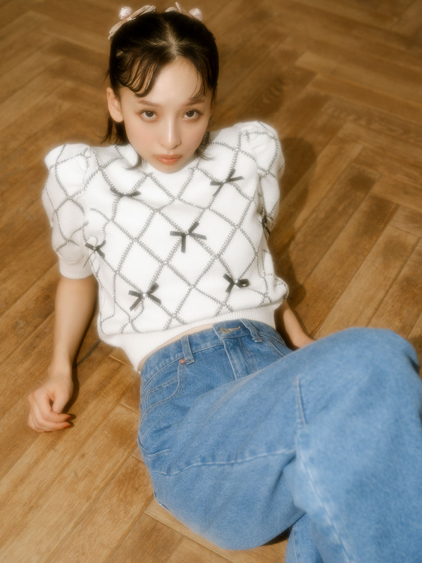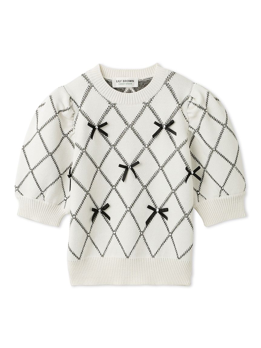 ITEM:[L.B CANDY STOCK]寶石裝飾蝴蝶結針織上衣 LWNT241804