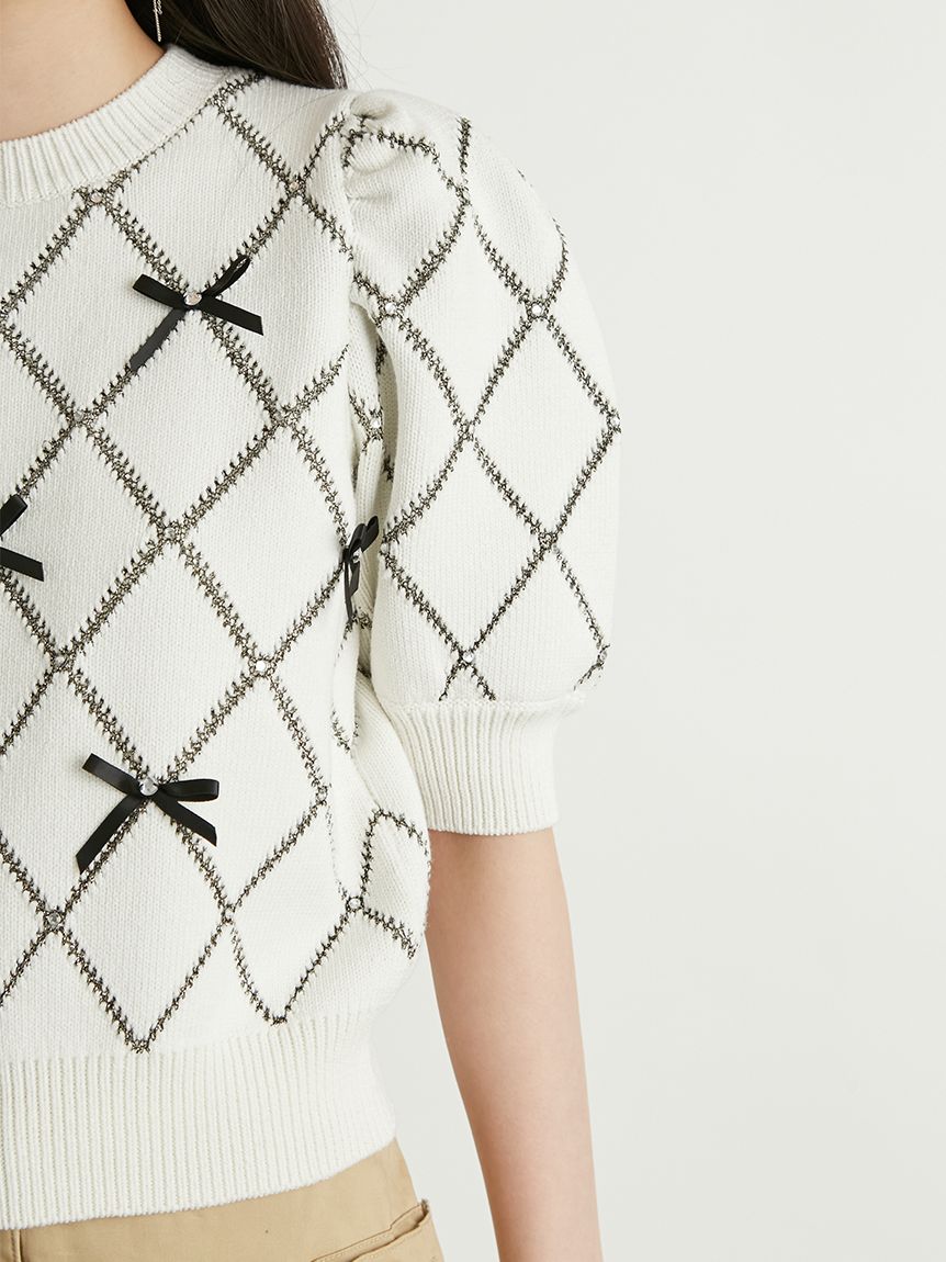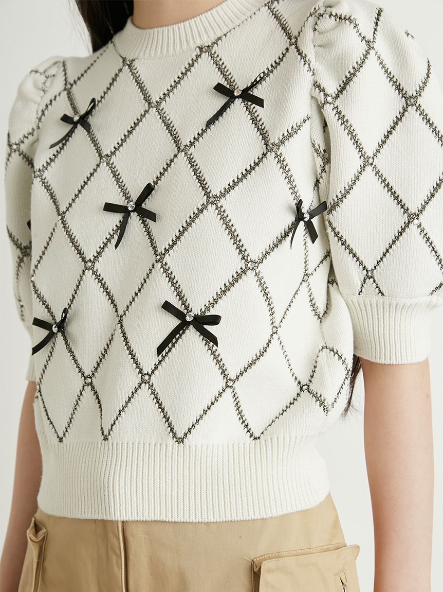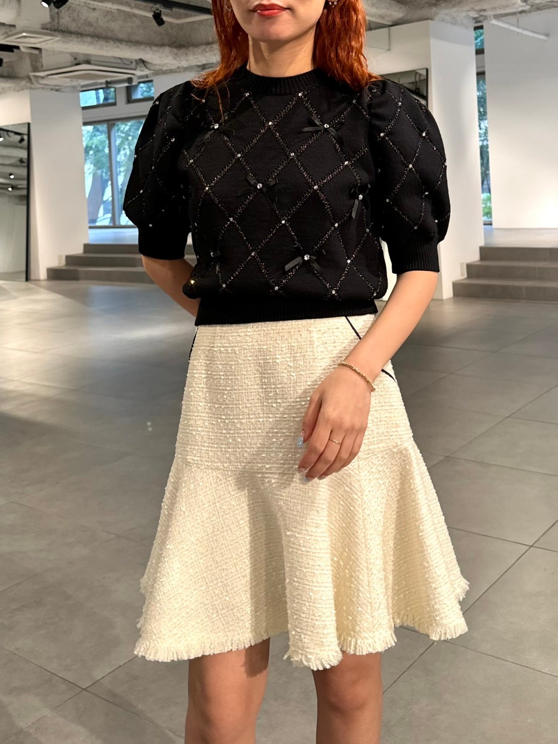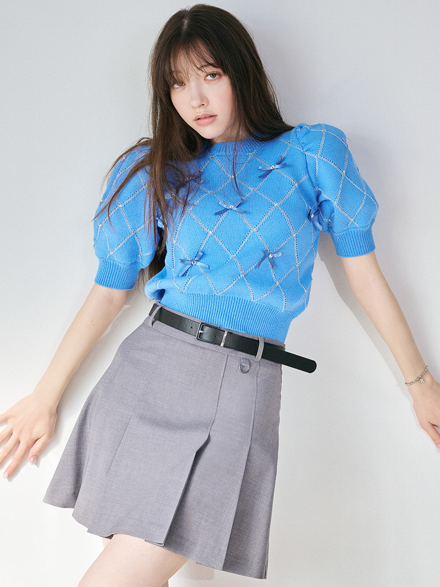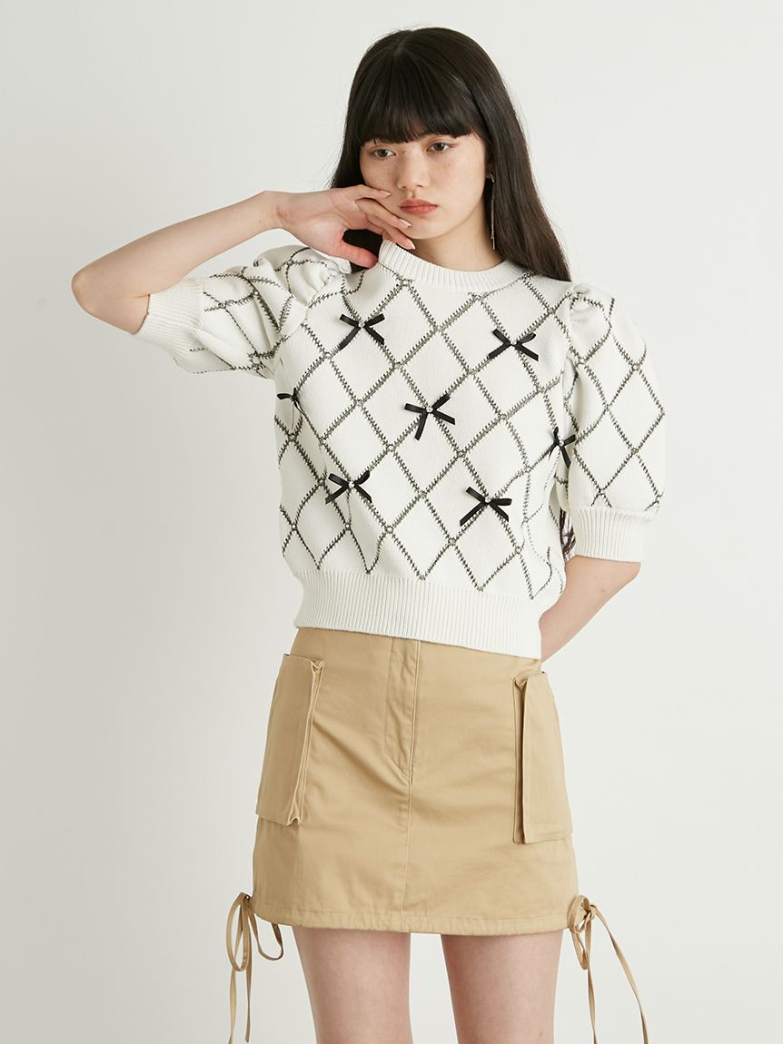 ITEM:[L.B CANDY STOCK]寶石裝飾蝴蝶結針織上衣 LWNT241804