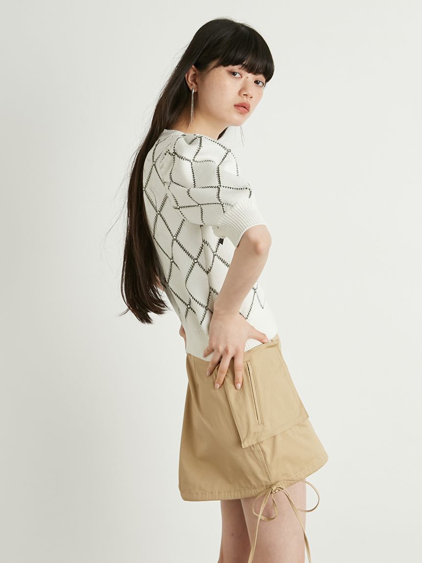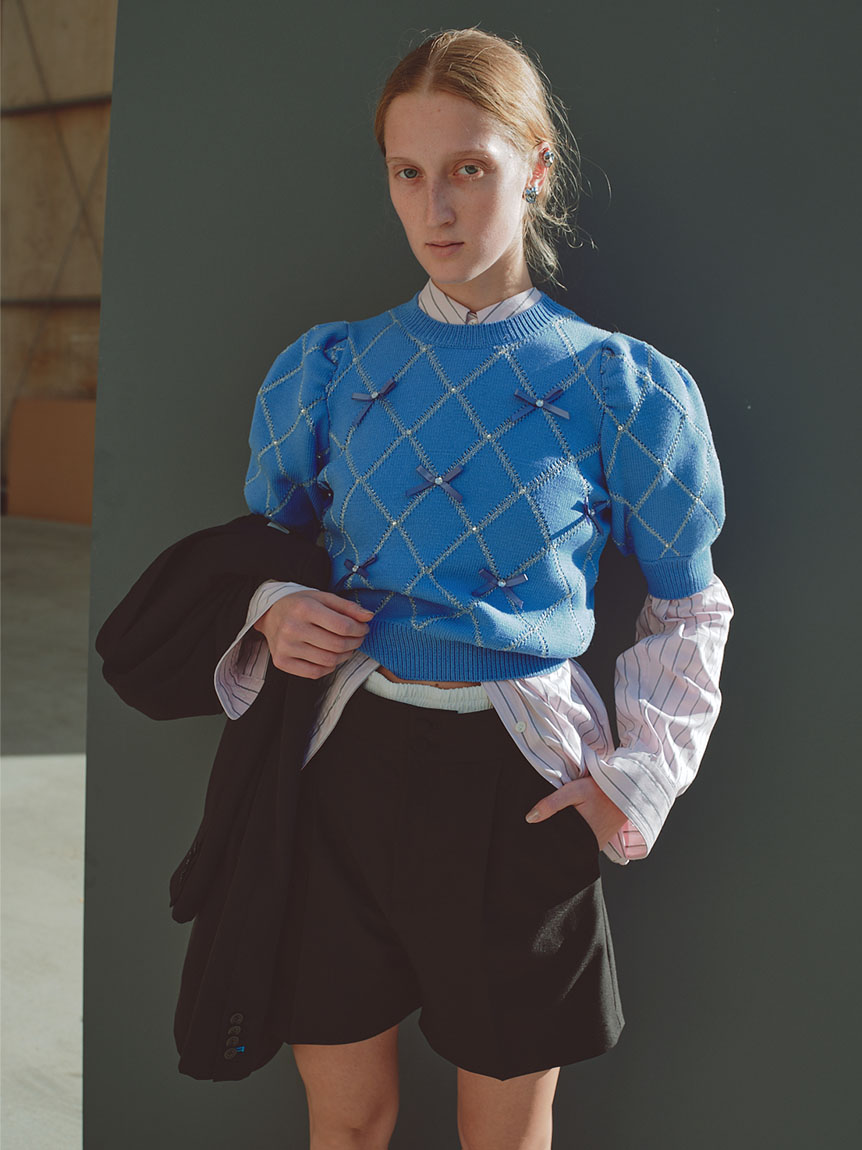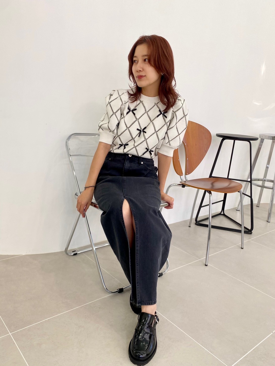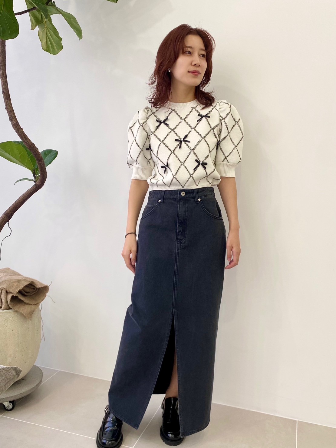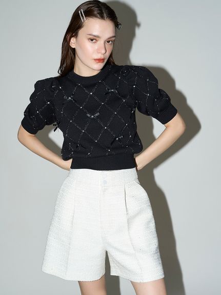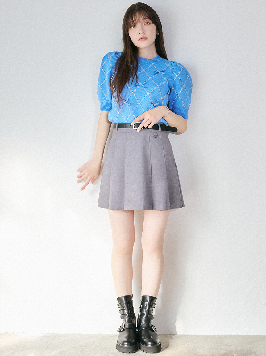 ITEM:[L.B CANDY STOCK]寶石裝飾蝴蝶結針織上衣 LWNT241804