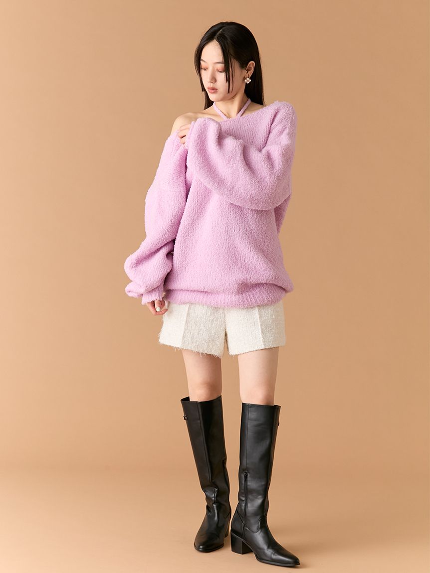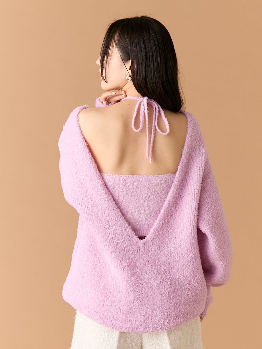 捲毛馬海毛背心&長版上衣SET LWNT255023
