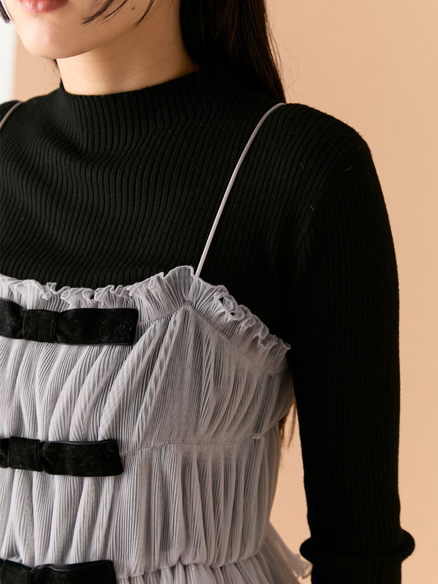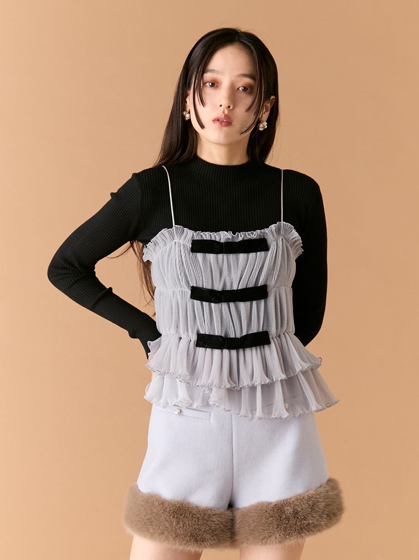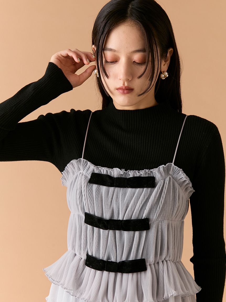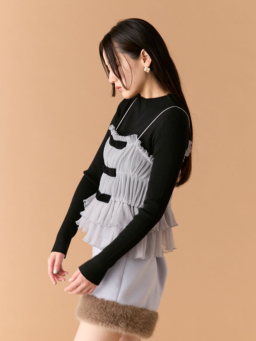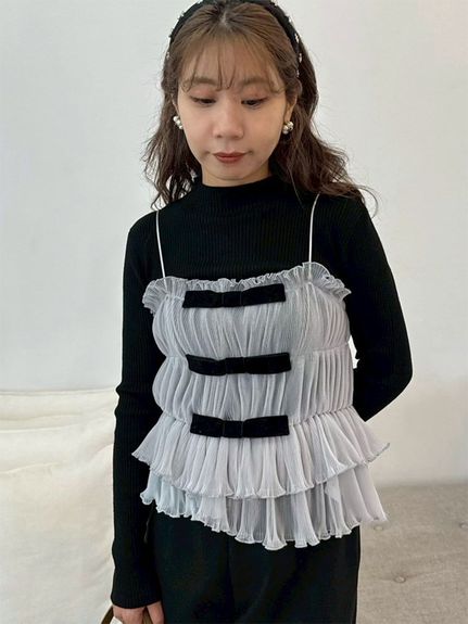 【蝴蝶結點綴背心×針織上衣的優雅層次SET】 【Design/Styling】 前側以天鵝絨蝴蝶結妝點的背心,搭配簡約百搭的針織上衣,組成一套穿搭彈性極高的SET。背心加入彈性收摺設計,更貼合身形、著感輕鬆無負擔;層疊的不規則荷葉下擺營造立體份量與華麗感,單穿即能成為造型亮點。兩件組可一起搭配,也能分開使用,輕鬆因應多種風格需求。 【Fabric】 背心以帶挺度的質材結合彈性收摺,兼具舒適貼合與立體輪廓,天鵝絨蝴蝶結則增添細緻魅力。 針織上衣觸感柔軟、親膚度佳,在季節交替時期也相當好穿。 ※由於光線原因,顏色可能與實際顏色有所不同。 或是裝置顯示器、環境光線等因素,商品與照片的顏色可能會略有不同。商品顏色請依商品單獨拍攝照片為主。 ☆禮盒提袋皆屬單獨販賣項目,故不提供包裝服務。若造成不便,敬請見諒。【點選此處加購禮物盒】☆由於7-11在貨物配送上有材積的限制,若訂購的內容有【符合】下列任一條件:1. 訂購 3 件單品以上2. 訂單包含大衣、毛衣、連身裙等單品建議您使用 宅配 寄送,以避免購買商品無法如預期出貨。