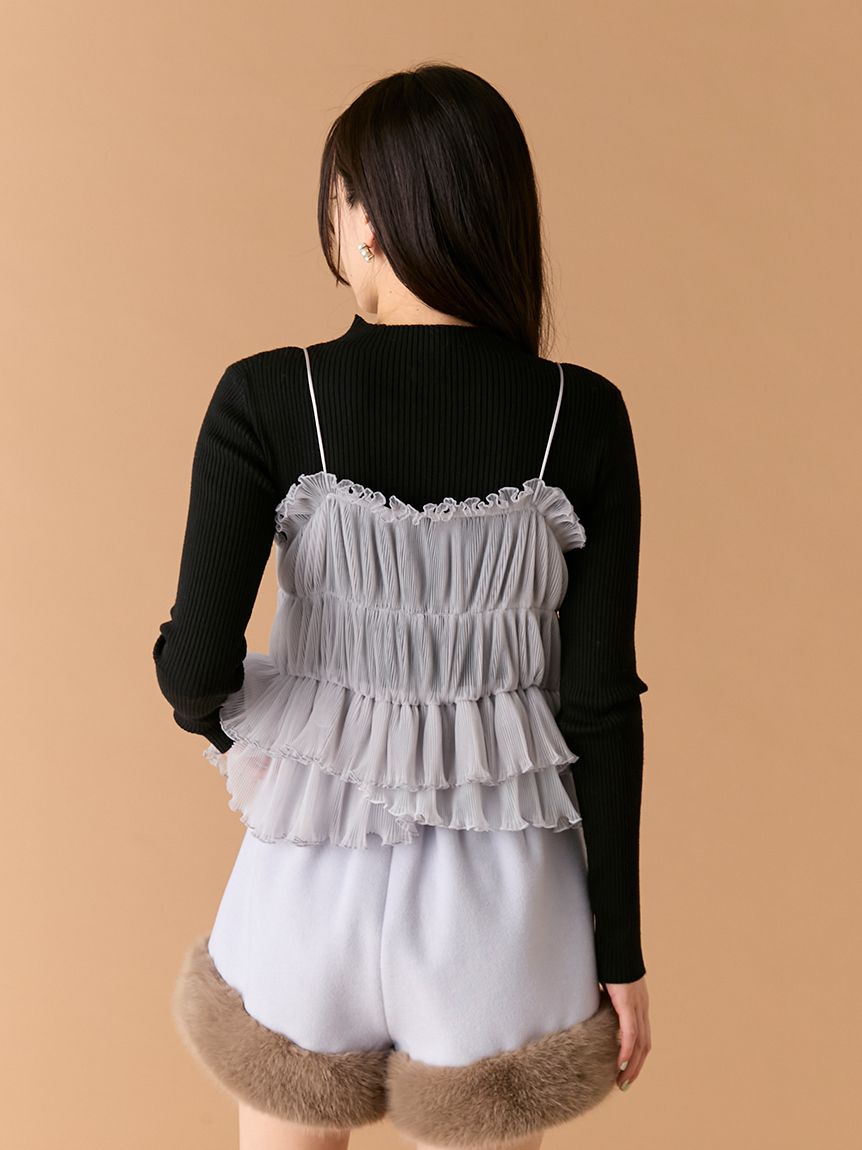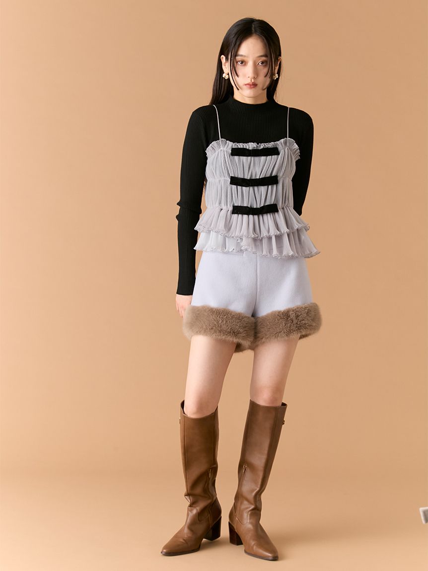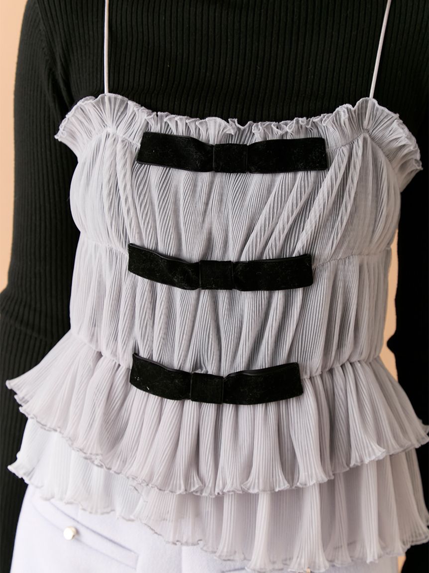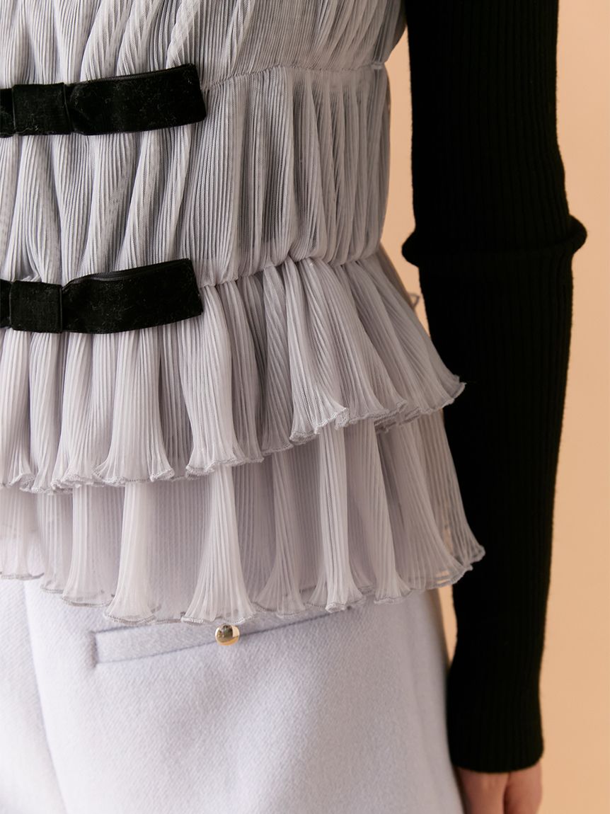 【蝴蝶結點綴背心×針織上衣的優雅層次SET】 【Design/Styling】 前側以天鵝絨蝴蝶結妝點的背心,搭配簡約百搭的針織上衣,組成一套穿搭彈性極高的SET。背心加入彈性收摺設計,更貼合身形、著感輕鬆無負擔;層疊的不規則荷葉下擺營造立體份量與華麗感,單穿即能成為造型亮點。兩件組可一起搭配,也能分開使用,輕鬆因應多種風格需求。 【Fabric】 背心以帶挺度的質材結合彈性收摺,兼具舒適貼合與立體輪廓,天鵝絨蝴蝶結則增添細緻魅力。 針織上衣觸感柔軟、親膚度佳,在季節交替時期也相當好穿。 ※由於光線原因,顏色可能與實際顏色有所不同。 或是裝置顯示器、環境光線等因素,商品與照片的顏色可能會略有不同。商品顏色請依商品單獨拍攝照片為主。 ☆禮盒提袋皆屬單獨販賣項目,故不提供包裝服務。若造成不便,敬請見諒。【點選此處加購禮物盒】☆由於7-11在貨物配送上有材積的限制,若訂購的內容有【符合】下列任一條件:1. 訂購 3 件單品以上2. 訂單包含大衣、毛衣、連身裙等單品建議您使用 宅配 寄送,以避免購買商品無法如預期出貨。