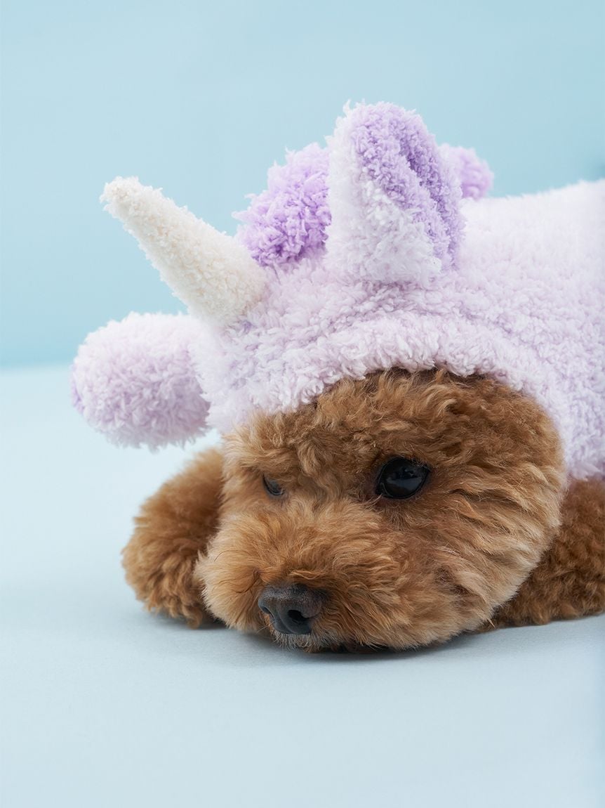 ※請購買前仔細考慮!寵物衣服、玩具、床墊、餐具等屬於接觸性商品,為避免接觸性傳染疾病,經拆封、試穿、使用或因個人原因造成汙損、異味、配件短缺的商品,恕無法受理退換貨。 【與生肖呼應的夢幻獨角獸斗篷】 【Design/Styling】 以 2026 年生肖「馬年」為靈感, 打造拍照也超上鏡的獨角獸針織斗篷。 採用毛感豐厚的 GELATO 材質, 背部以提花技術呈現獨角獸圖樣,夢幻又可愛。 帽兜設計附有獨角獸的耳朵、角與鬃毛, 連尾部也附有立體小尾巴。 臉部周圍可透過抽繩調整,避免帽兜滑落,同時可控制寵物露臉的範圍。 顏色提供柔和 薰衣草色LAV, 不僅限於新年期間,也適合日常穿搭。 可與同系列 獨角獸玩具PAGG255592搭配,作為禮物更具心意。 【Fabric】 GELATO--- 品牌招牌的蓬鬆柔軟材質,彷彿鬆軟烤好的蛋糕海綿般,一旦觸感體驗過就難以忘懷的柔軟感。 ※由於光線原因,顏色可能與實際顏色有所不同。 或是裝置顯示器、環境光線等因素,商品與照片的顏色可能會略有不同。商品顏色請依商品單獨拍攝照片為主。 ☆禮盒提袋皆屬單獨販賣項目,故不提供包裝服務。若造成不便,敬請見諒。【點選此處加購禮物盒】☆由於7-11在貨物配送上有材積的限制,若訂購的內容有【符合】下列任一條件:1. 訂購 3 件單品以上2. 訂單包含大衣、毛衣、連身裙等單品建議您使用 宅配 寄送,以避免購買商品無法如預期出貨。