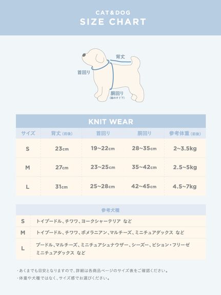 ※請購買前仔細考慮!寵物衣服、玩具、床墊、餐具等屬於接觸性商品,為避免接觸性傳染疾病,經拆封、試穿、使用或因個人原因造成汙損、異味、配件短缺的商品,恕無法受理退換貨。 【蛋白霜狗狗圖樣-瑪爾濟斯犬針織上衣】 【Design/Styling】 曾於過往系列中廣受好評的蛋白霜狗狗圖樣,本季以蓬鬆柔軟的針織素材再度登場,推出冬季限定的狗狗針織上衣。 可與主人款單品相互呼應,享受成套穿搭的樂趣。 以瑪爾濟斯犬為靈感,將蛋白霜餅乾造型的狗狗以緹花織紋細緻呈現,是 USAGI ONLINE 限定的特別設計。 特別推薦讓瑪爾濟斯犬穿著的一款單品,整體氛圍更加契合。 此外,系列中亦備有約克夏犬圖樣的狗狗服飾可供選擇。 ※由於光線原因,顏色可能與實際顏色有所不同。 或是裝置顯示器、環境光線等因素,商品與照片的顏色可能會略有不同。商品顏色請依商品單獨拍攝照片為主。 ☆禮盒提袋皆屬單獨販賣項目,故不提供包裝服務。若造成不便,敬請見諒。【點選此處加購禮物盒】☆由於7-11在貨物配送上有材積的限制,若訂購的內容有【符合】下列任一條件:1. 訂購 3 件單品以上2. 訂單包含大衣、毛衣、連身裙等單品建議您使用 宅配 寄送,以避免購買商品無法如預期出貨。