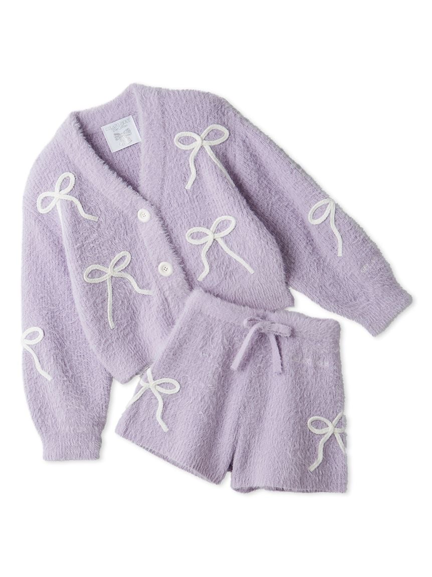 【JUNIOR】柔軟羽毛針織蝴蝶結開襟衫&短褲 SET PJNT254194