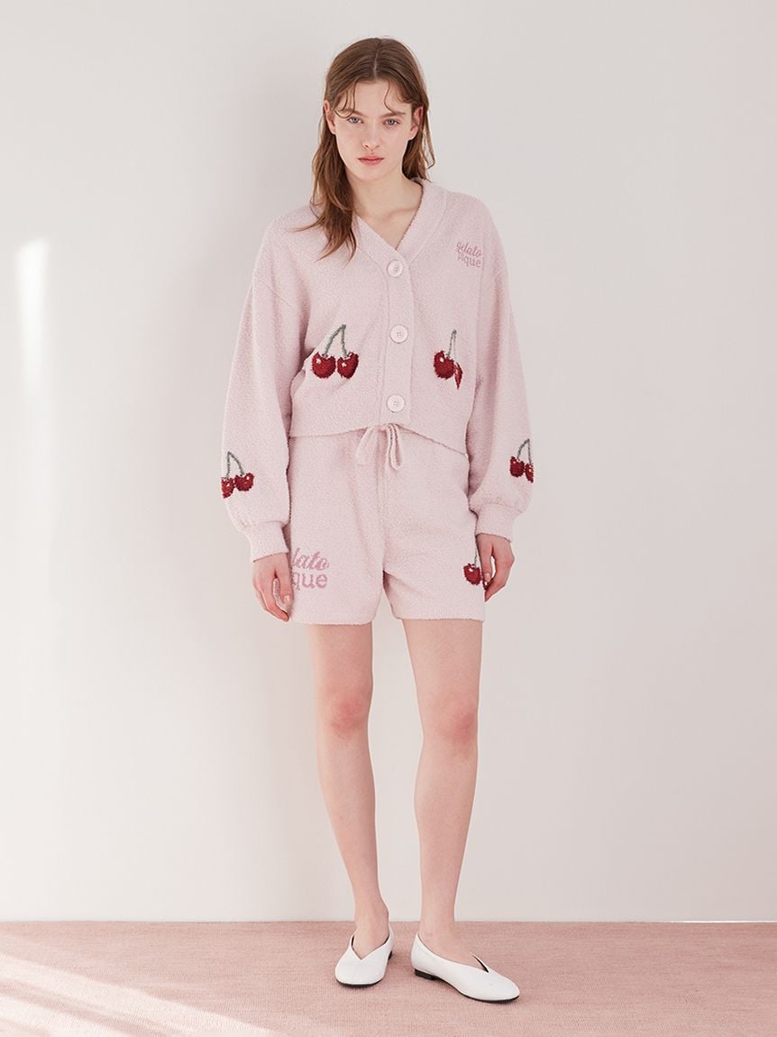 將人氣櫻桃圖樣融入柔軟的「寶寶絨」素材中,打造充滿可愛氛圍的緹花針織系列。