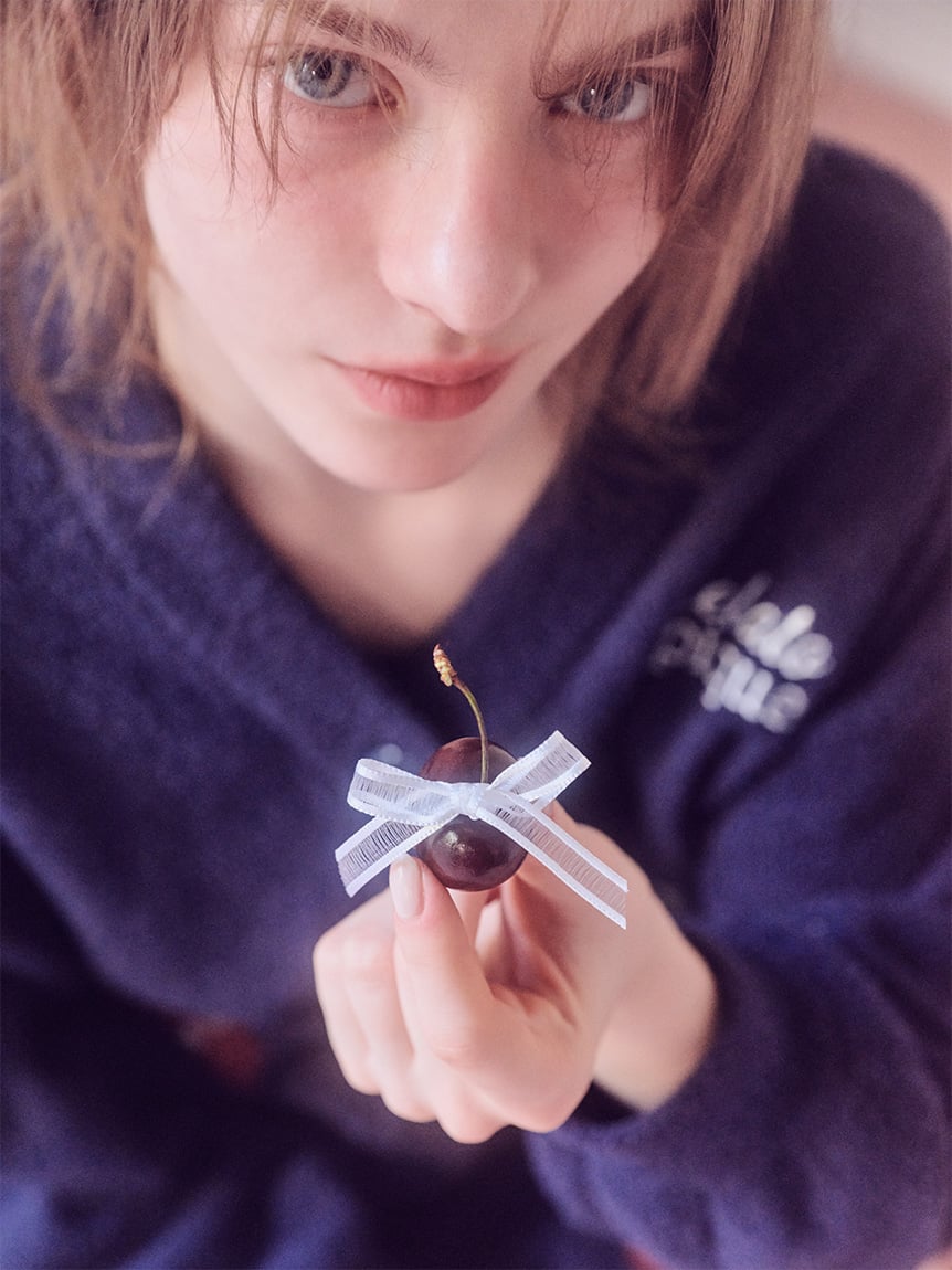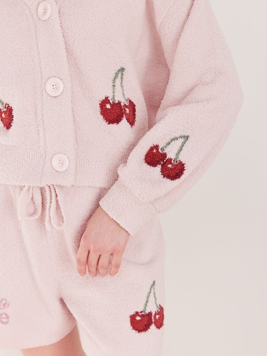 將人氣櫻桃圖樣融入柔軟的「寶寶絨」素材中,打造充滿可愛氛圍的緹花針織系列。