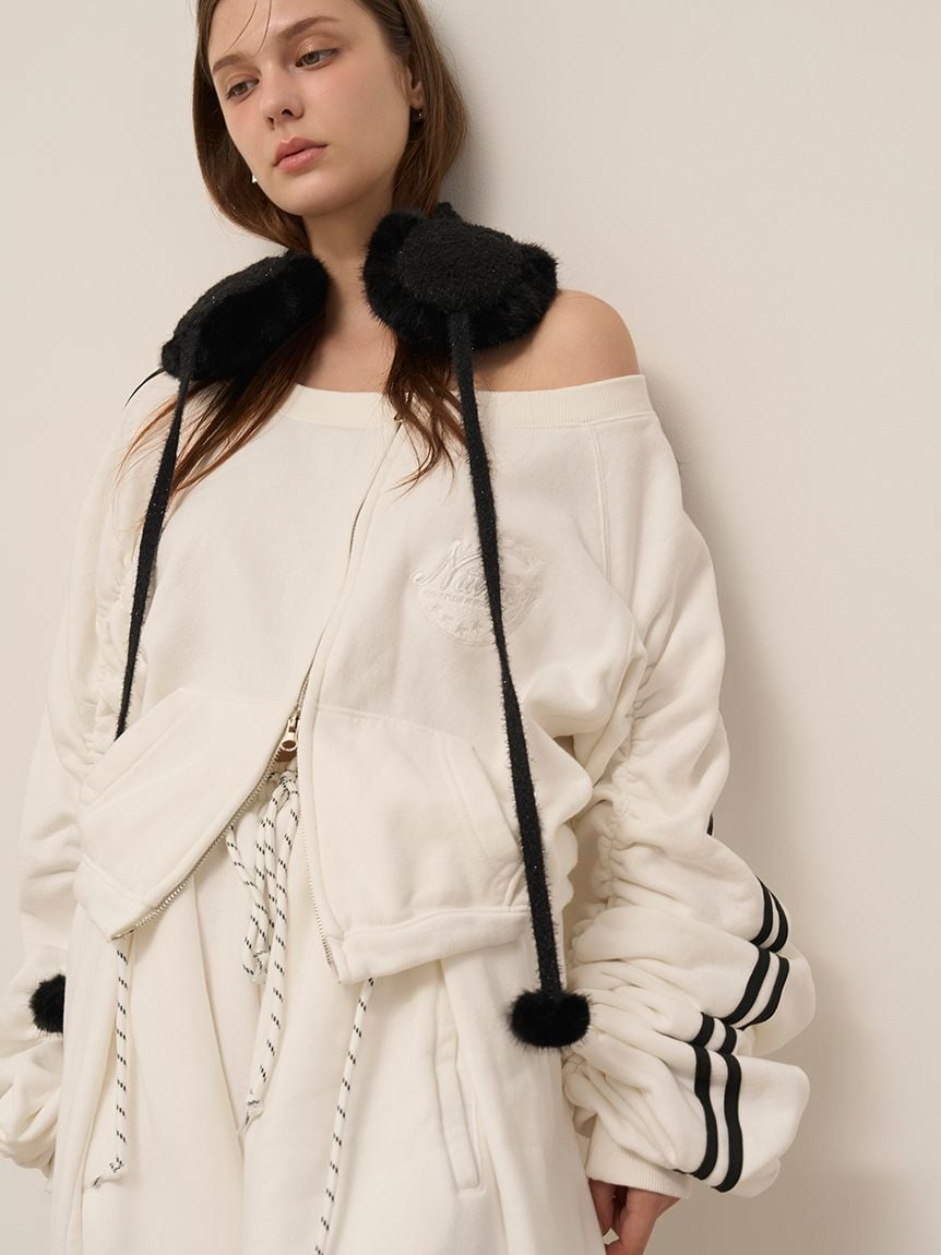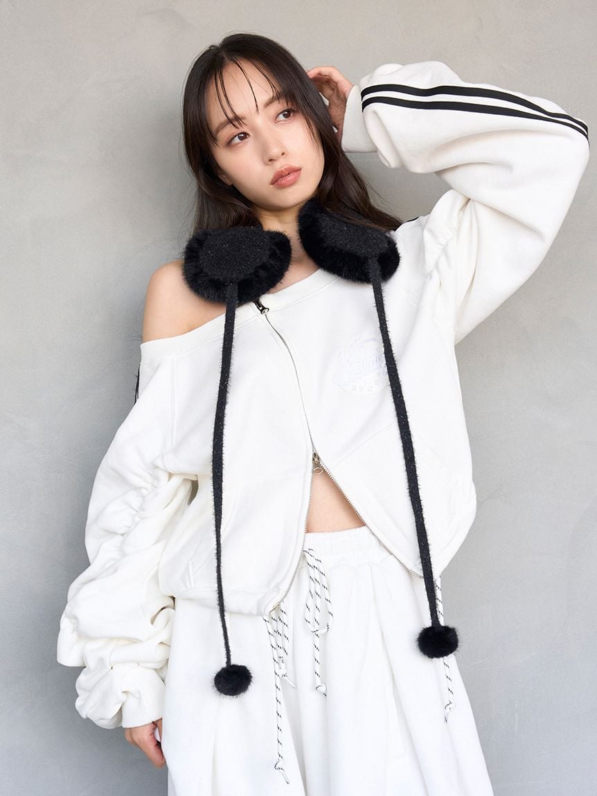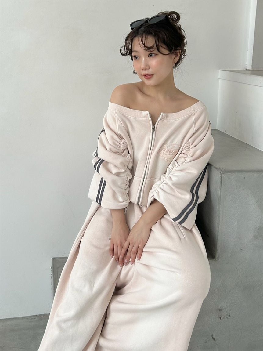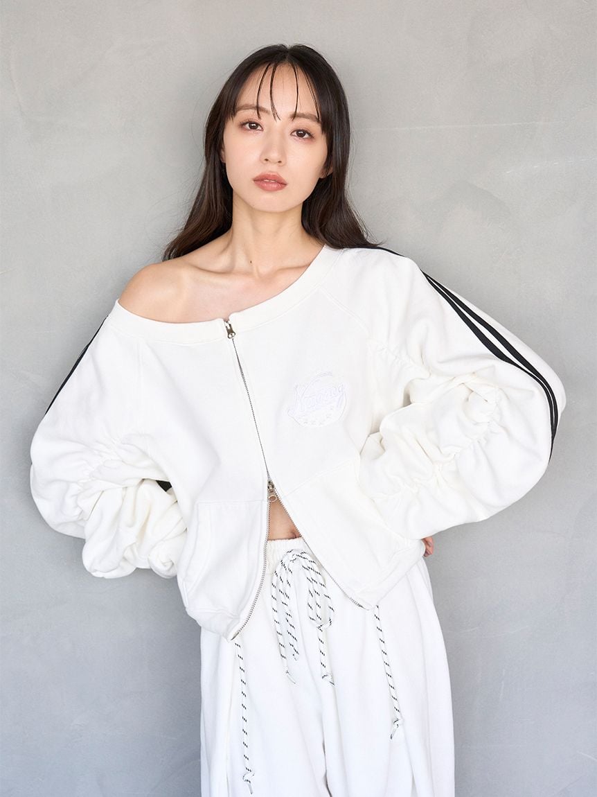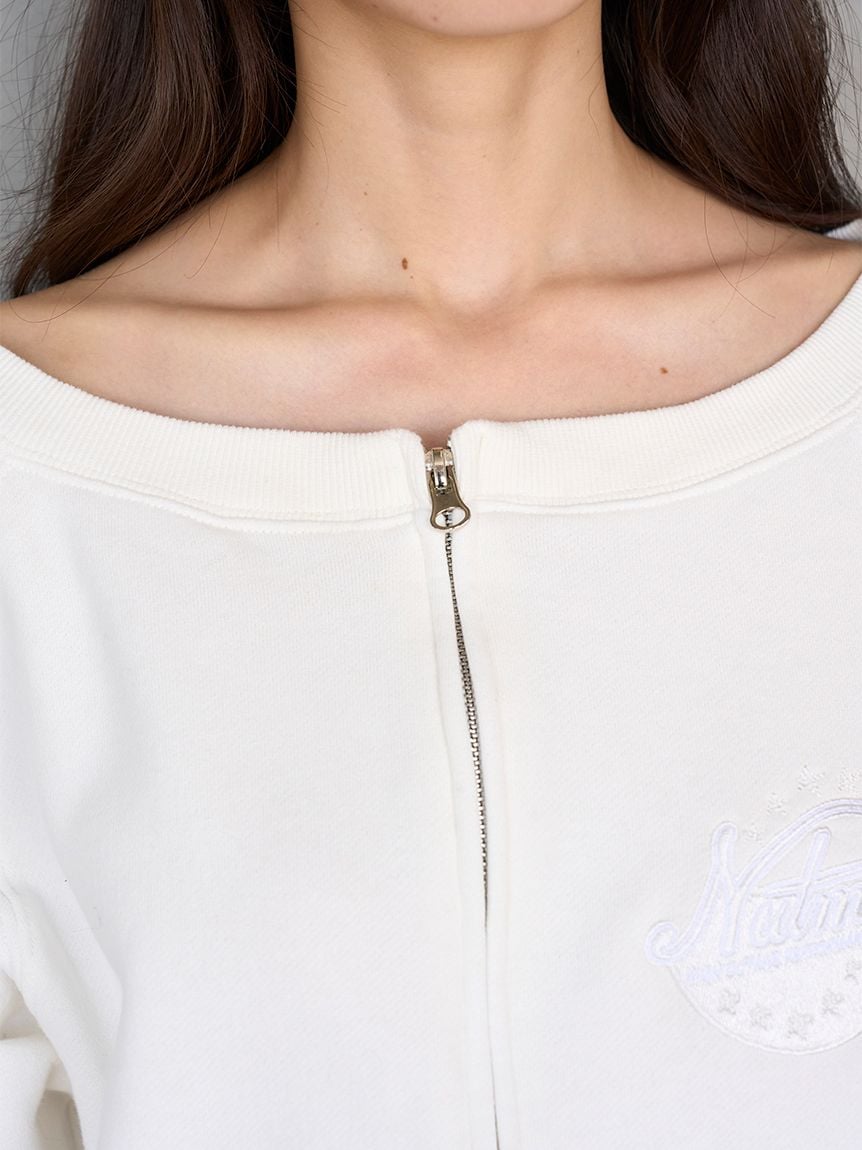 ITEM:【SNIDEL/NUTMEG】露肩拉鍊LOGO休閒上衣 SWCT255140