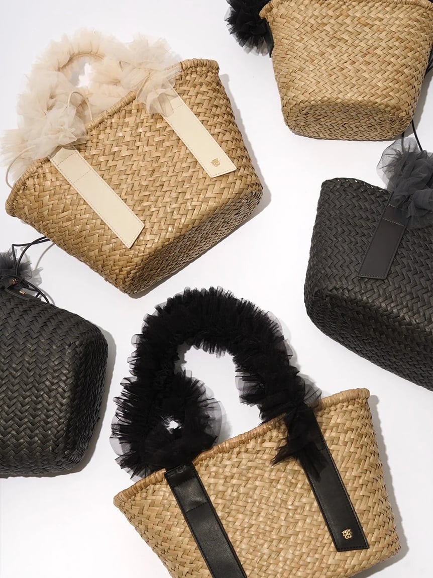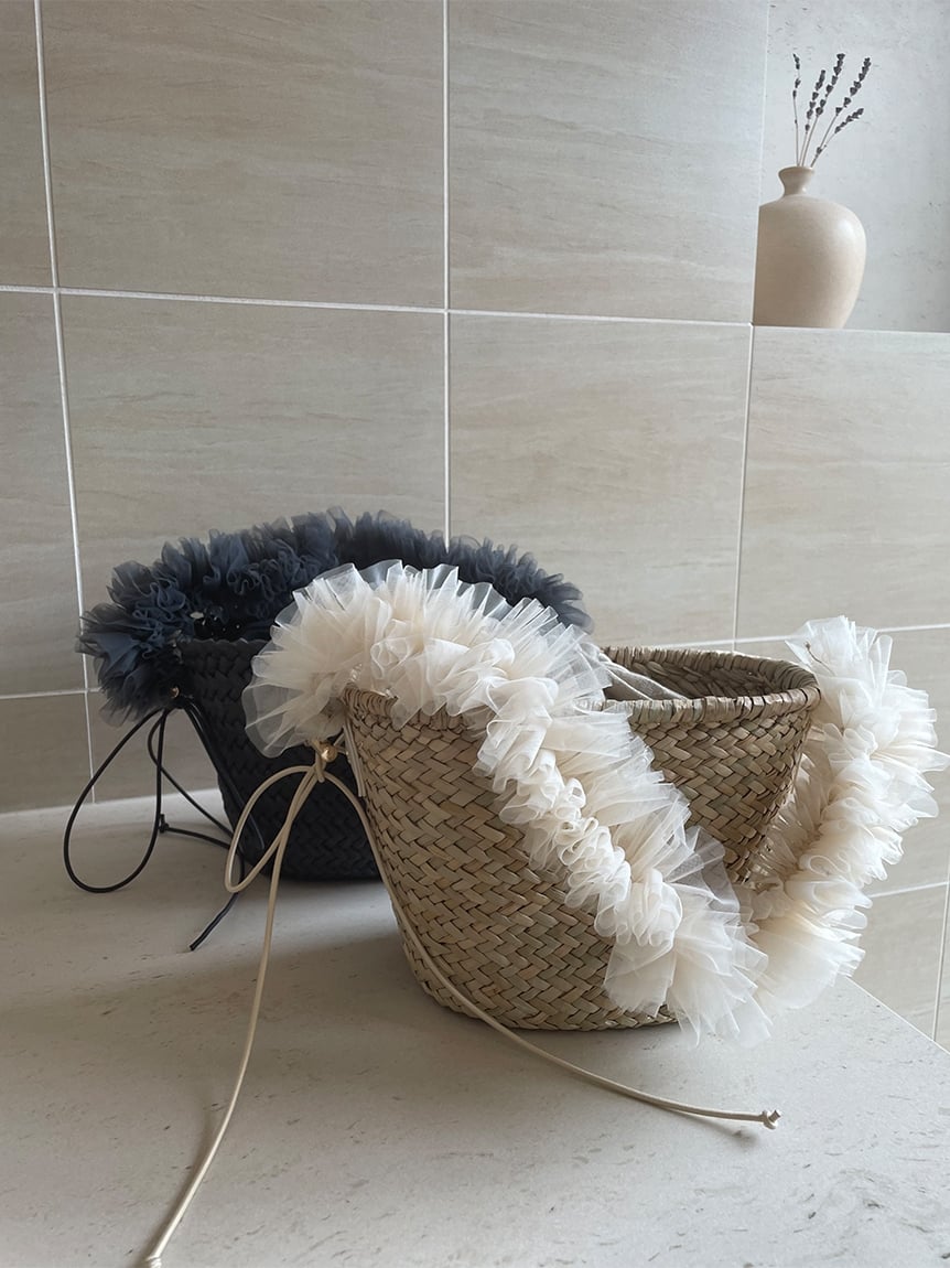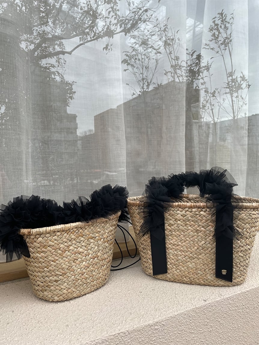 網紗單提把草編提籃包 SWGB242603