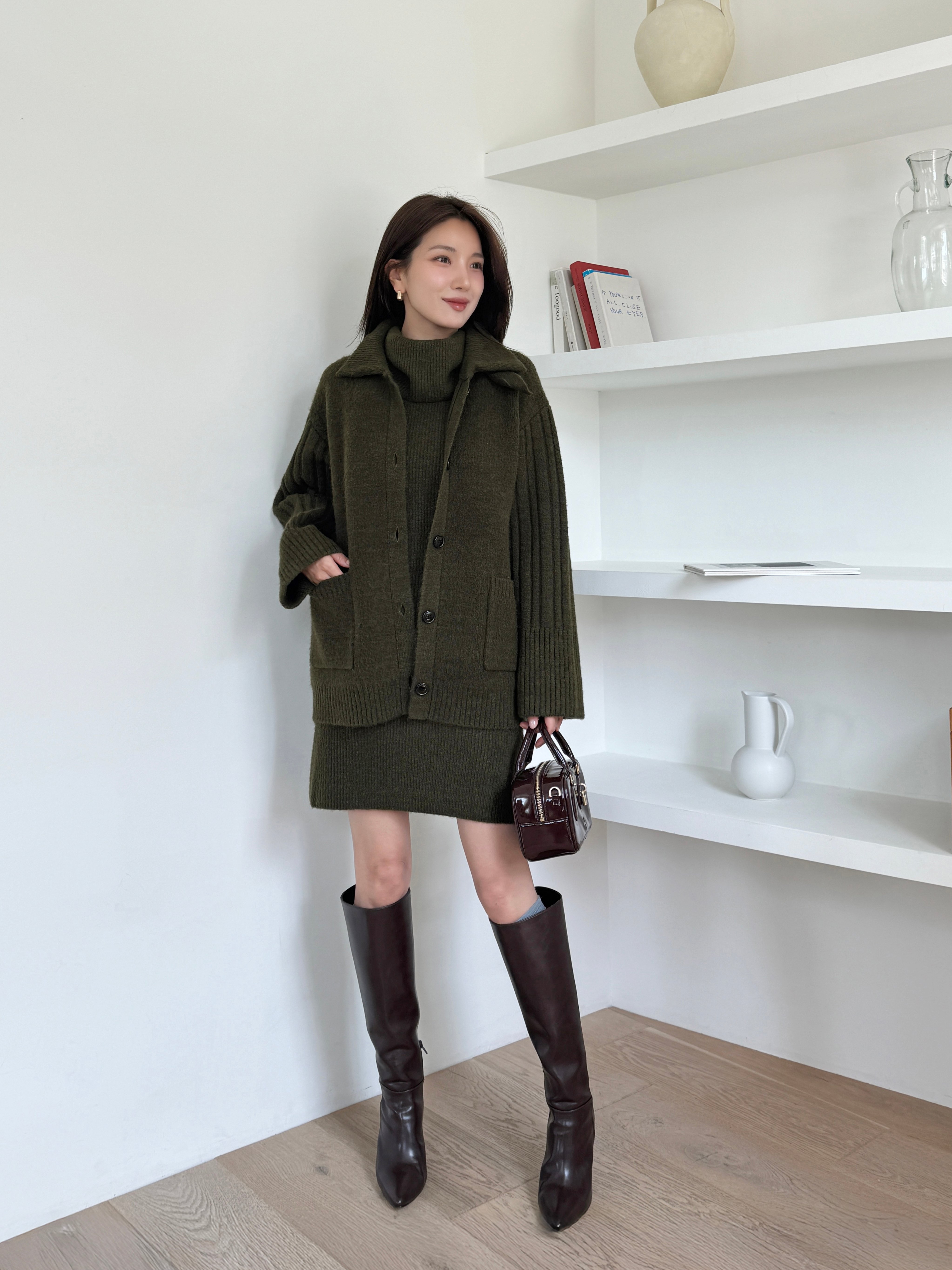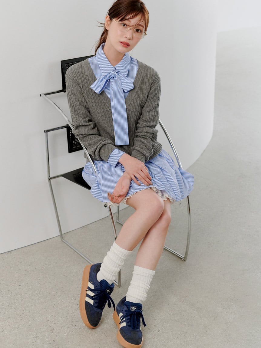V領針織&蝴蝶結襯衫連身裙SET SWNT254231