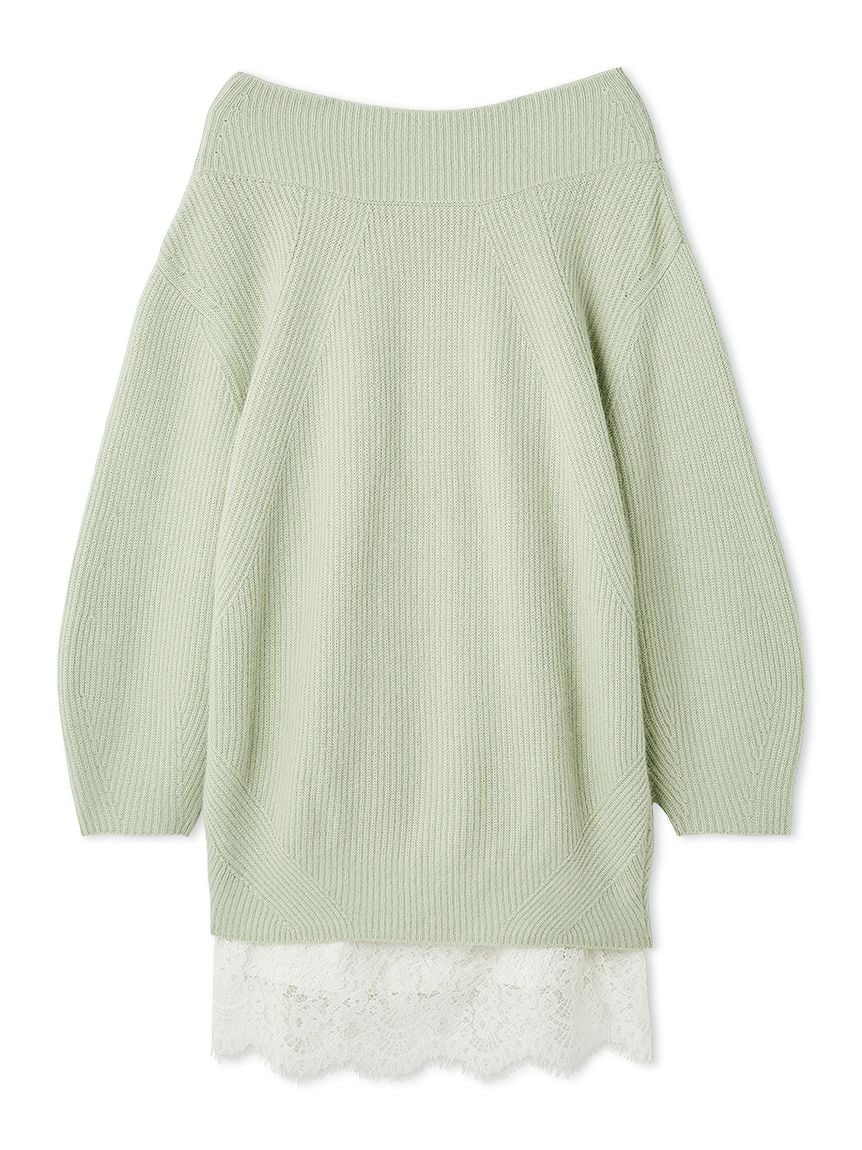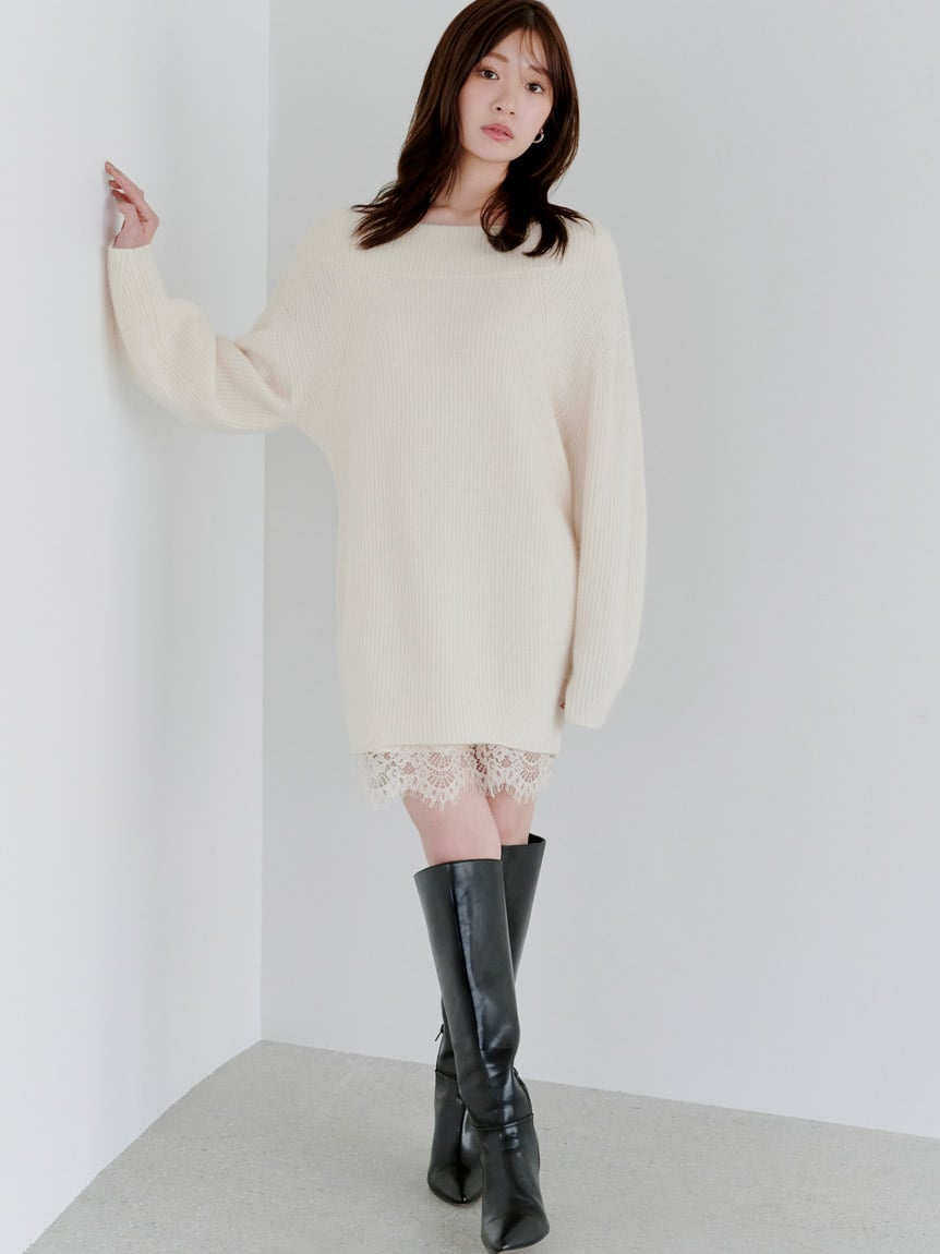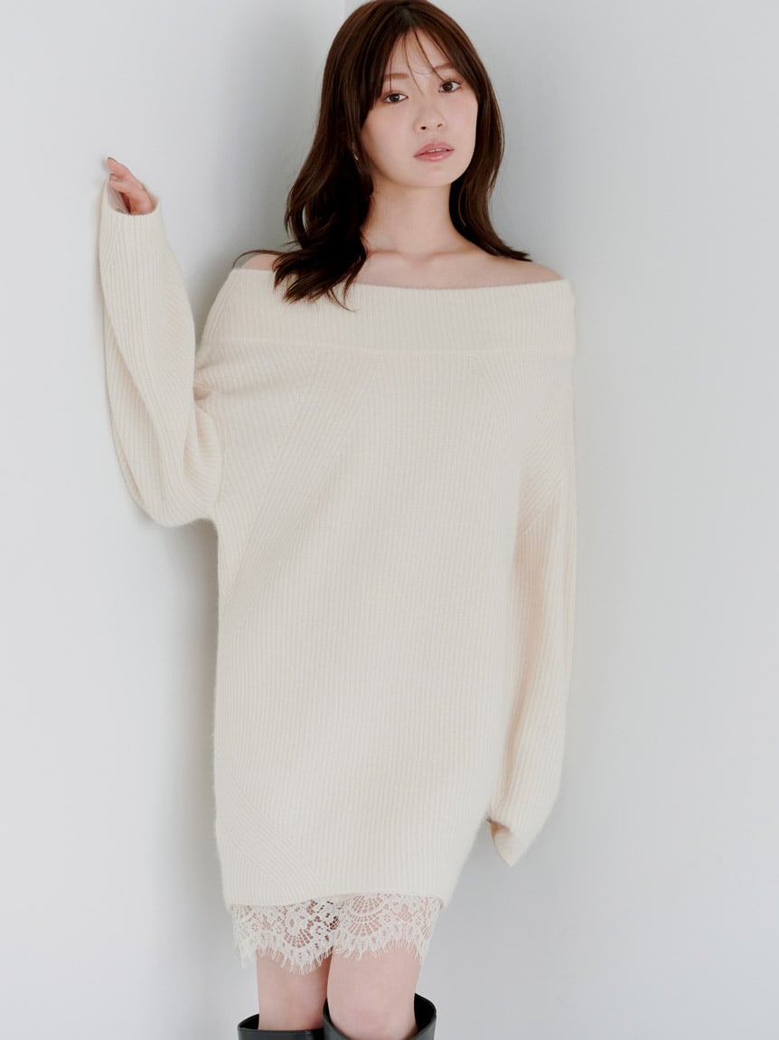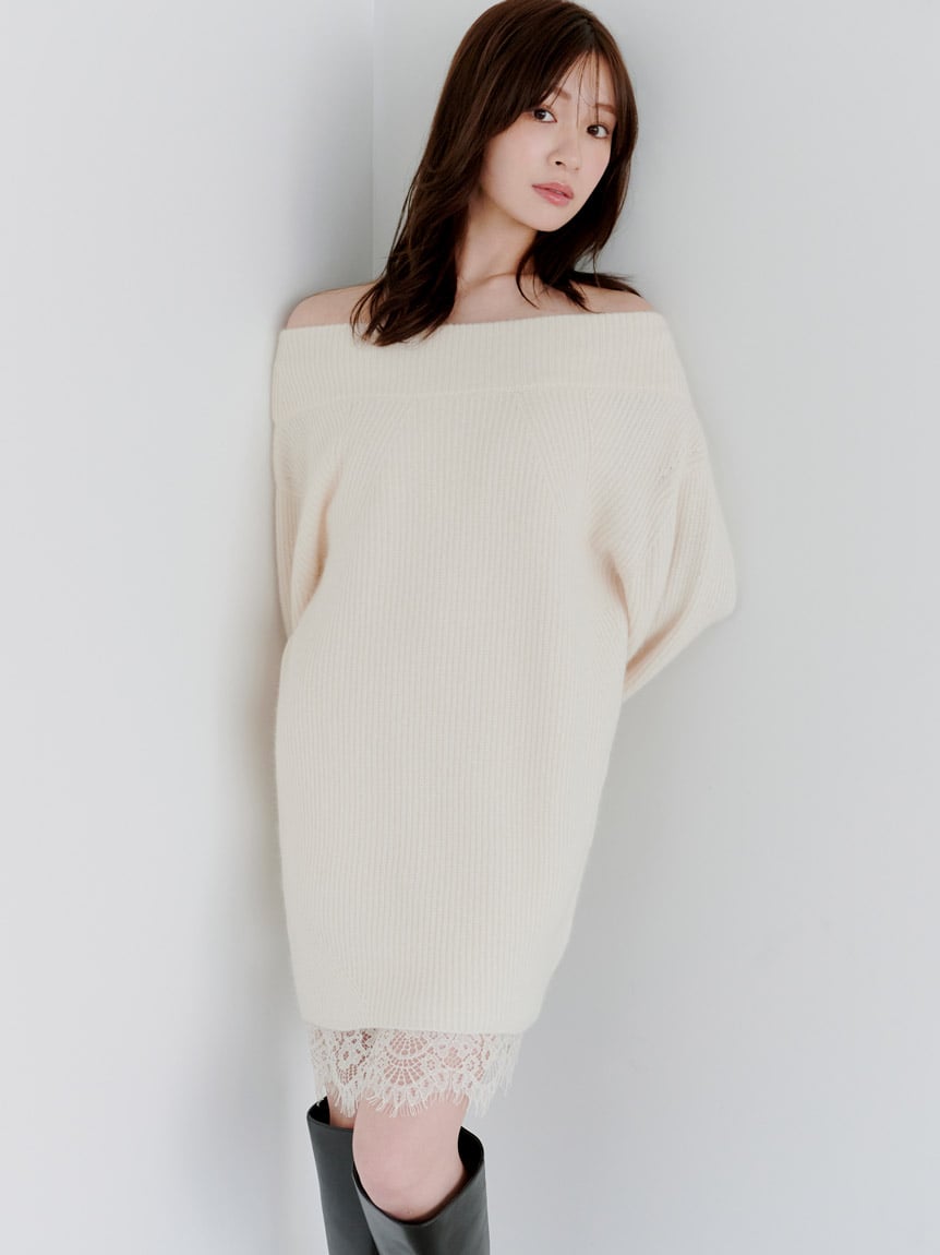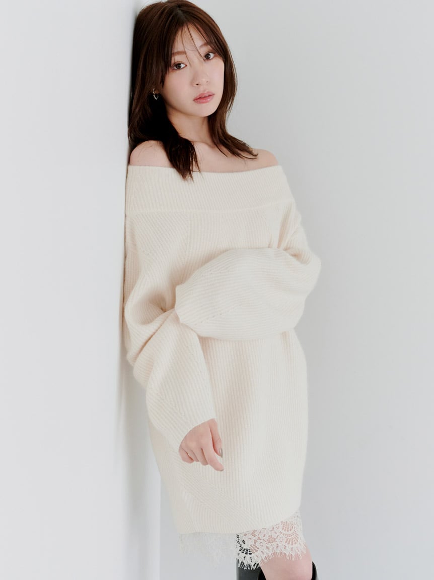 ITEM:針織露肩連身裙&蕾絲內搭 SET SWNO254191