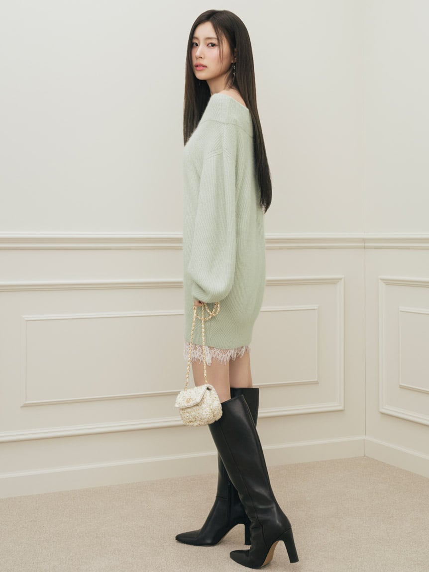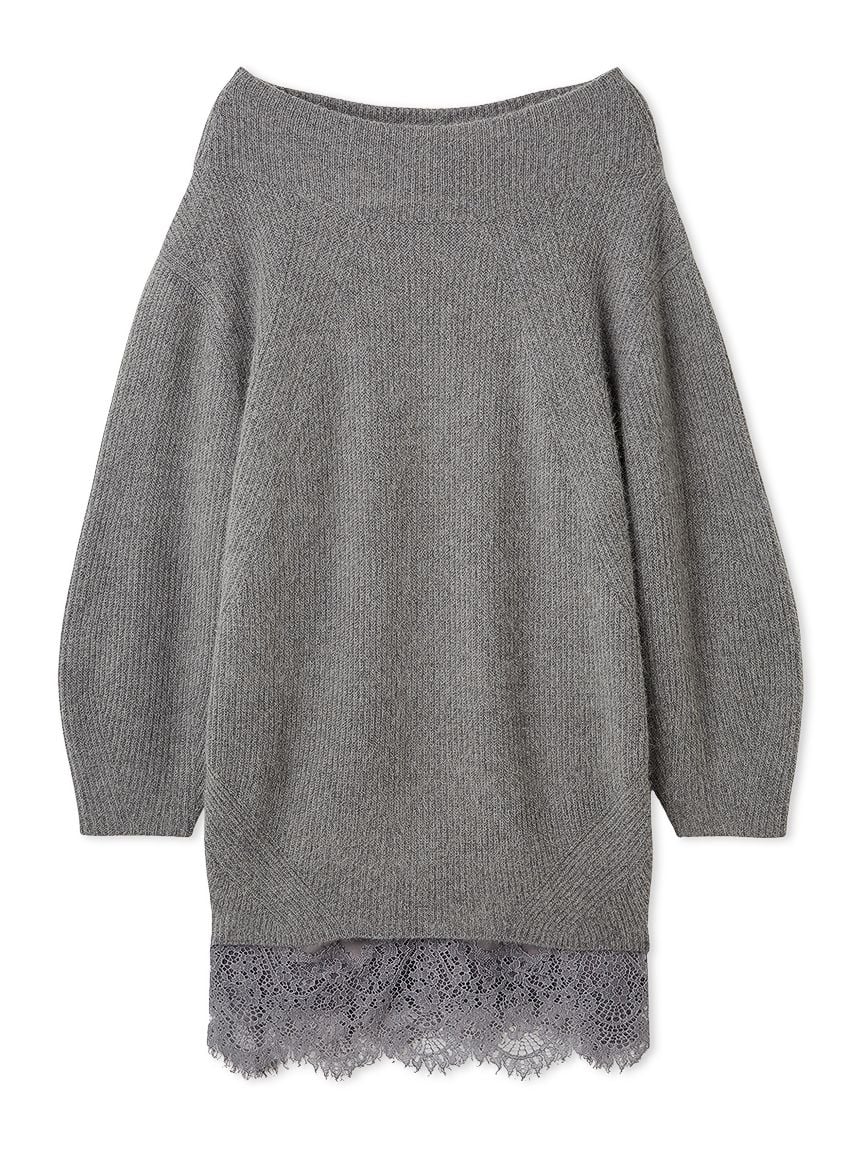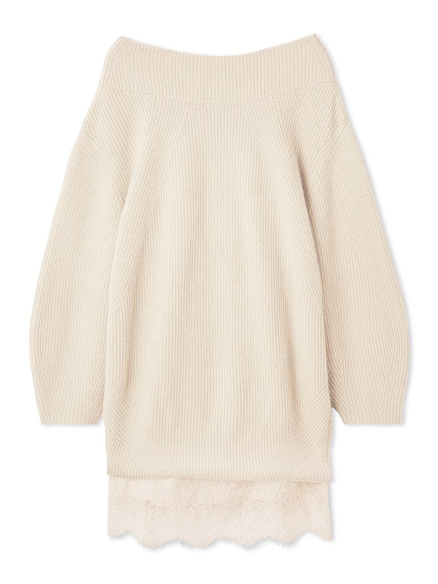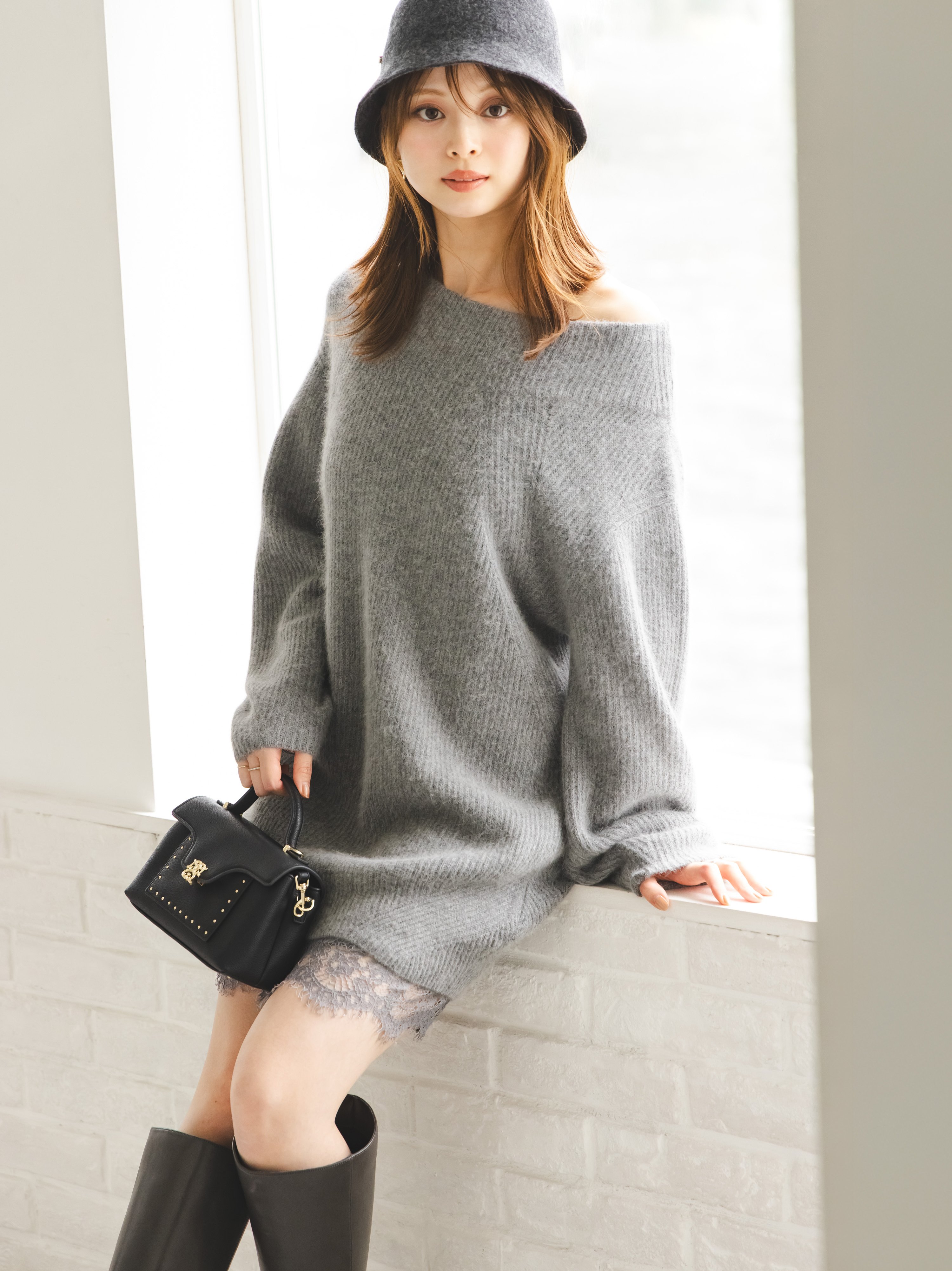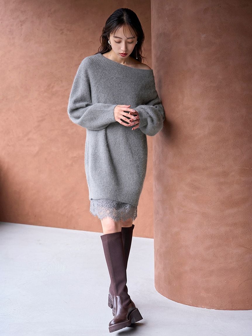 ITEM:針織露肩連身裙&蕾絲內搭 SET SWNO254191