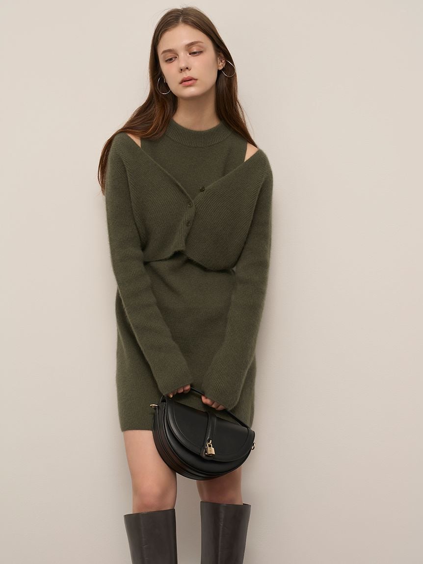 狐狸毛混羊毛針織連身裙(附繞脖綁帶) FWNO255010