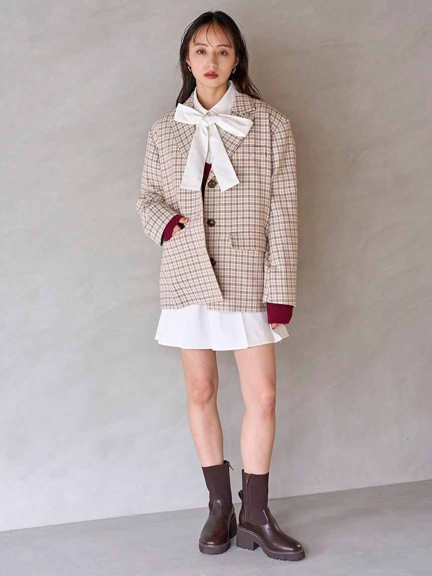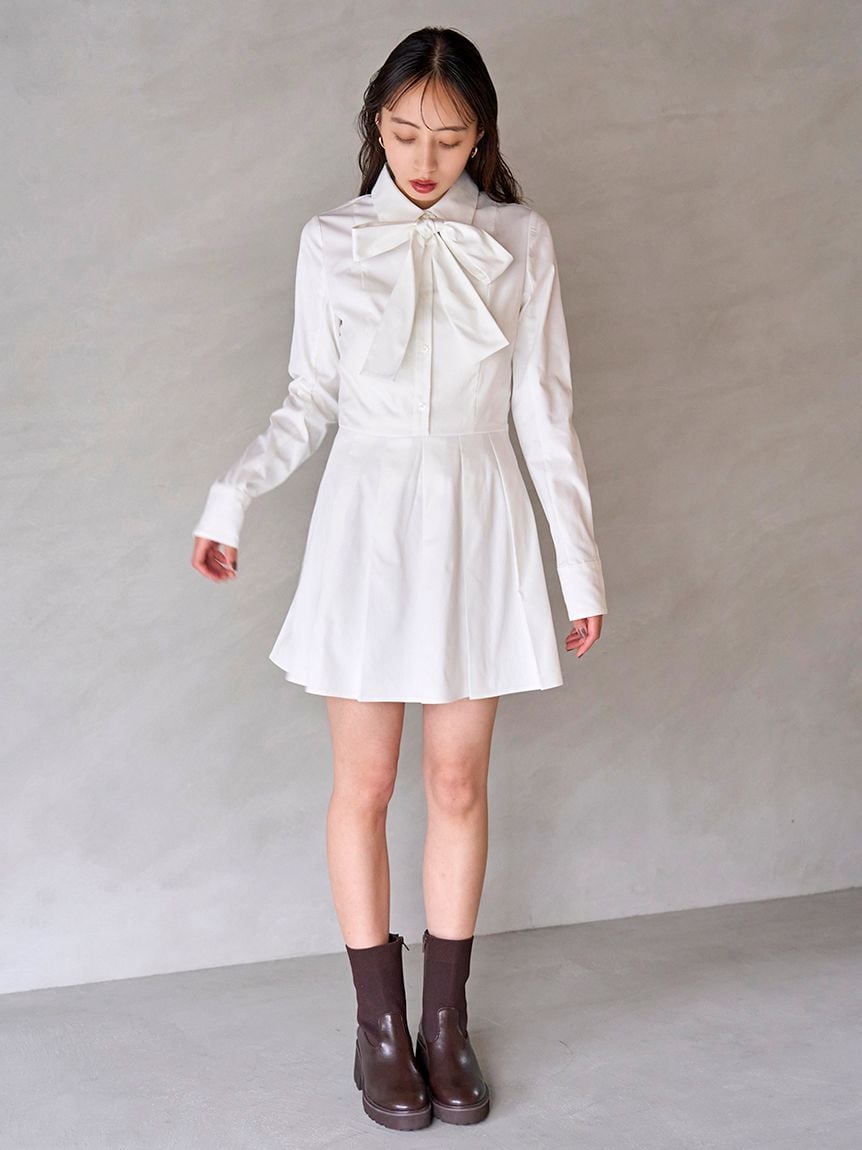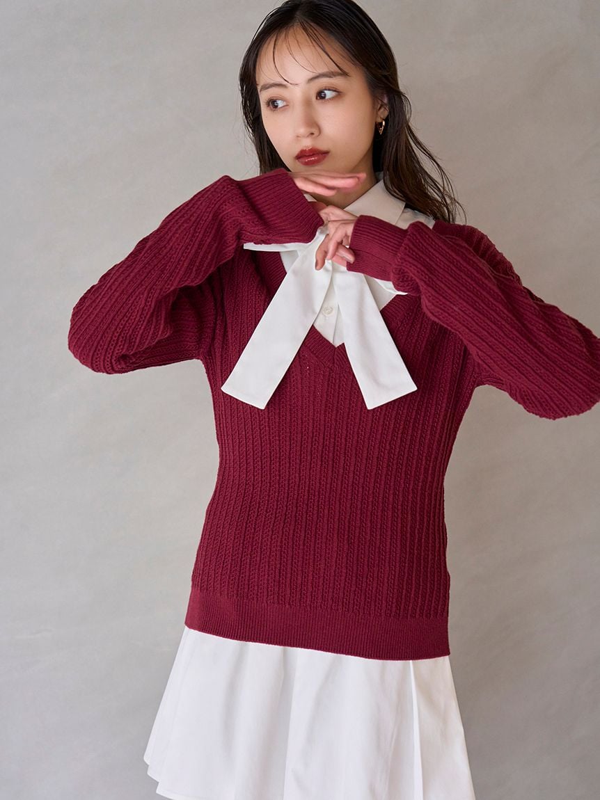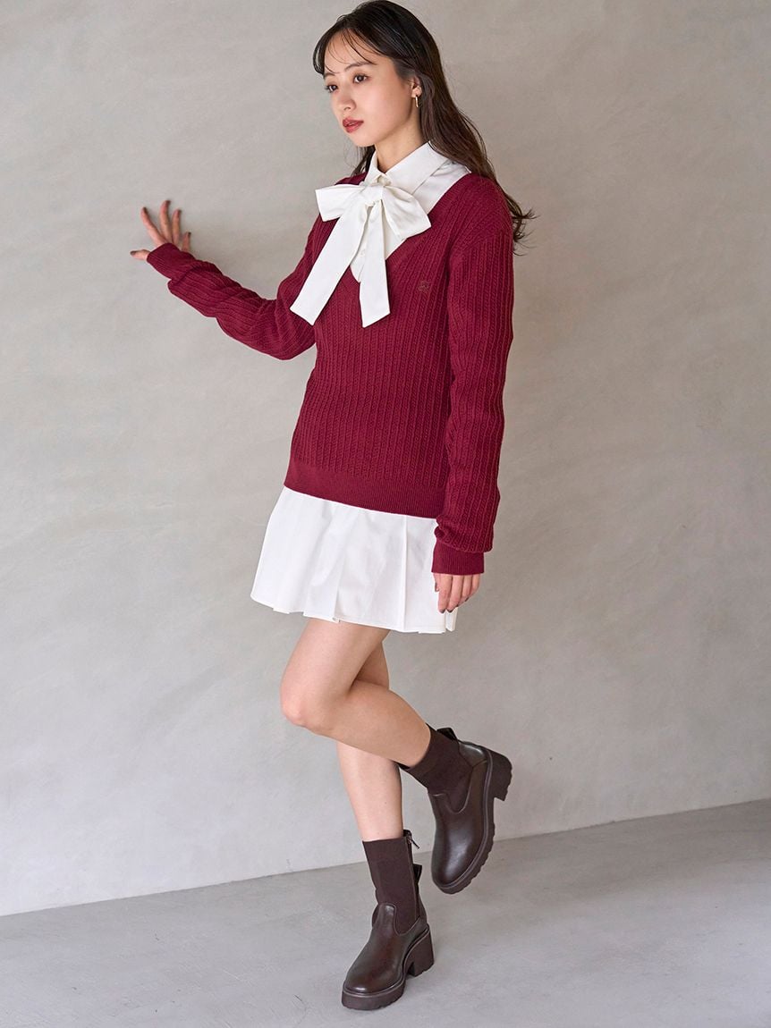 ITEM:V領針織&蝴蝶結襯衫連身裙SET SWNT254231