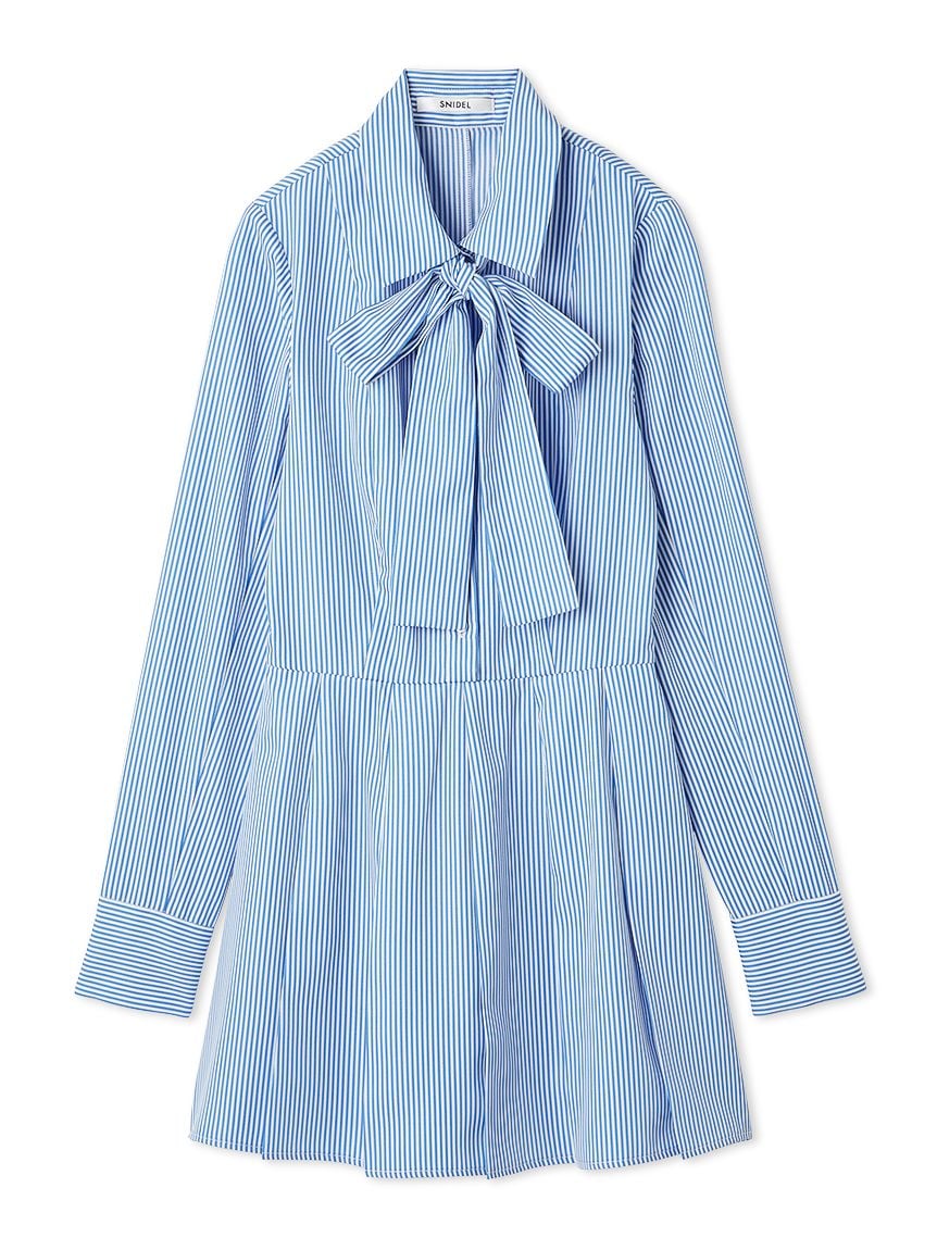 【蝴蝶結襯衫迷你洋裝×蕾絲針織上衣SET,打造俏麗學院風造型】 【Design/Styling】 襯衫迷你洋裝以華麗領口蝴蝶結設計吸睛亮眼,下擺裙襬加入優雅摺紋,展現女性柔美氣息。搭配長版低針距寬鬆刺繡針織上衣,上衣胸前大V領營造輕盈感,並以刺繡圖案增添層次感,胸前還點綴SNIDEL品牌刺繡,增添細節。 兩件皆可單品穿搭,亦可套上SET組合,輕鬆完成時下流行的俏麗學院風。洋裝剪裁修身,即便疊穿針織上衣也不顯累贅。可搭配緊身褲,打造多種混搭造型。 【Fabric】針織上衣具伸縮性,穿著舒適自在。 灰色、海軍藍兩色: 灰色:針織上衣為淺灰,洋裝為藍色條紋 海軍藍:針織上衣為海軍藍,洋裝為淺灰純色 ※由於光線原因,顏色可能與實際顏色有所不同。 或是裝置顯示器、環境光線等因素,商品與照片的顏色可能會略有不同。商品顏色請依商品單獨拍攝照片為主。 ☆禮盒提袋皆屬單獨販賣項目,故不提供包裝服務。若造成不便,敬請見諒。【點選此處加購禮物盒】☆由於7-11在貨物配送上有材積的限制,若訂購的內容有【符合】下列任一條件:1. 訂購 3 件單品以上2. 訂單包含大衣、毛衣、連身裙等單品建議您使用 宅配 寄送,以避免購買商品無法如預期出貨。