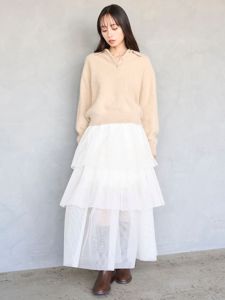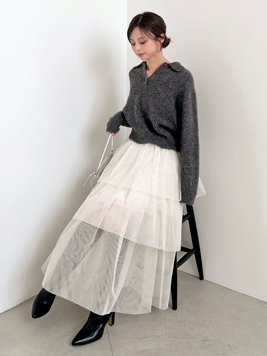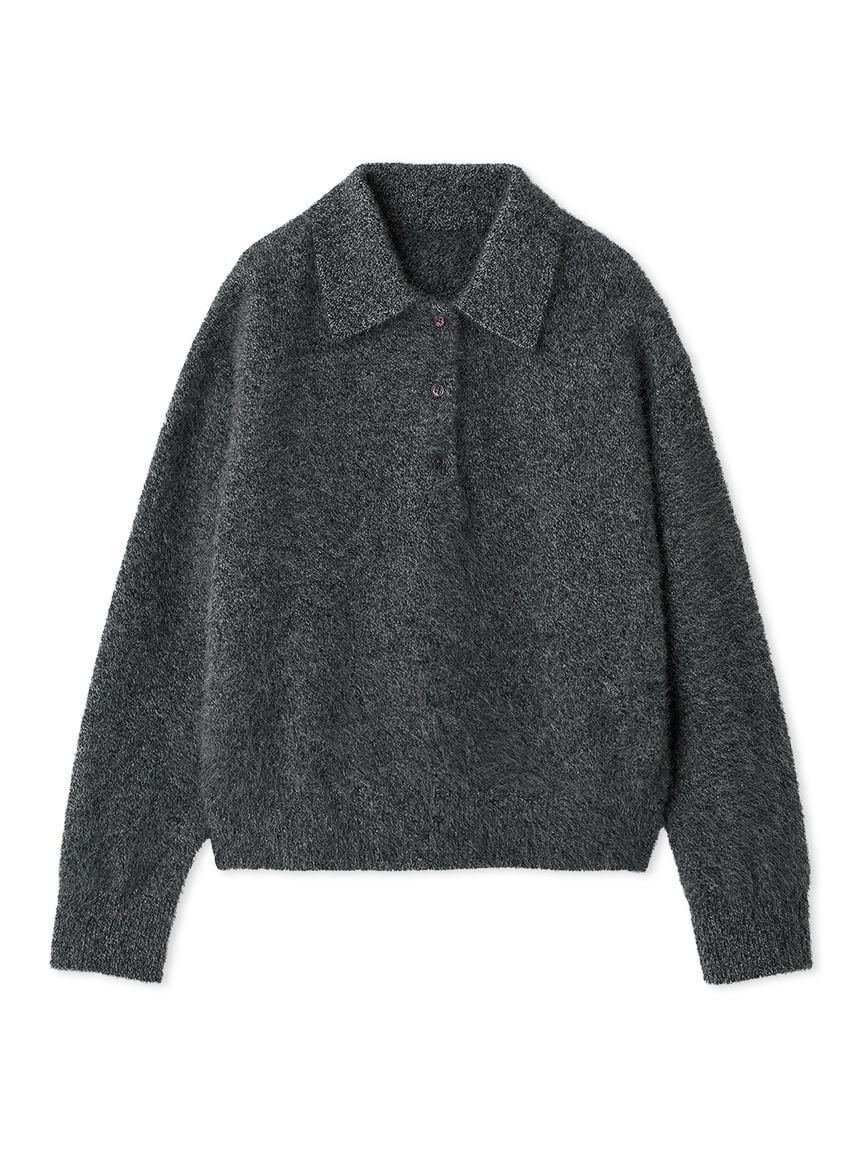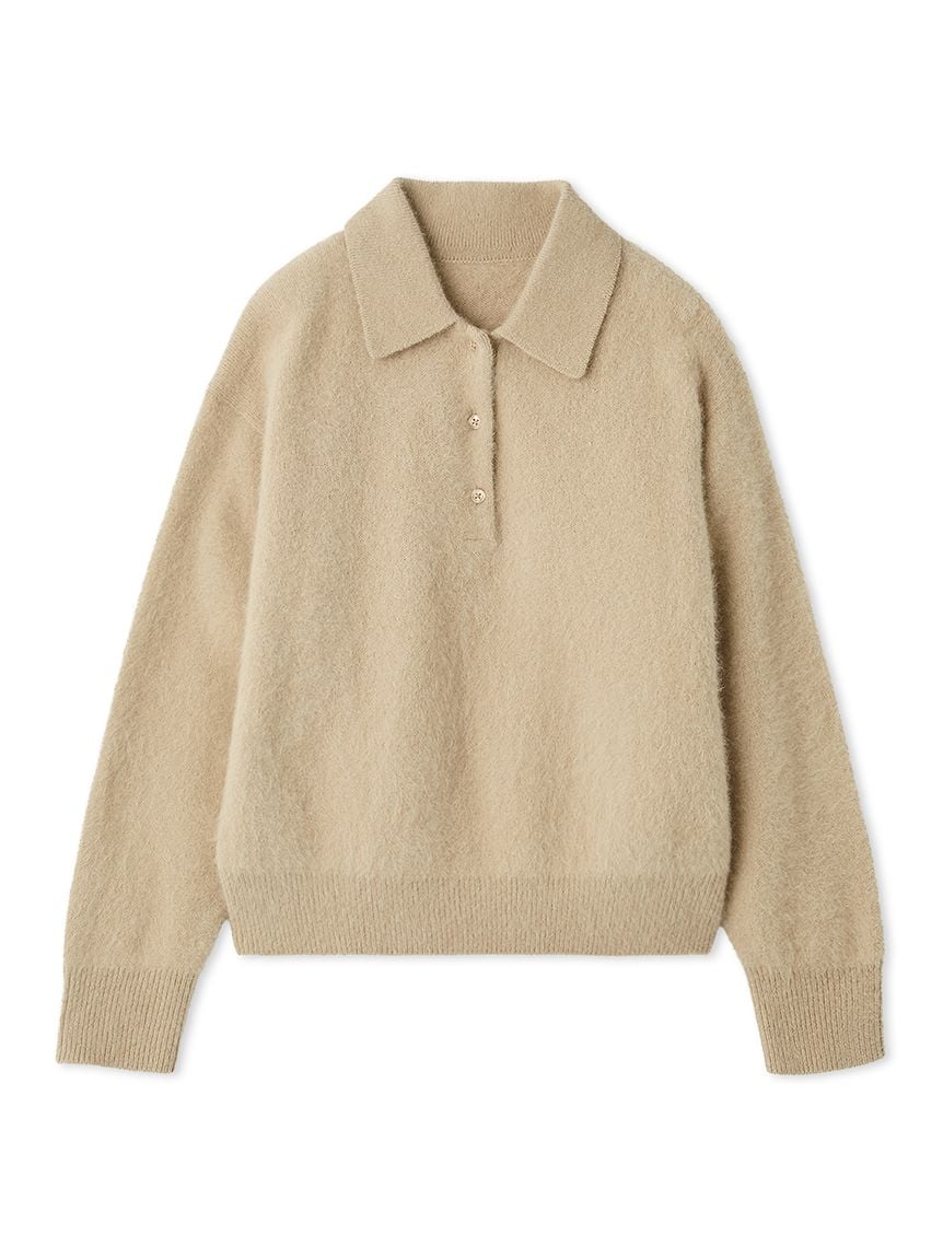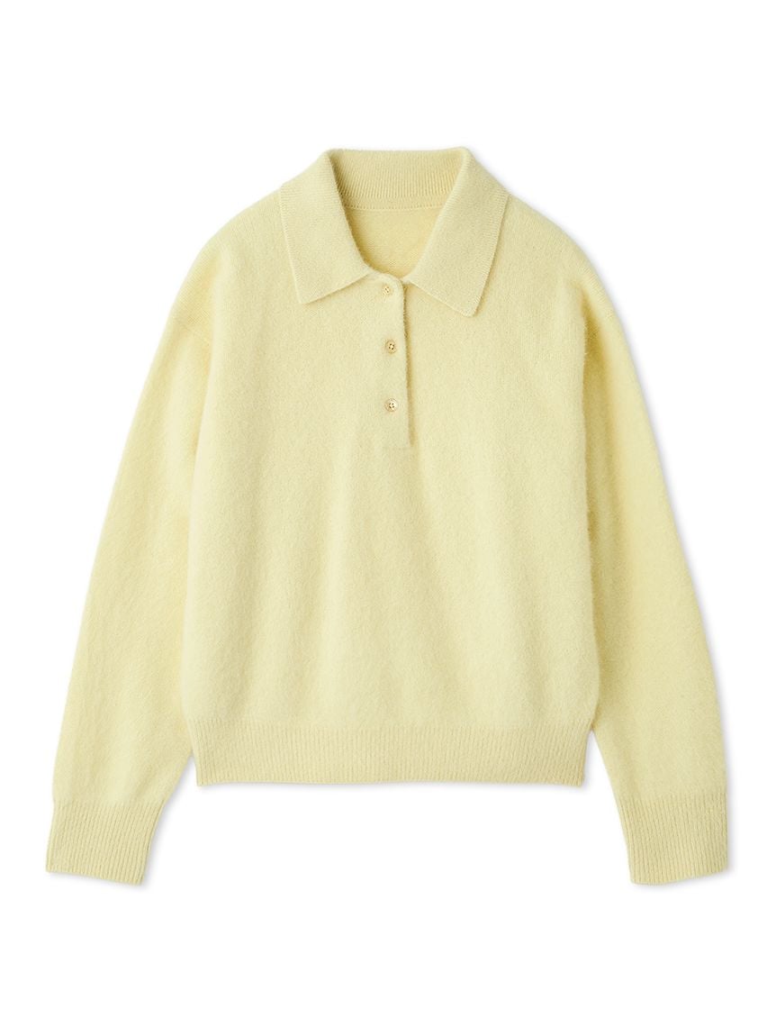 ITEM:【HIGH QUALITY】狐狸毛混羊絨針織POLO上衣 SWNT255019
