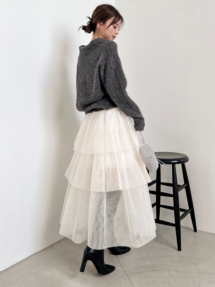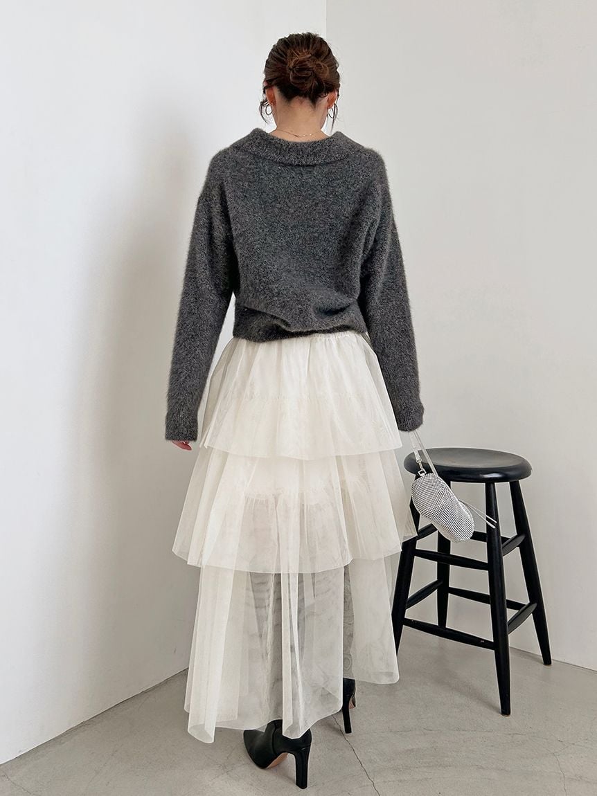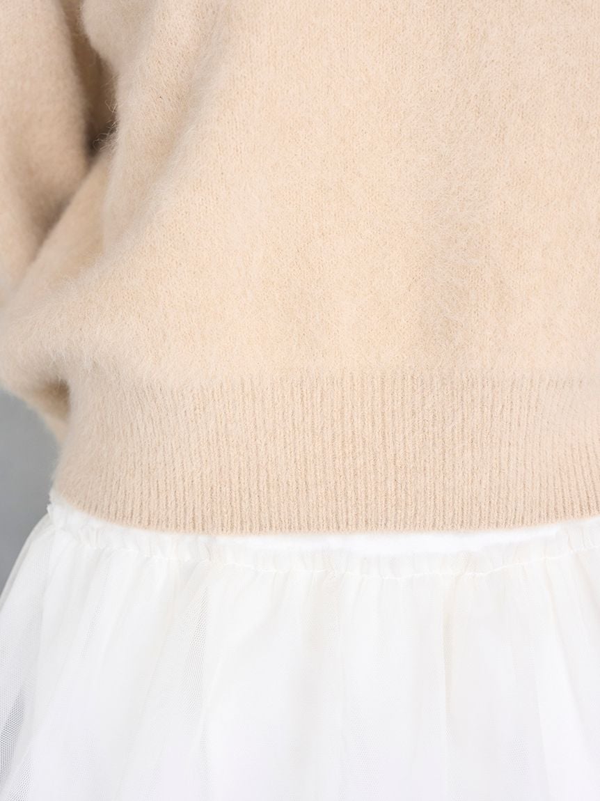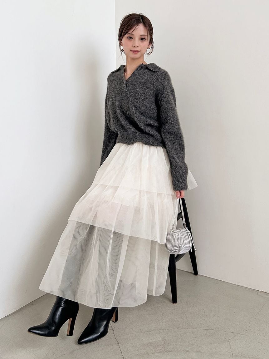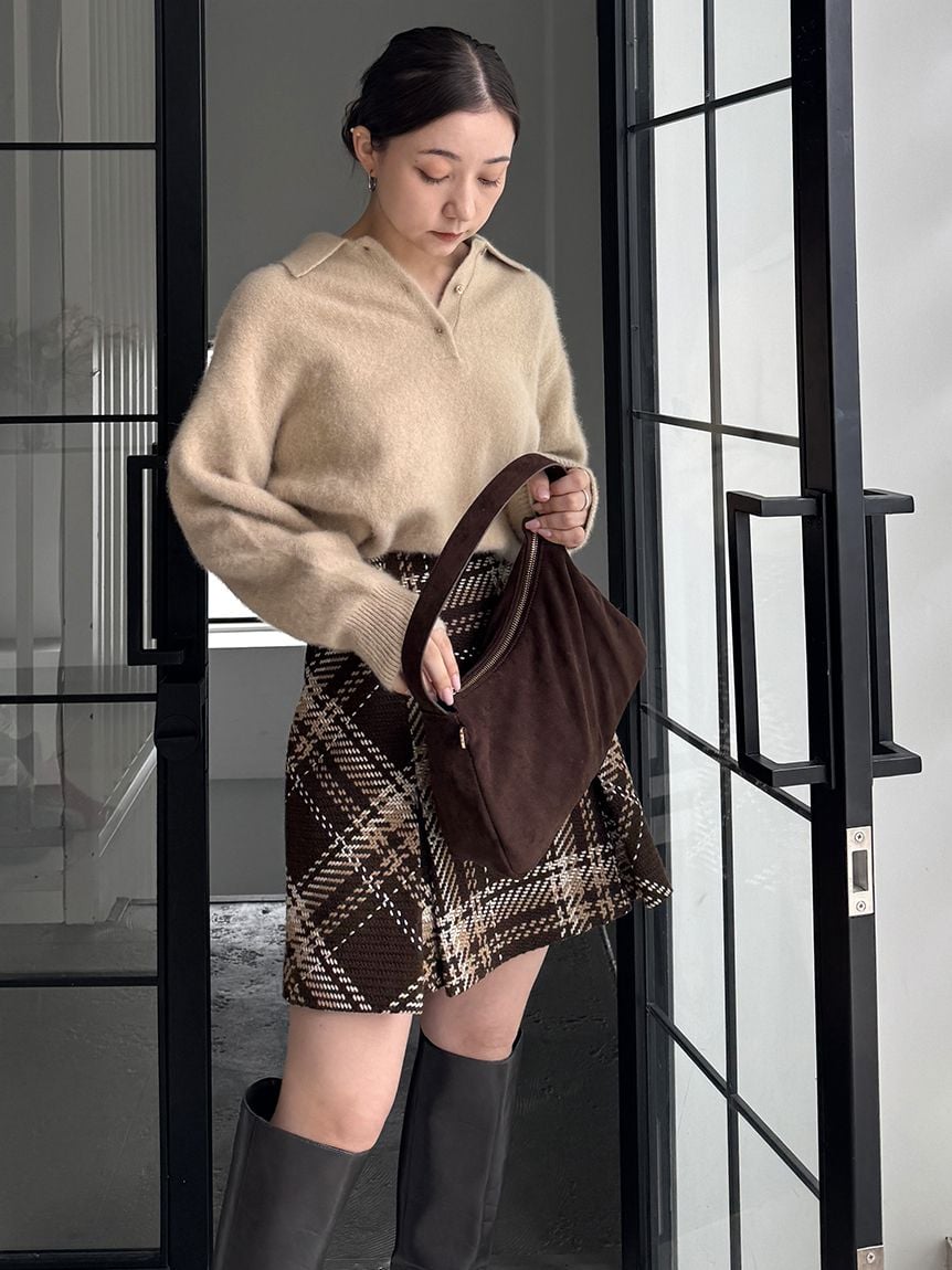 ITEM:【HIGH QUALITY】狐狸毛混羊絨針織POLO上衣 SWNT255019