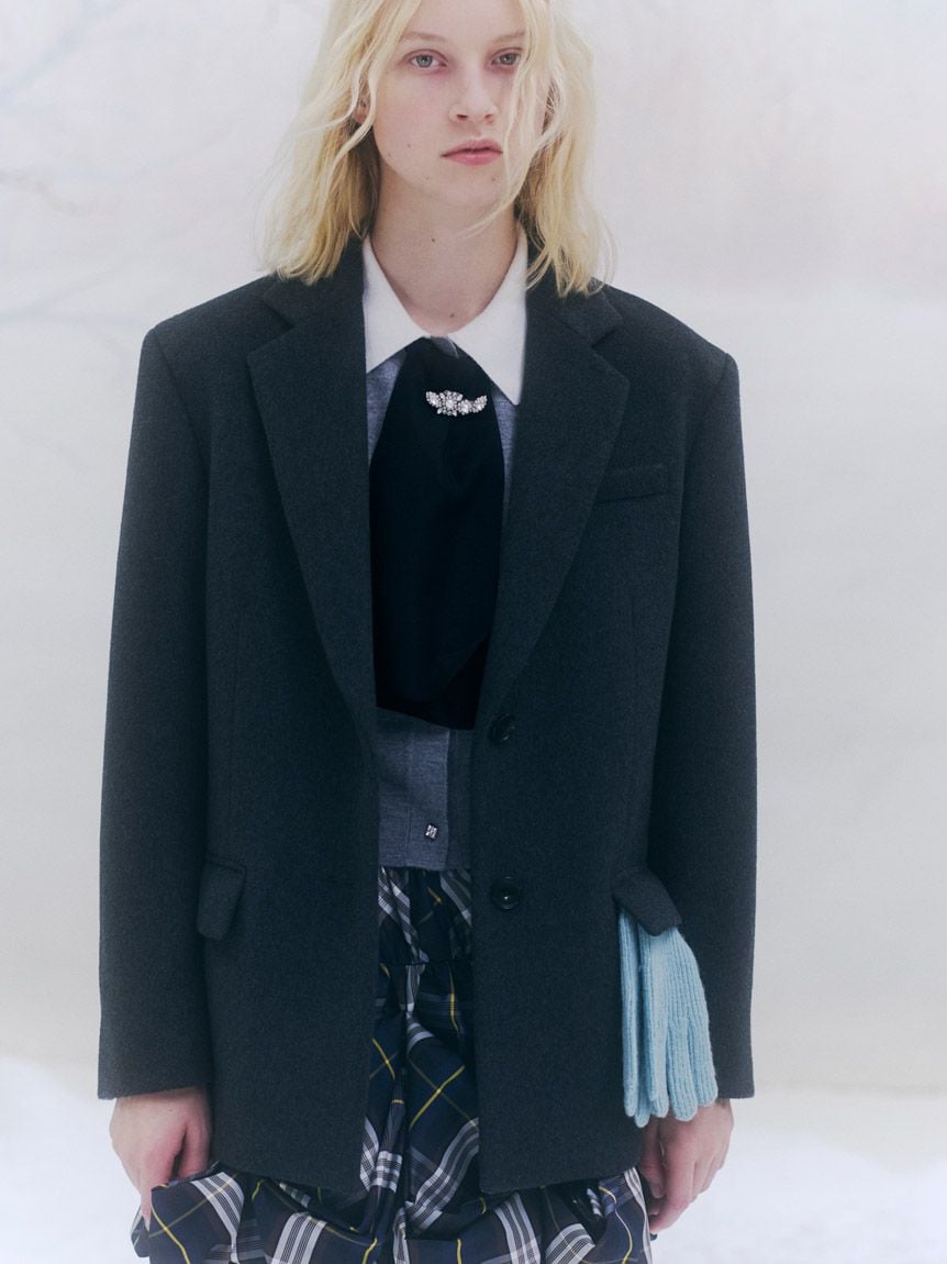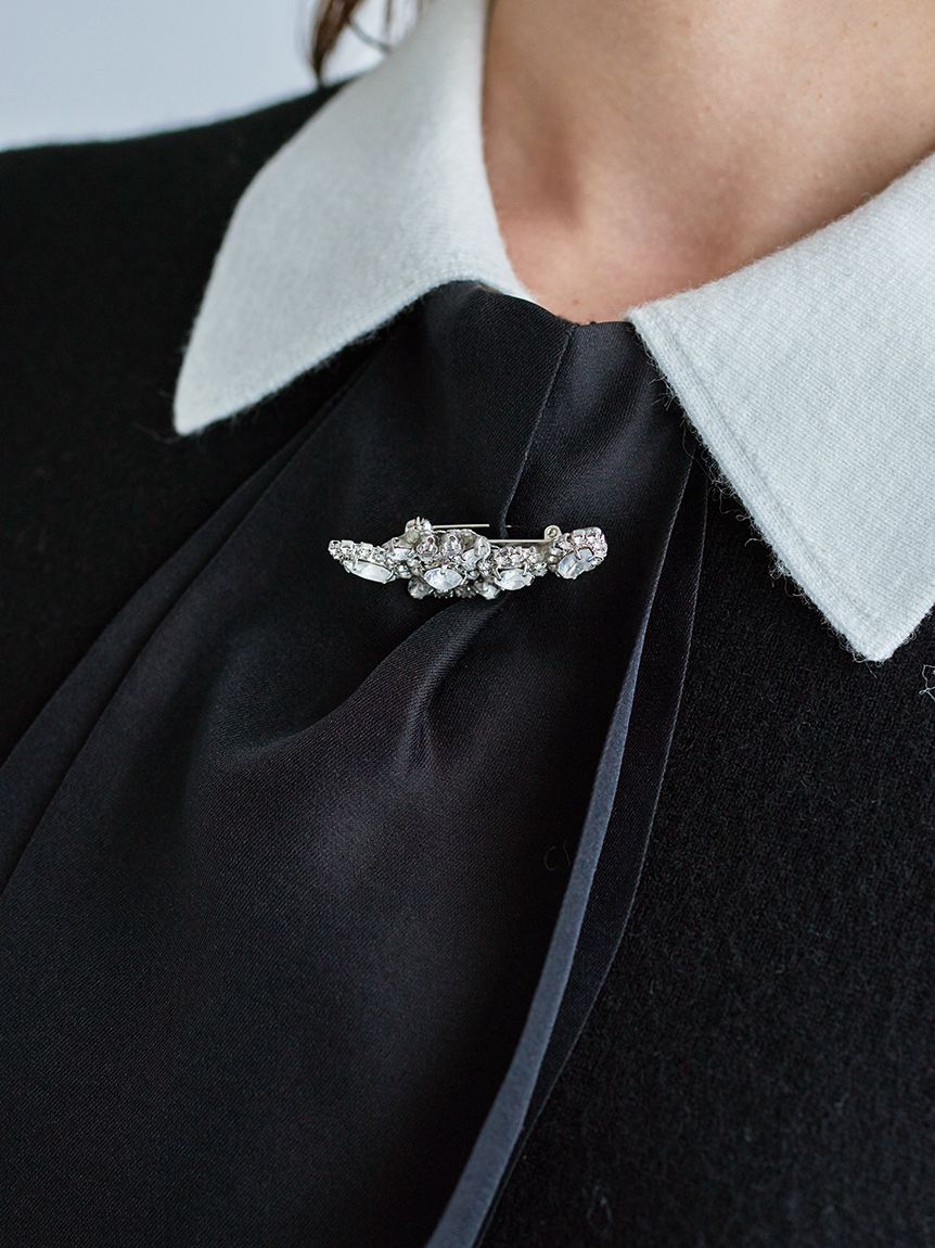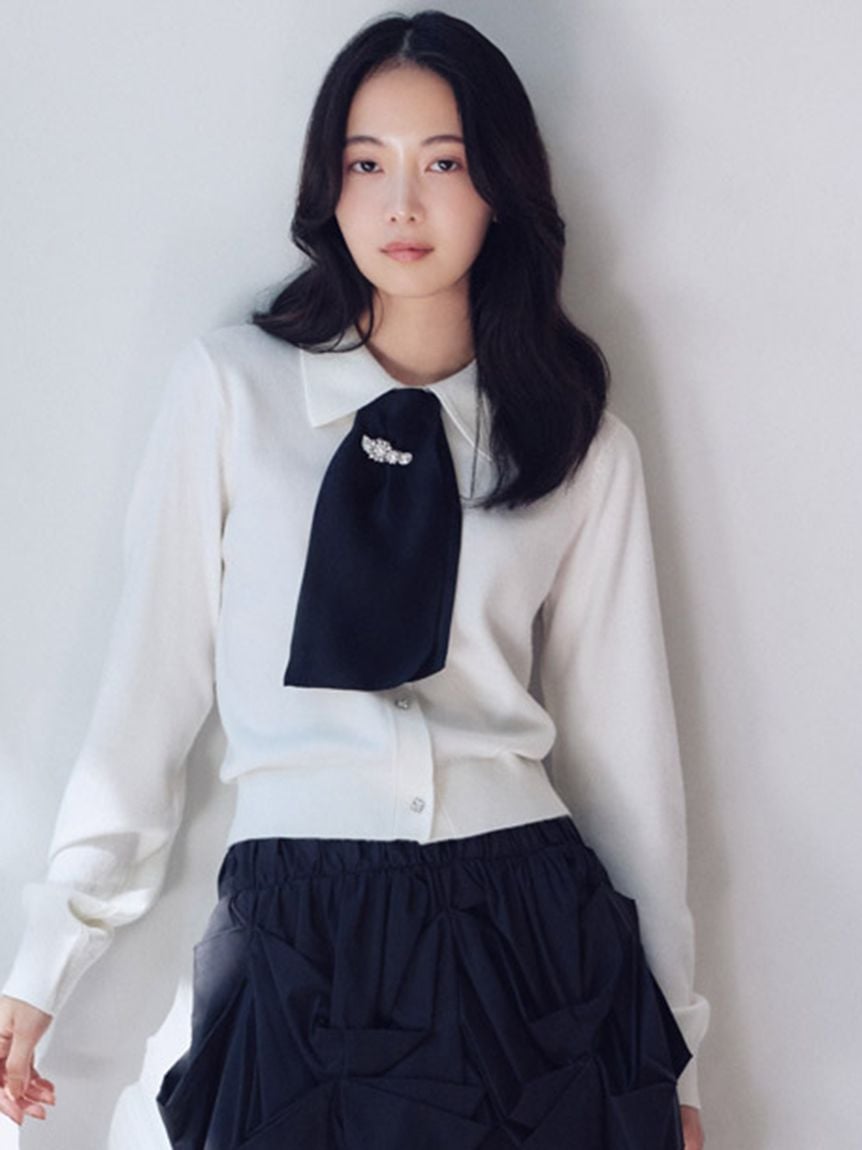 【附水鑽胸針與歐根紗領結的優雅翻領針織開襟外套】 【Design/Styling】 採用帶溫暖感的羊毛混天竺針織布製作, 打造寬版黑色領結款水鑽釦針織開襟外套。 簡約翻領設計的前襟,搭配小巧閃亮的精緻水鑽釦,增添優雅細節。 可拆式領結採用光澤感與透膚感兼具的輕盈布料, 展現典雅氛圍。後側附背扣,可調整長度或輕鬆拆卸。 同時附贈優雅銀色水鑽胸針, 可固定於領結或胸前,享受多種穿搭變化與造型樂趣。 ※由於光線原因,顏色可能與實際顏色有所不同。 或是裝置顯示器、環境光線等因素,商品與照片的顏色可能會略有不同。商品顏色請依商品單獨拍攝照片為主。 ☆禮盒提袋皆屬單獨販賣項目,故不提供包裝服務。若造成不便,敬請見諒。【點選此處加購禮物盒】☆由於7-11在貨物配送上有材積的限制,若訂購的內容有【符合】下列任一條件:1. 訂購 3 件單品以上2. 訂單包含大衣、毛衣、連身裙等單品建議您使用 宅配 寄送,以避免購買商品無法如預期出貨。 ☆提醒您,官網商品於七日鑑賞期內申請退貨前,請確認商品保持全新完整狀態。凡下水、剪吊牌、試穿痕跡(毛球、汙漬、妝粉、氣味殘留等)、人為加工,或配件、包裝(含包裝袋、衣架、鞋盒、贈品等)不完整者,恕不接受退貨。詳情請參考退換貨政策。