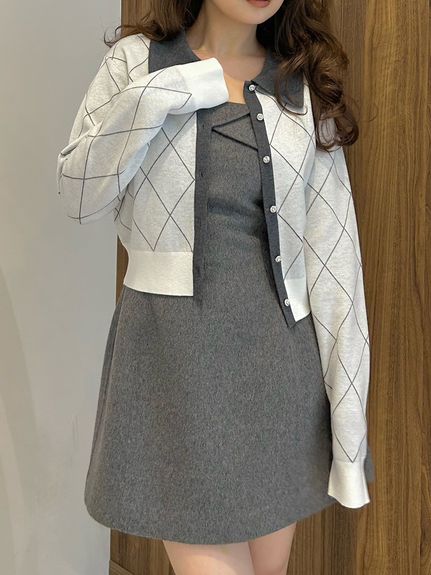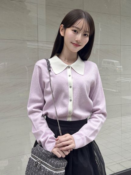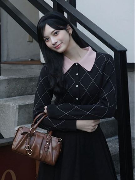【單穿即顯華麗,菱格紋開襟衫】 【Design/Styling】 優雅的菱格紋搭配雙色領口,打造華麗開襟衫。閃耀鈕扣成為亮點,瞬間提亮臉部輪廓。略短版型設計,無論搭配何種下身皆相得益彰。單穿即可成就主角級造型。 ※由於光線原因,顏色可能與實際顏色有所不同。 或是裝置顯示器、環境光線等因素,商品與照片的顏色可能會略有不同。商品顏色請依商品單獨拍攝照片為主。 ☆禮盒提袋皆屬單獨販賣項目,故不提供包裝服務。若造成不便,敬請見諒。【點選此處加購禮物盒】☆由於7-11在貨物配送上有材積的限制,若訂購的內容有【符合】下列任一條件:1. 訂購 3 件單品以上2. 訂單包含大衣、毛衣、連身裙等單品建議您使用 宅配 寄送,以避免購買商品無法如預期出貨。 ☆提醒您,官網商品於七日鑑賞期內申請退貨前,請確認商品保持全新完整狀態。凡下水、剪吊牌、試穿痕跡(毛球、汙漬、妝粉、氣味殘留等)、人為加工,或配件、包裝(含包裝袋、衣架、鞋盒、贈品等)不完整者,恕不接受退貨。詳情請參考退換貨政策。