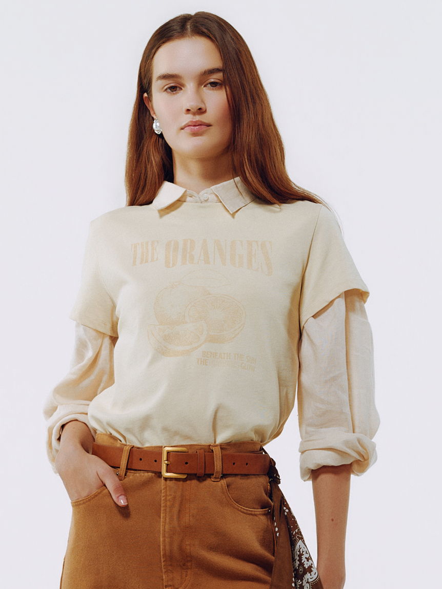 將水果與蛋糕等吸睛圖案印製於高質感布料上,不論單穿或層次搭配都很亮眼。