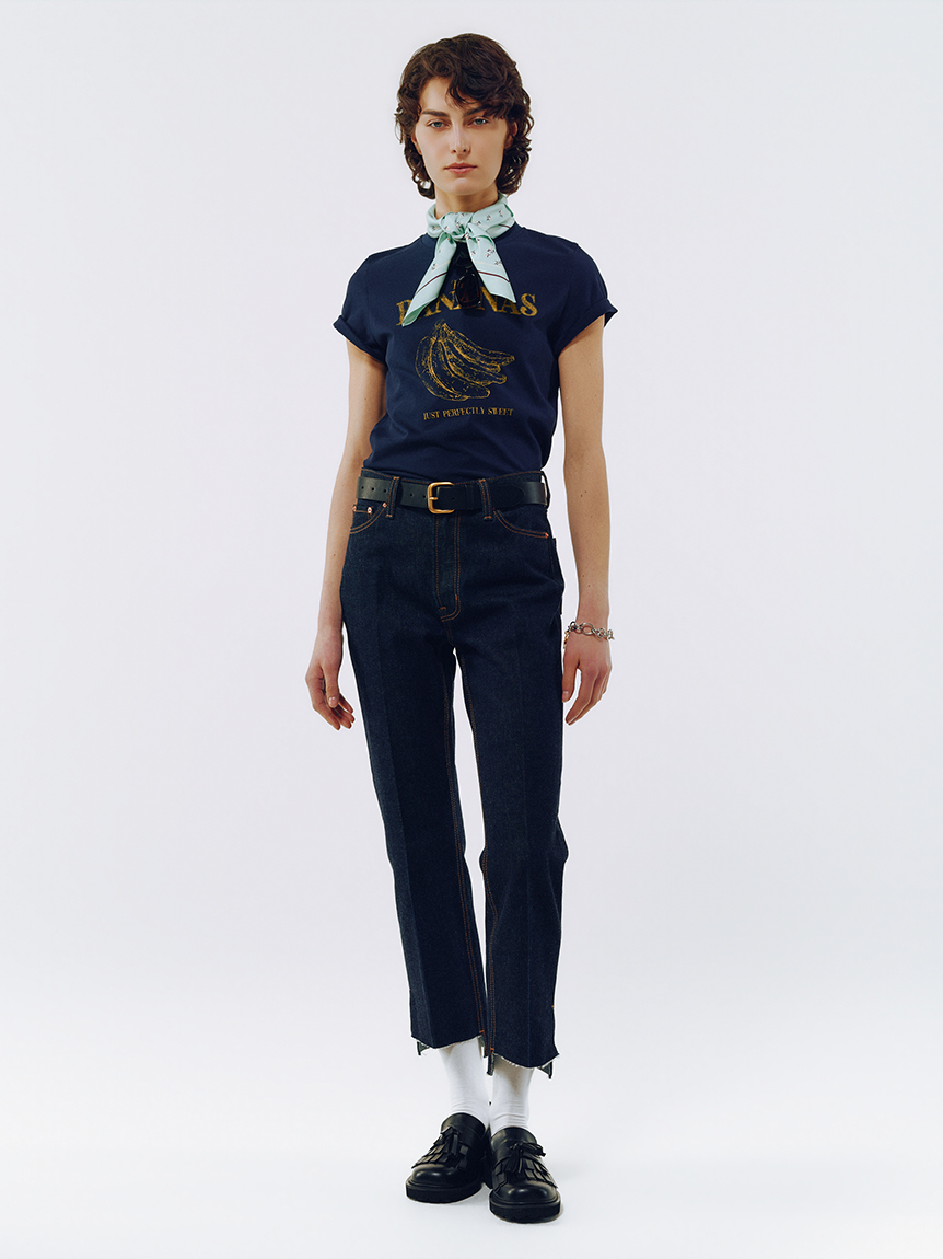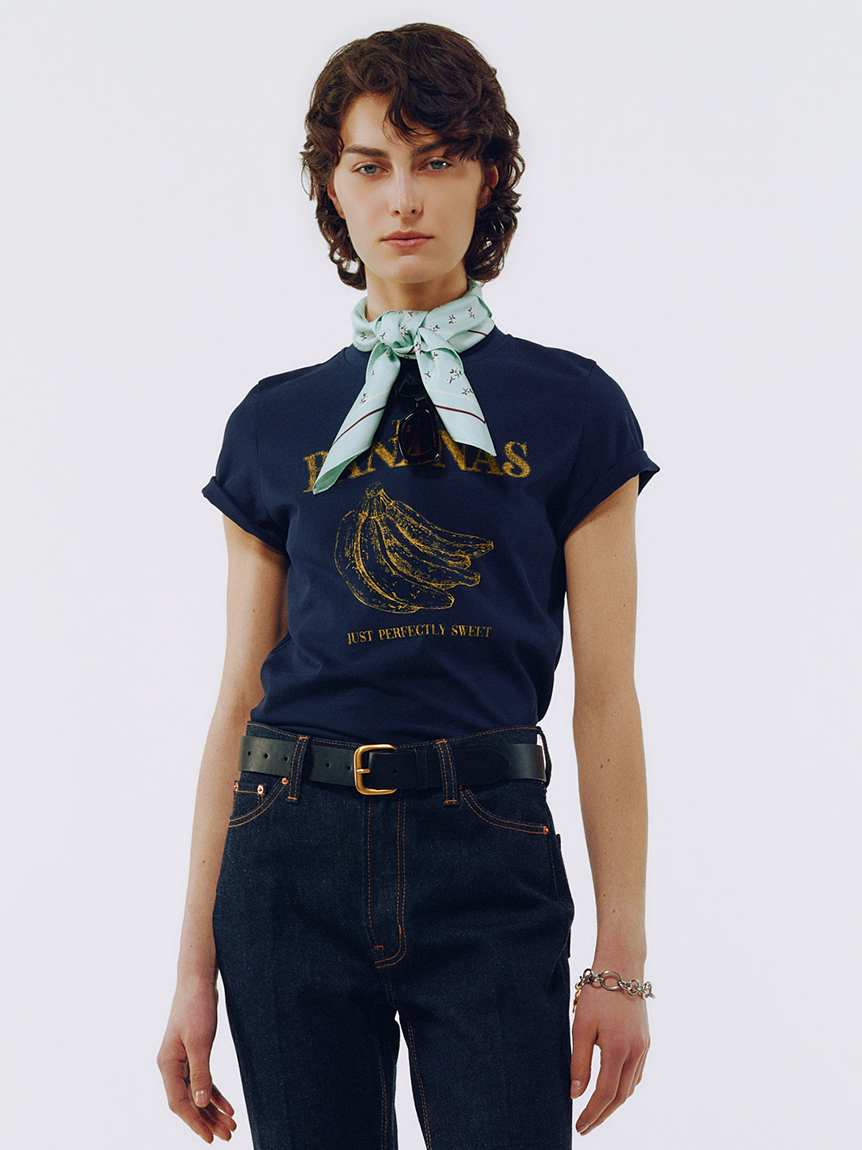 以復古風印花打造的合身版T恤。