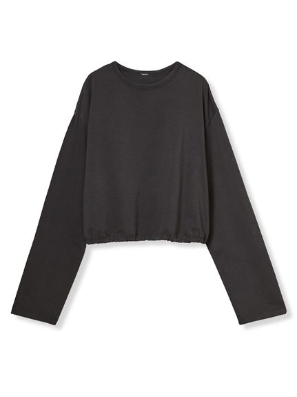 採用帳篷輪廓設計、下擺寬鬆的短版長袖T恤。