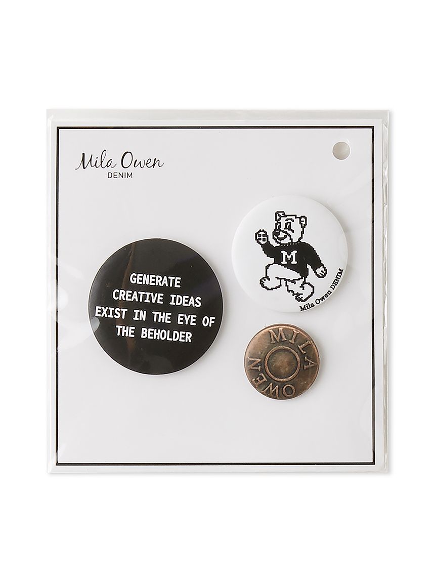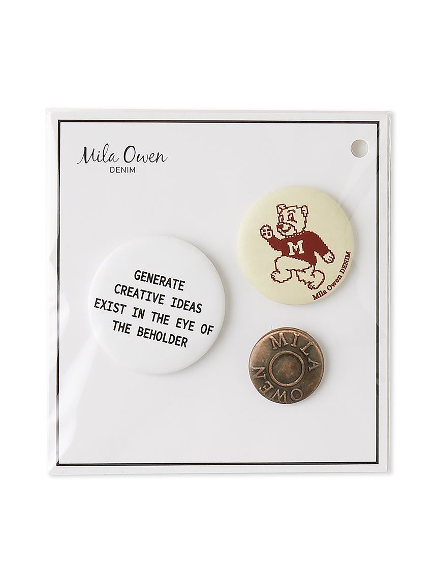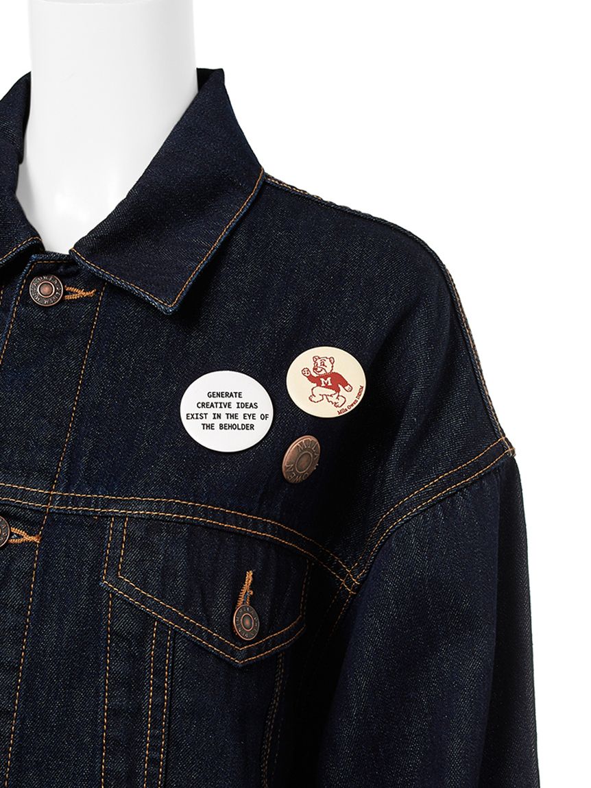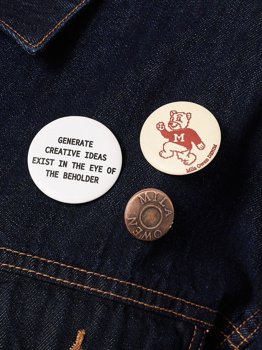 徽章包含:經典熊圖案、創意意象圖案(象徵創造性想法因觀看者而生)以及Neovabutton設計。徽章顏色會依外套顏色不同。