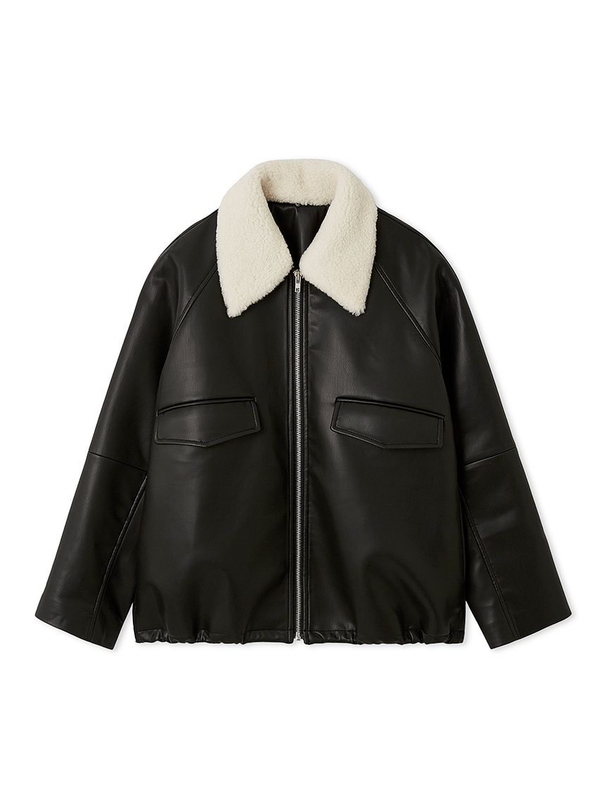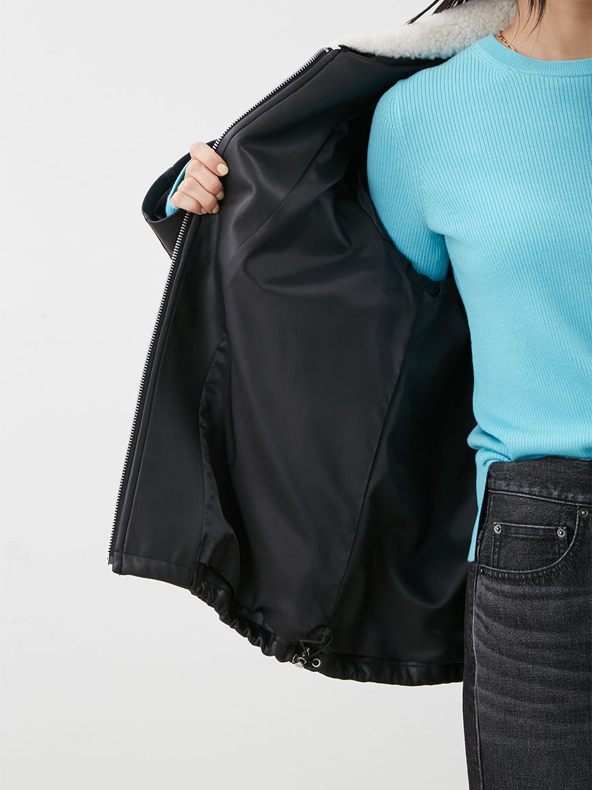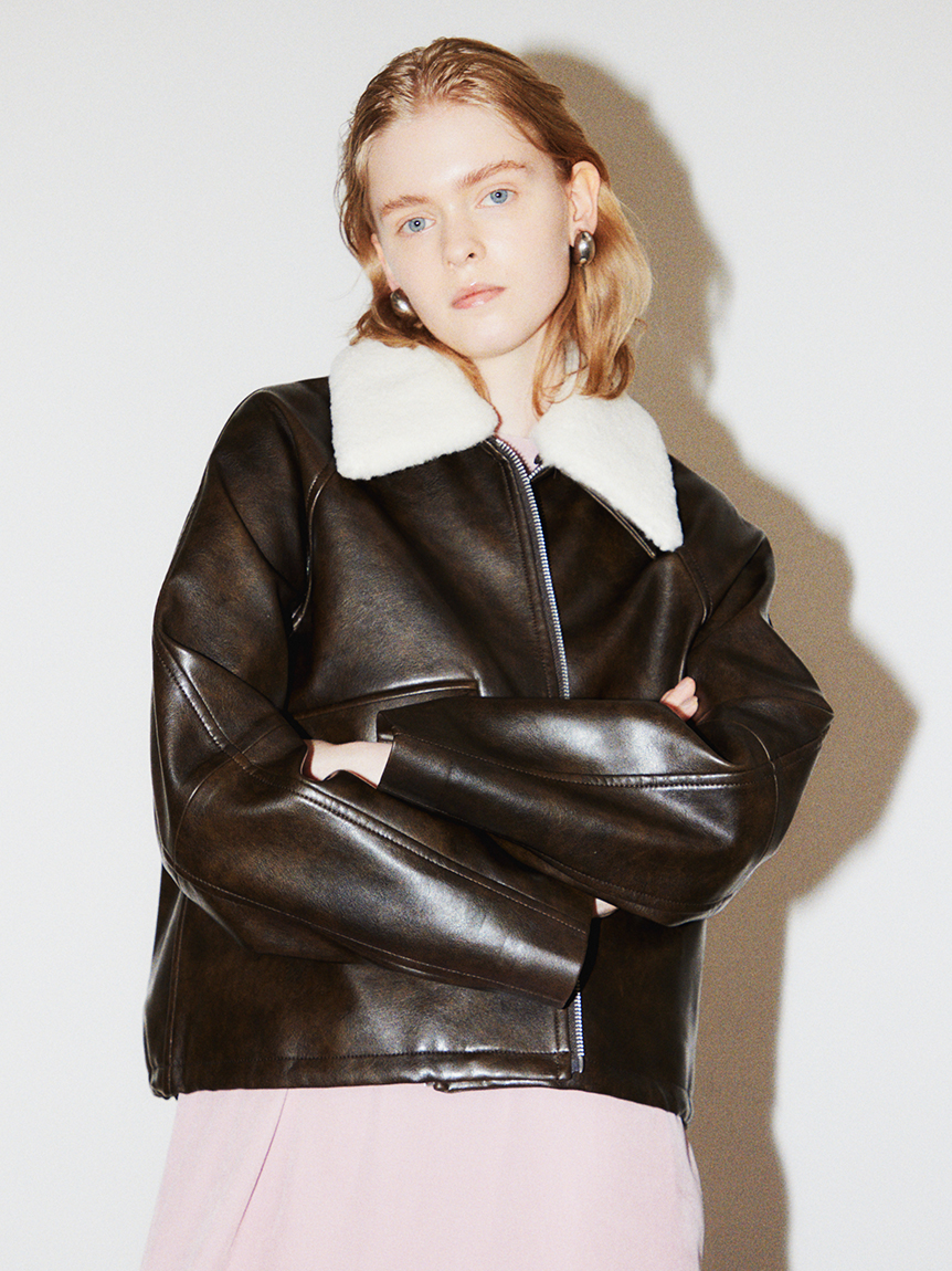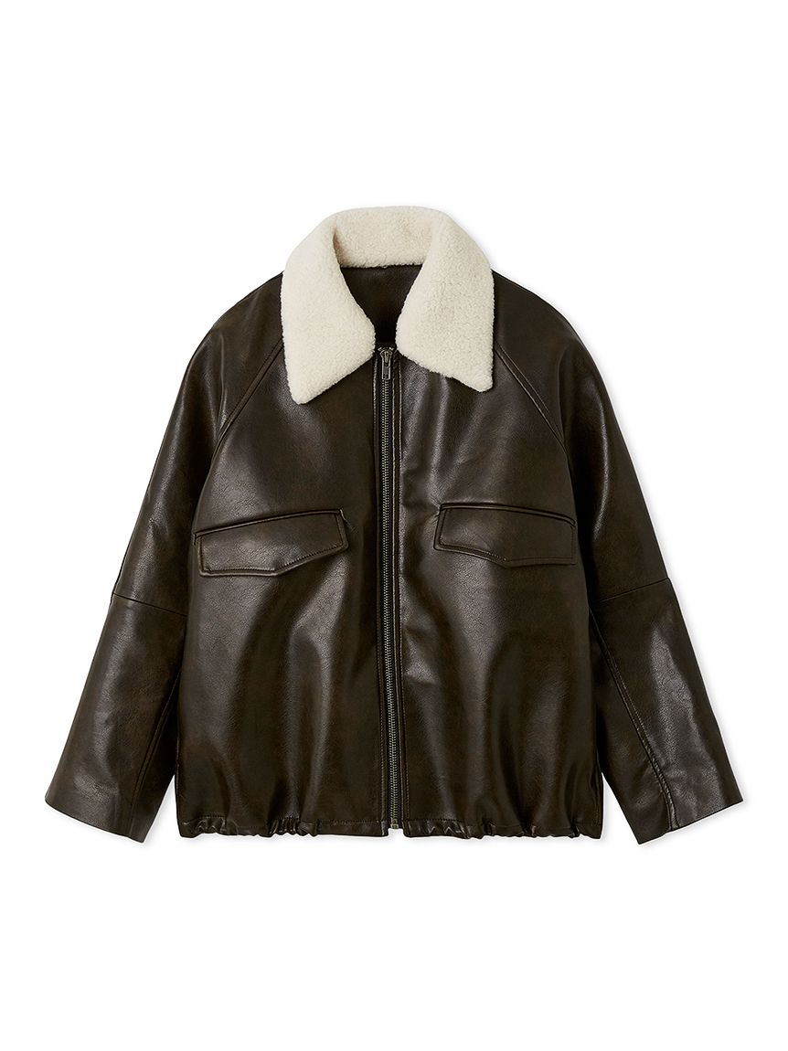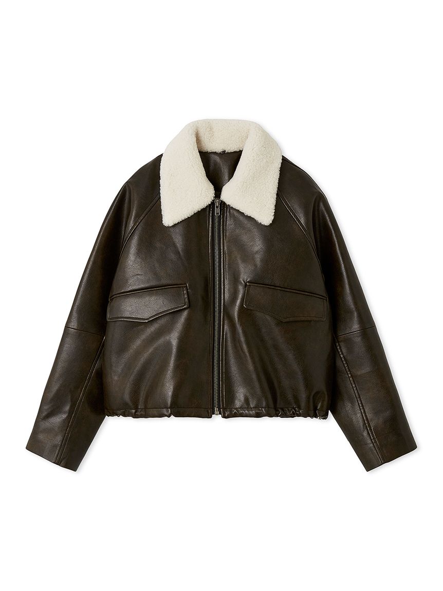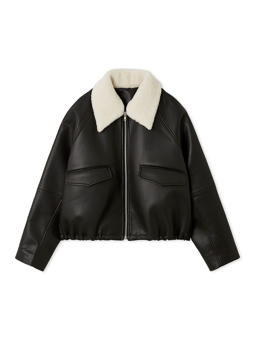 【本季注目趨勢,人造皮革可拆卸毛絨領設計,為飛行夾克增添俏麗風采】
