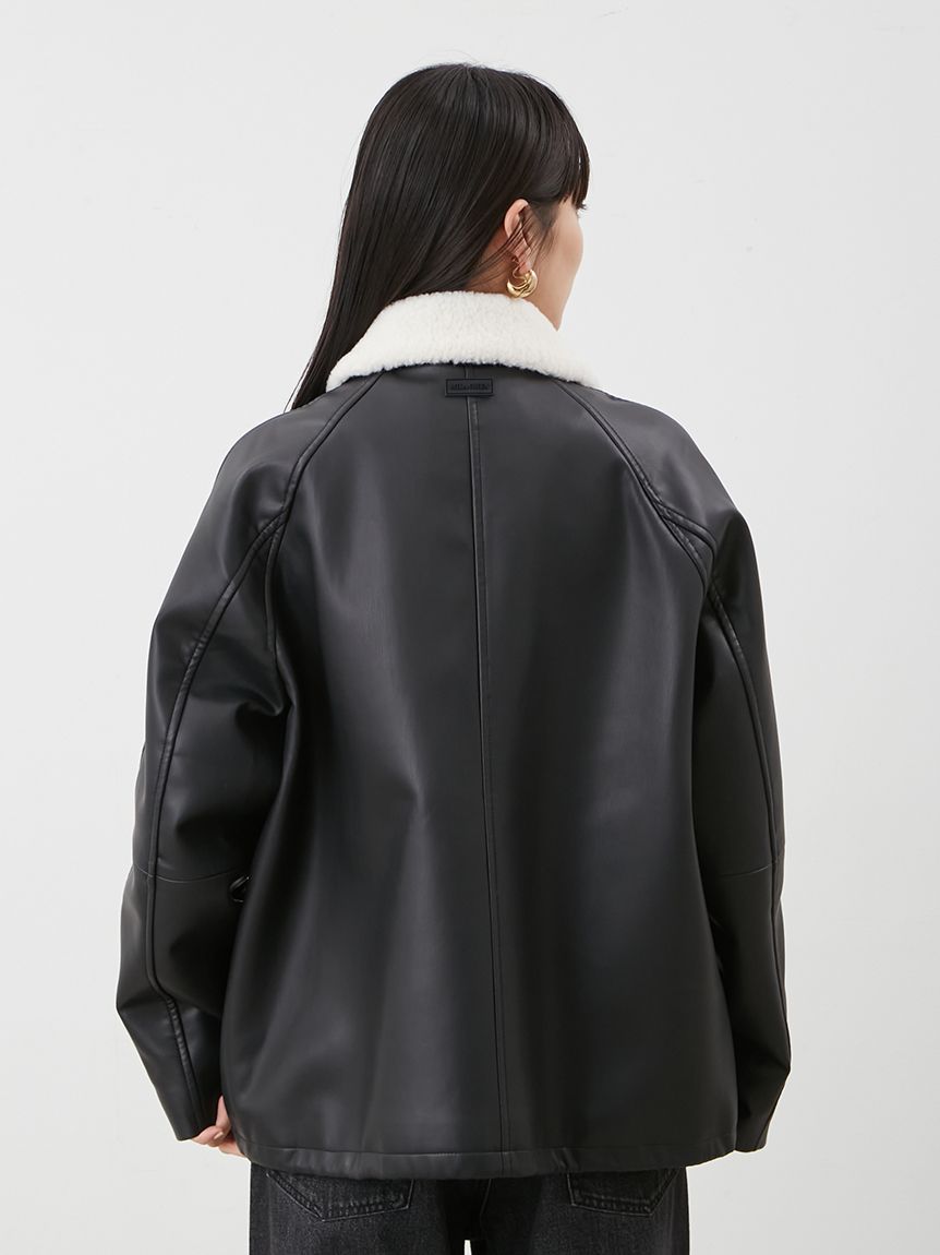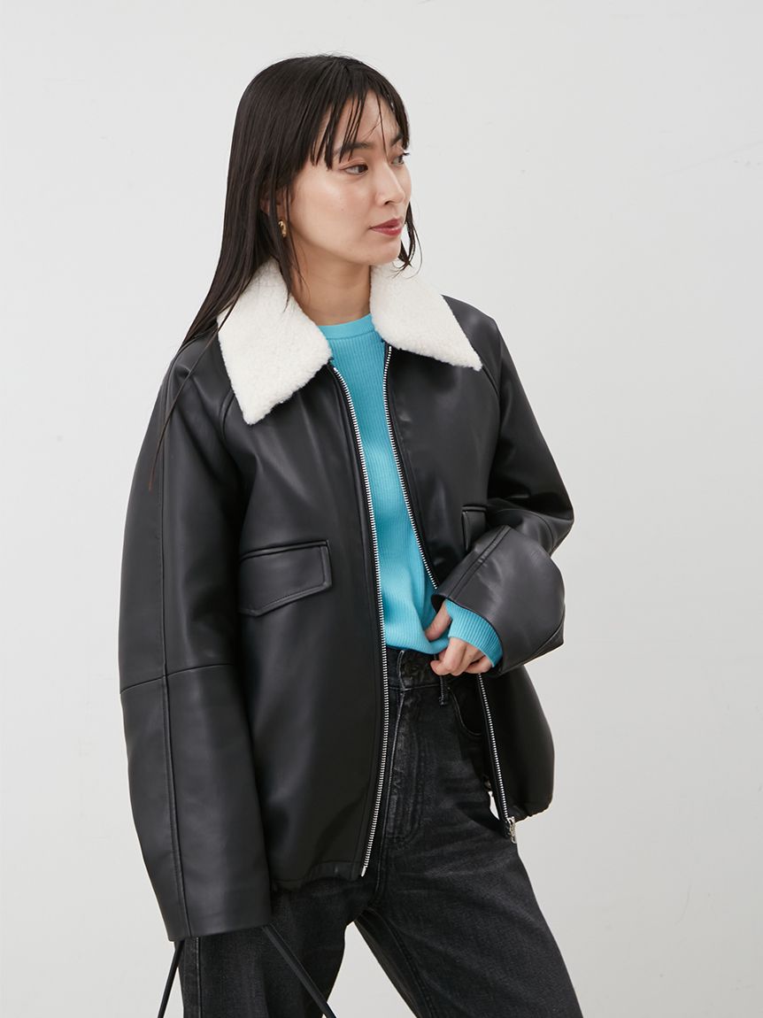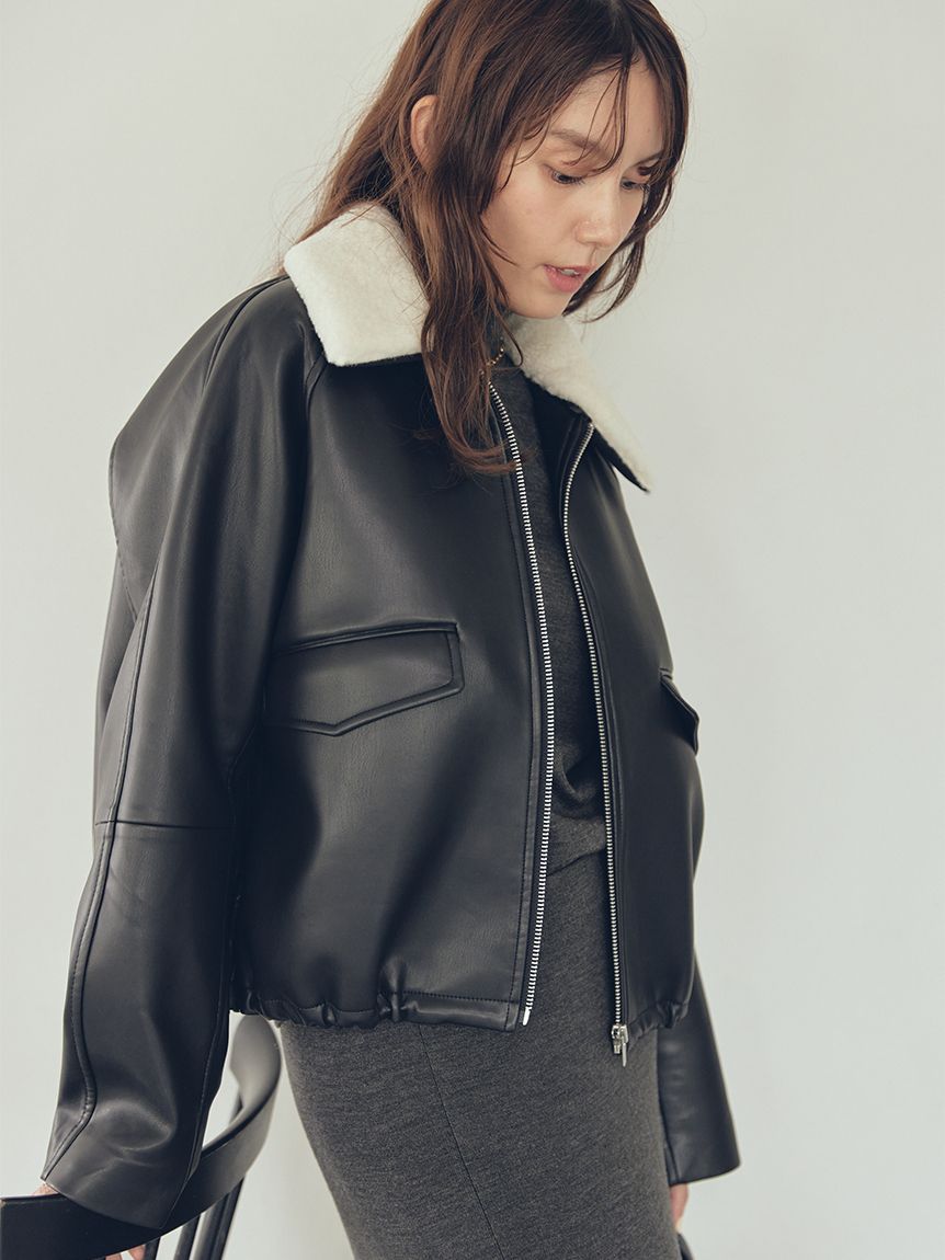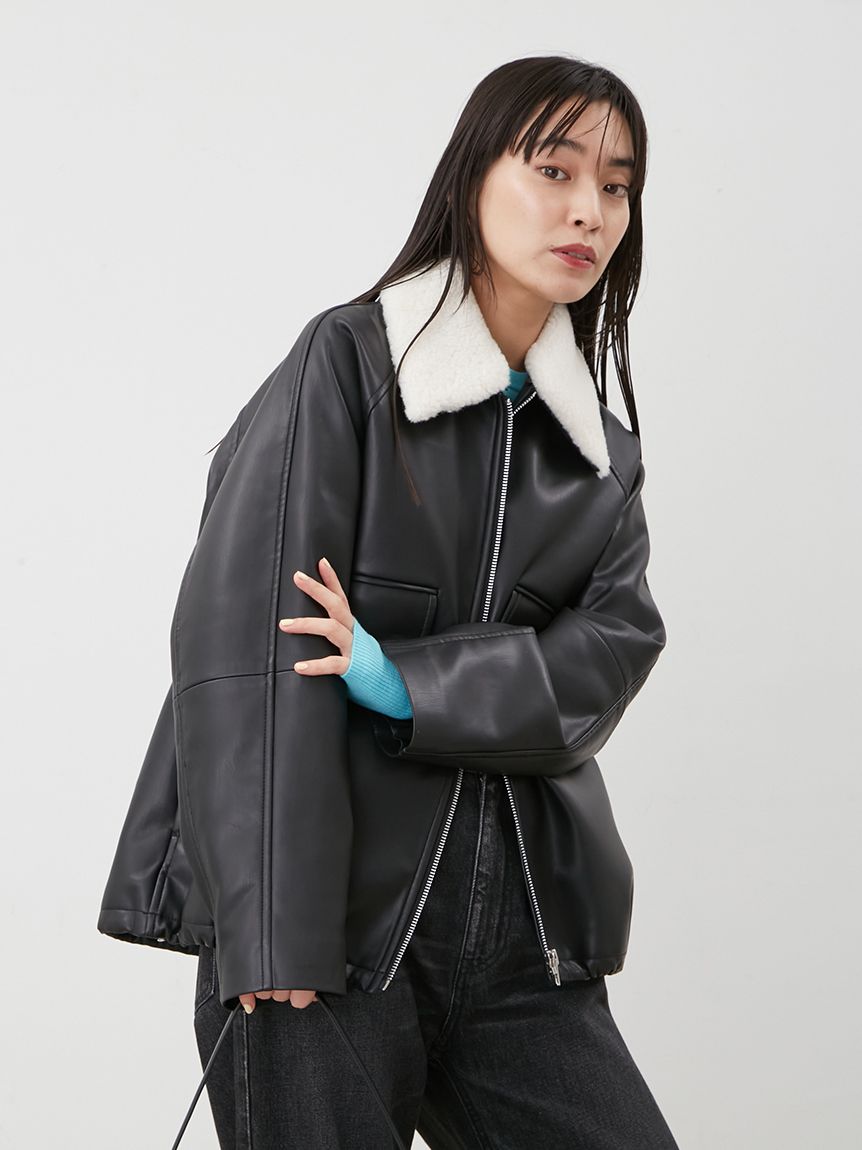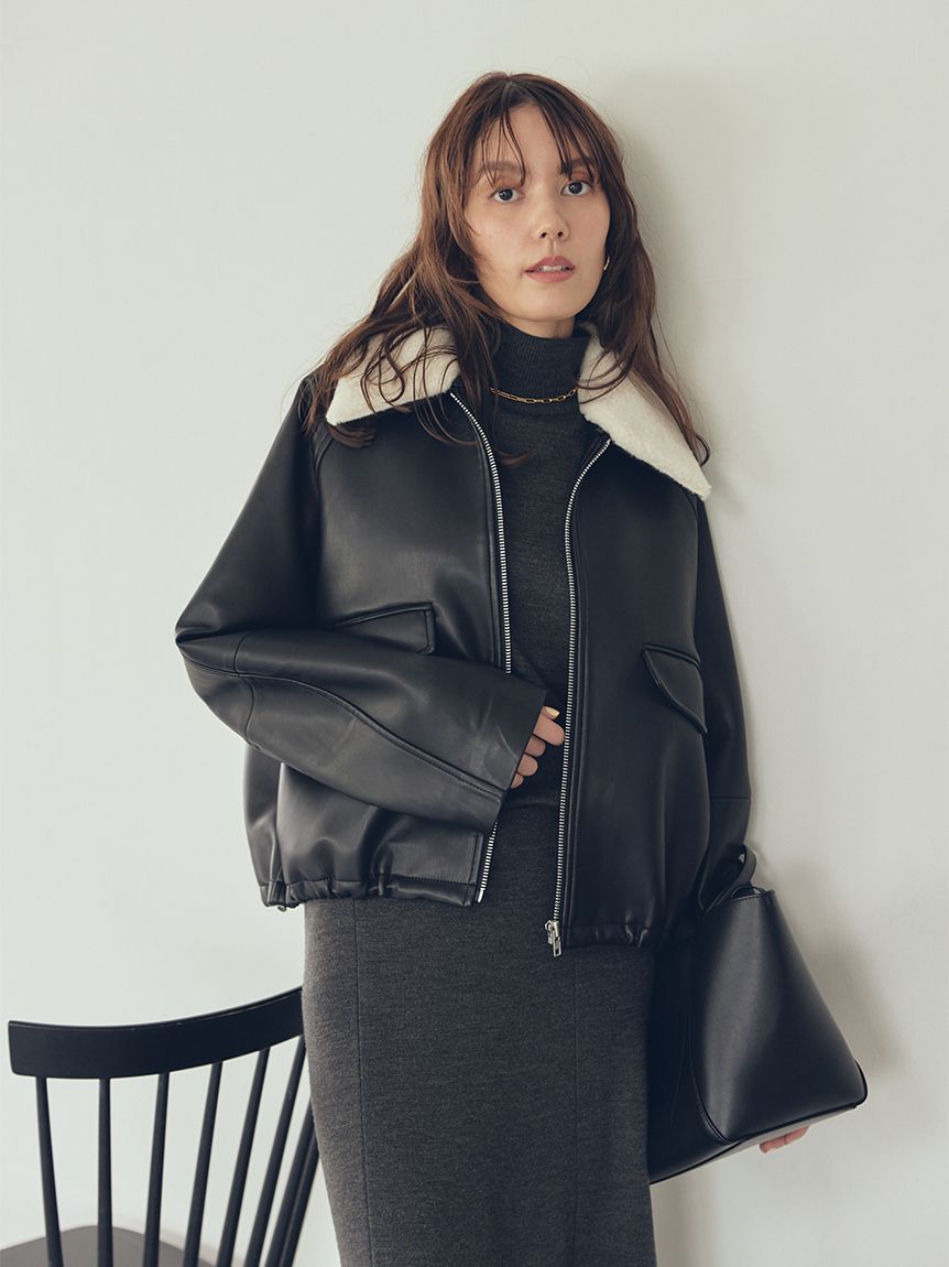 【本季注目趨勢,人造皮革可拆卸毛絨領設計,為飛行夾克增添俏麗風采】