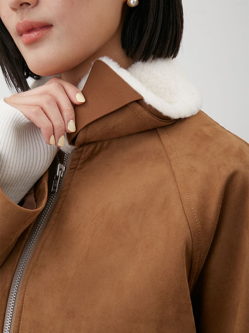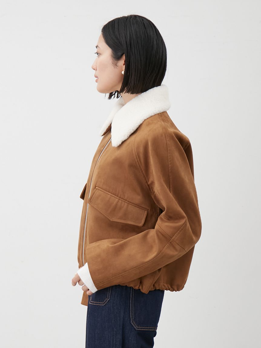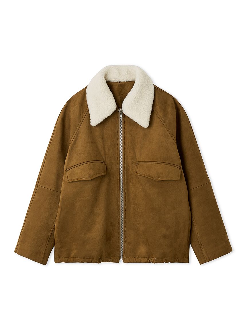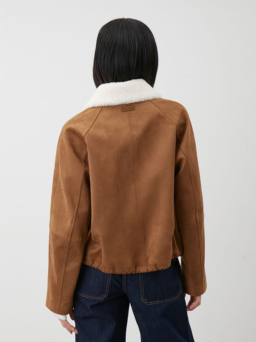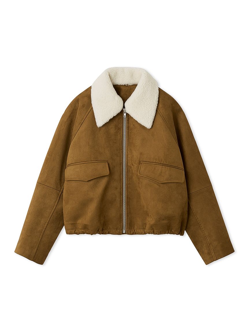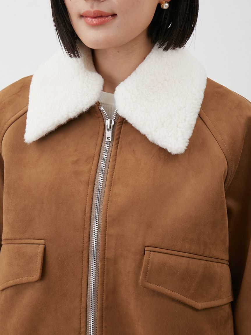 【本季注目趨勢,人造皮革可拆卸毛絨領設計,為飛行夾克增添俏麗風采】